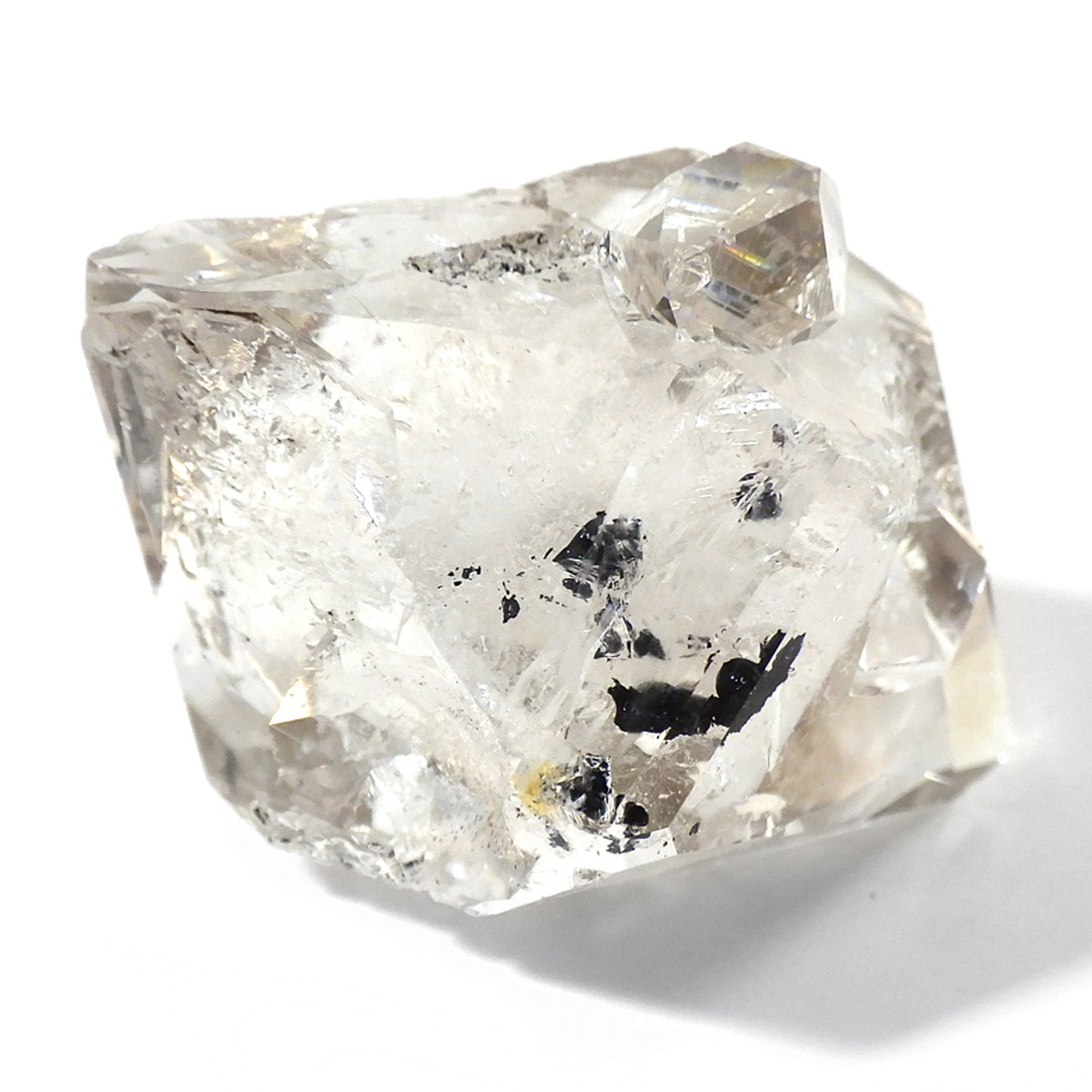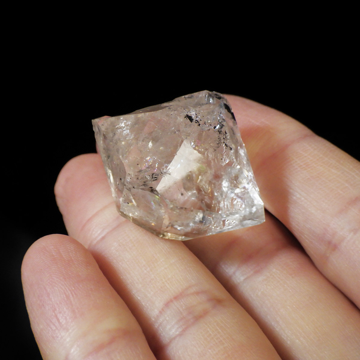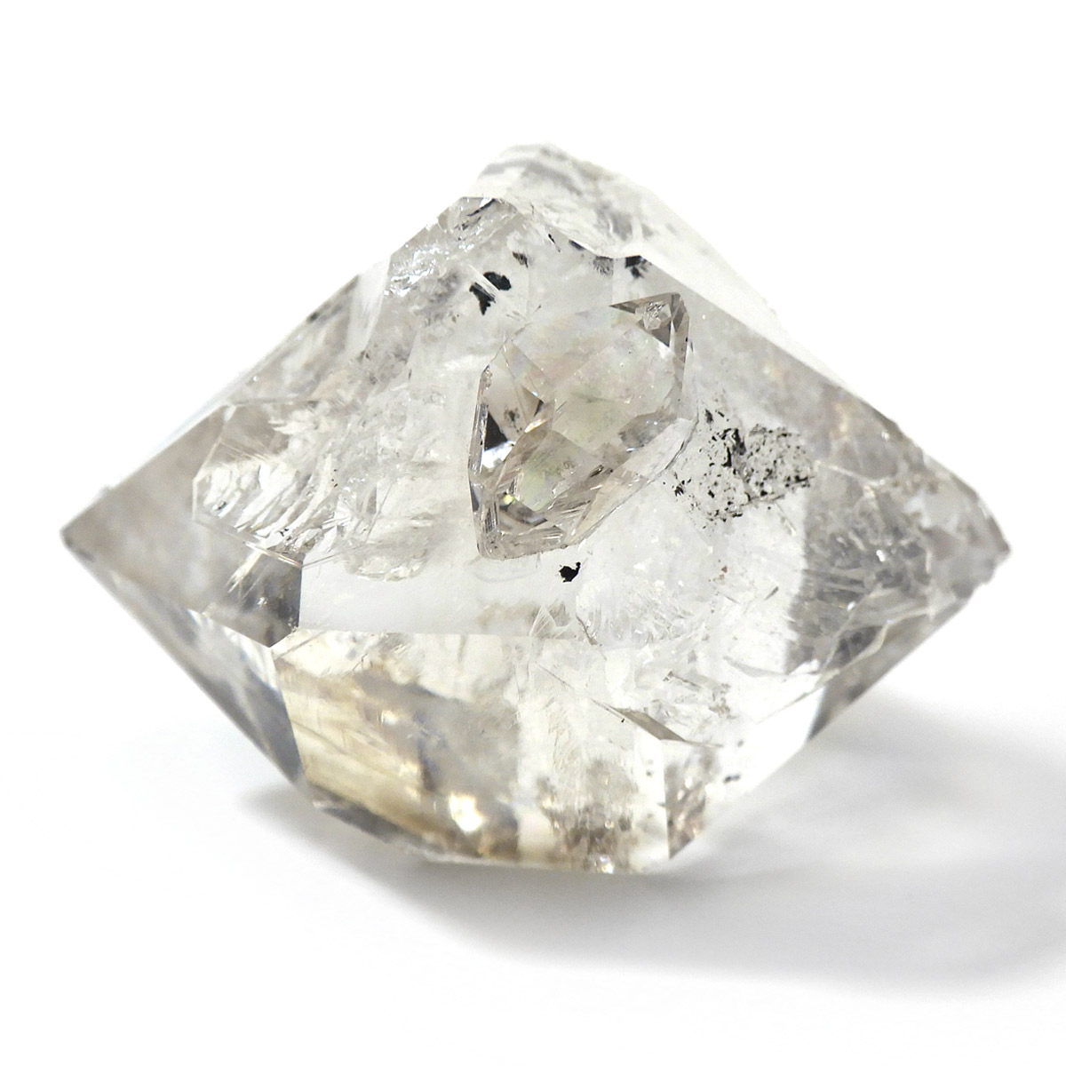 ハーキマーダイヤモンド原石です。抜群の透明度で圧巻の美しさです。キラキラと輝くその姿は、ダイヤモンドのようで、息を呑むほど素晴らしい輝きに満ちています。ハーキマーダイヤモンドはアメリカ、ニューヨーク州、ハーキマー地区でしか採掘されないダイヤのようなクリスタル。母岩の穴の中で成長し、ダイヤモンドのような両側の18面体の結晶になります。そして、ダイヤモンドのように力強い光沢感と輝きを兼ね備えているのが特長です。