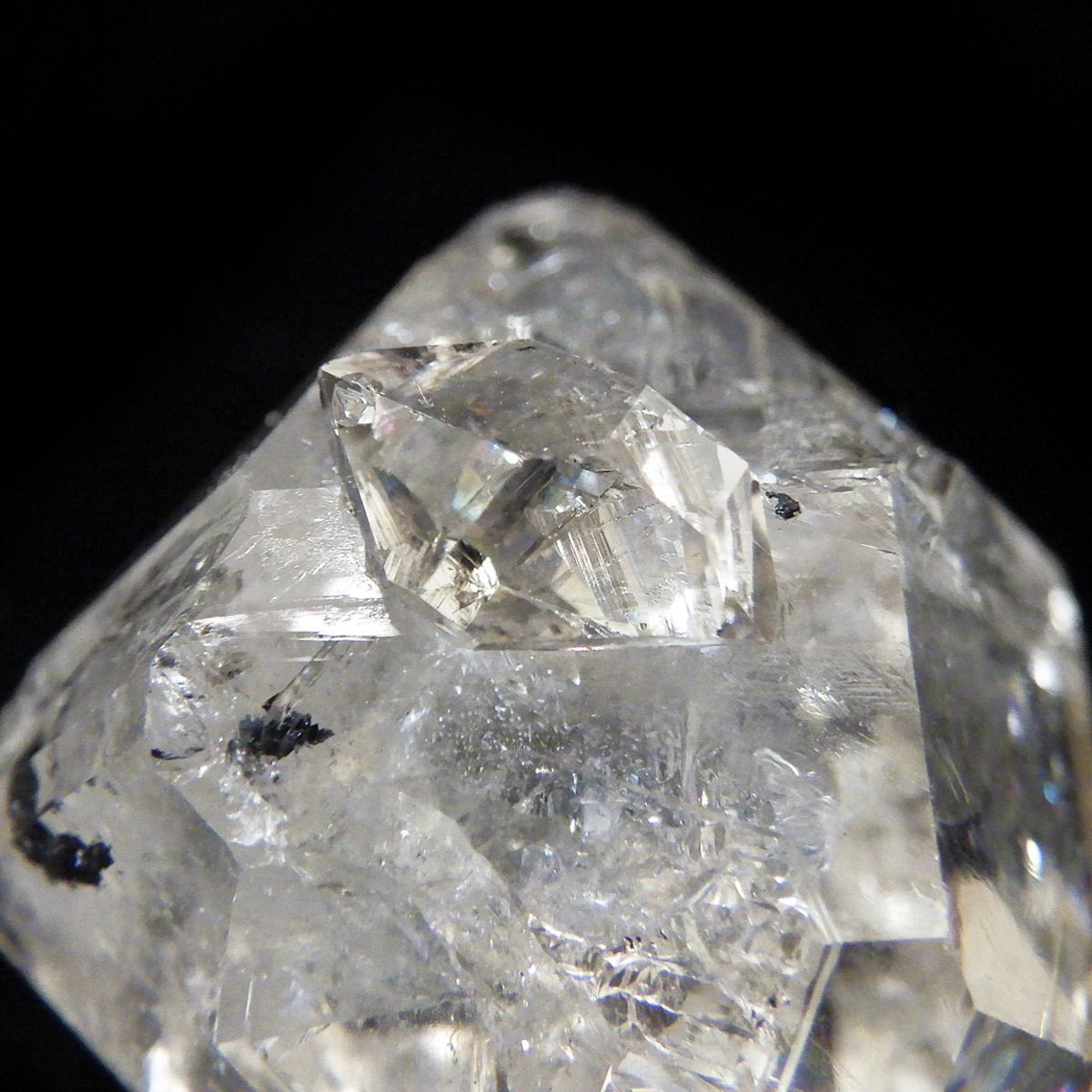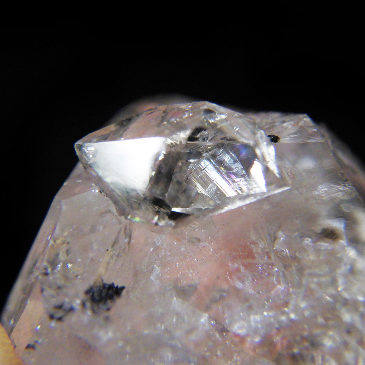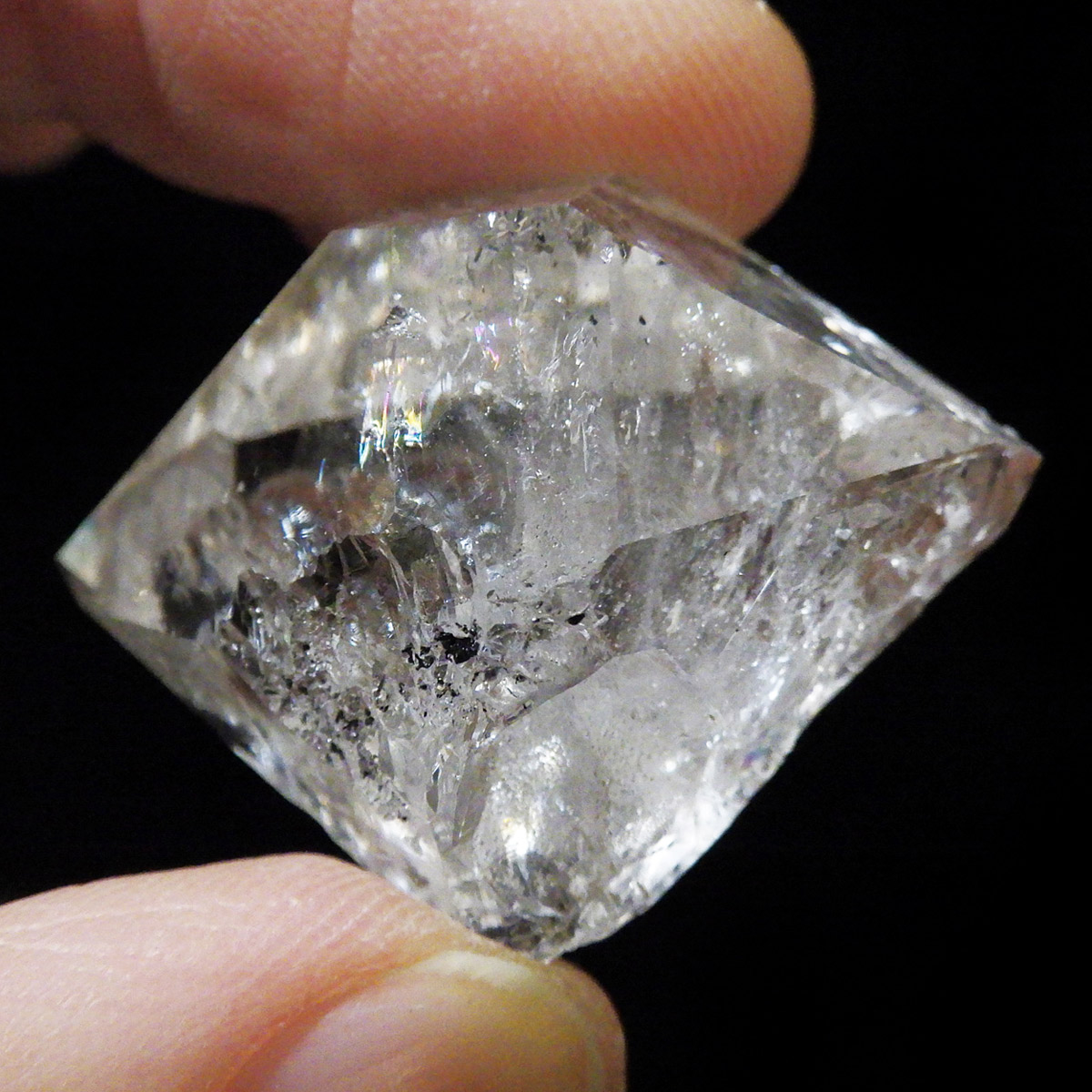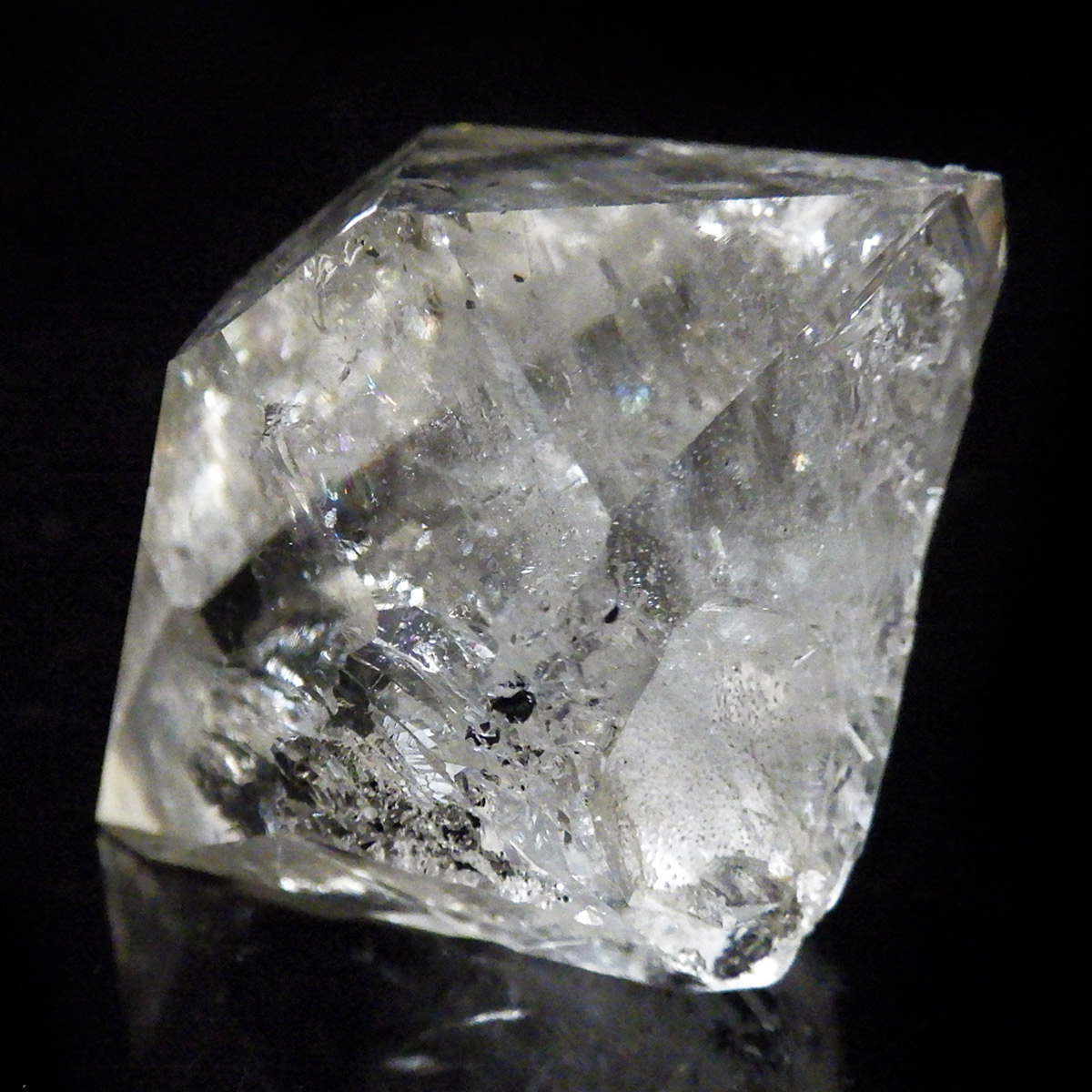ハーキマーダイヤモンド原石です。抜群の透明度で圧巻の美しさです。キラキラと輝くその姿は、ダイヤモンドのようで、息を呑むほど素晴らしい輝きに満ちています。ハーキマーダイヤモンドはアメリカ、ニューヨーク州、ハーキマー地区でしか採掘されないダイヤのようなクリスタル。母岩の穴の中で成長し、ダイヤモンドのような両側の18面体の結晶になります。そして、ダイヤモンドのように力強い光沢感と輝きを兼ね備えているのが特長です。