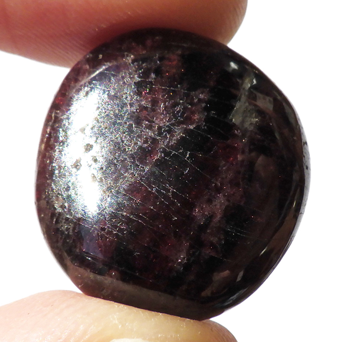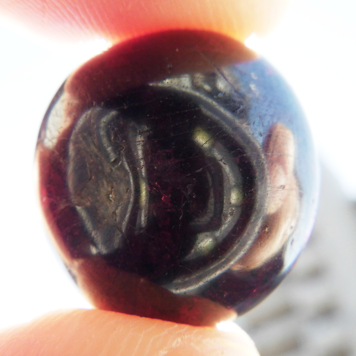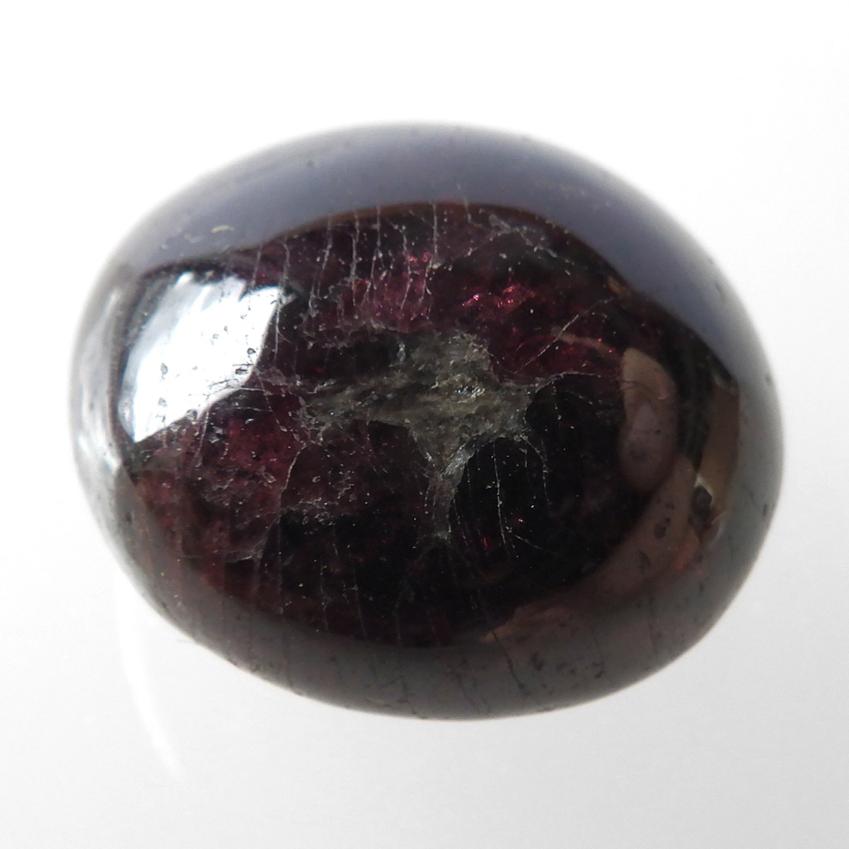 ブラジル産のガーネット、タンブルです。ガーネット族のアルマンディンという種類。一見すると黒っぽい石ですが、光に透かすととても美しい赤色を示します。内に秘めた情熱の赤といった印象でしょうか。ガーネットのアクティブなエネルギーは多くの場面で背中を押してくれる積極性の象徴とされています。