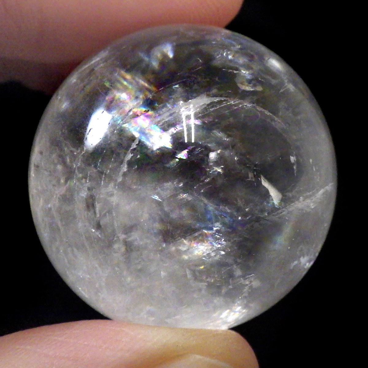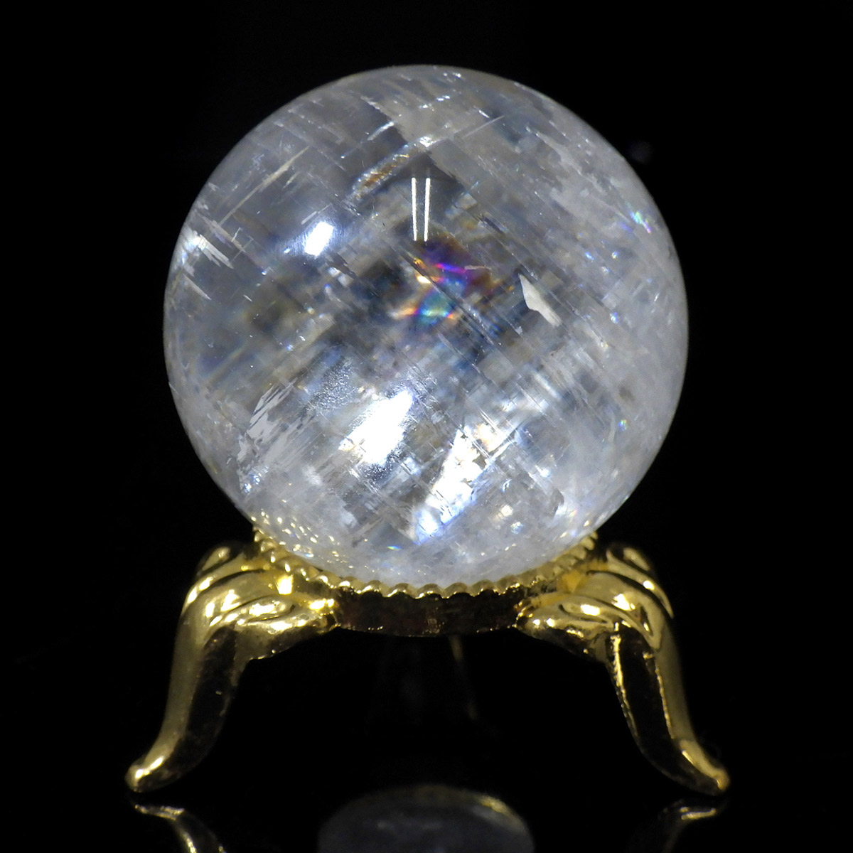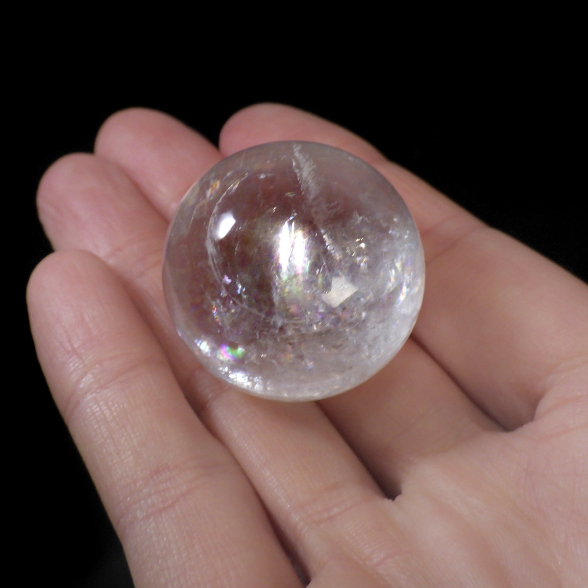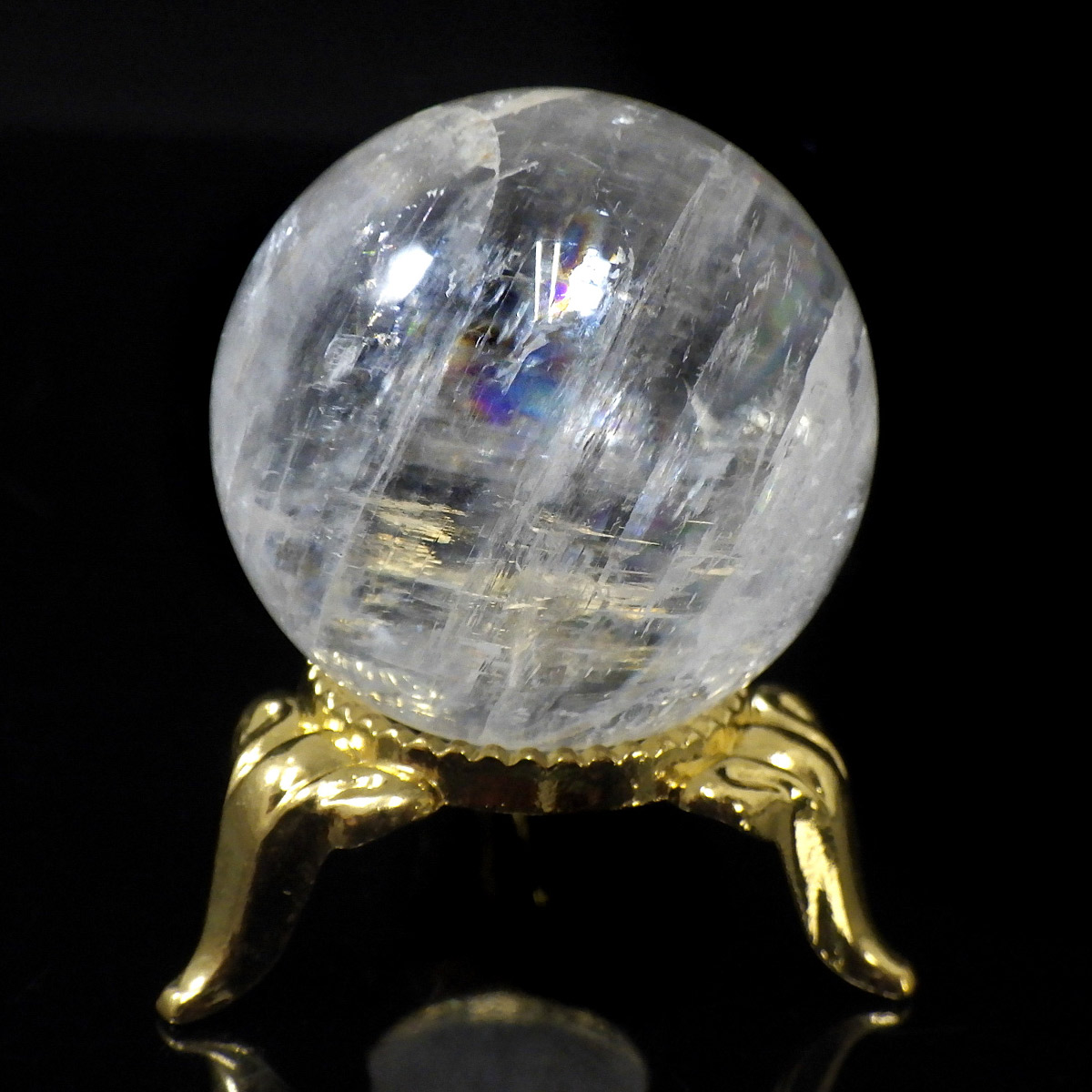 高い透明度を持ち、様々な角度からレインボーを見ることができます。複屈折という光学現象を持ち、文字の上に載せると二つにダブって見える「ダブリング(二重像現象)」のような現象を起こします。一定方向に向かって割れる劈開性によって平行四辺形の形になります。
