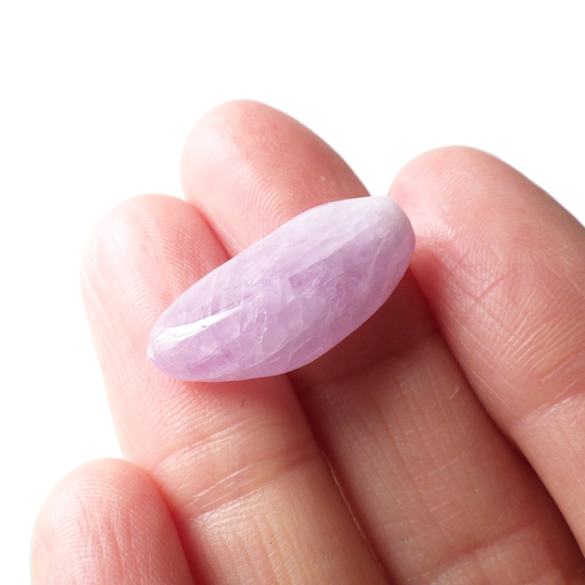 ナイジェリア産のクンツァイト、タンブルです。クンツァイトは、1902年にカリフォルニア州で発見された比較的新しいパワーストーンですが、「スポデューメン」という鉱物の一種で、その中でピンク色のものをクンツァイトといいます。カリフォルニア州で発見されたことから、別名「カリフォルニアアイリス」とも呼ばれます。