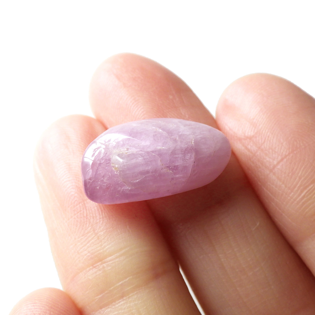 ナイジェリア産のクンツァイト、タンブルです。クンツァイトは、1902年にカリフォルニア州で発見された比較的新しいパワーストーンですが、「スポデューメン」という鉱物の一種で、その中でピンク色のものをクンツァイトといいます。カリフォルニア州で発見されたことから、別名「カリフォルニアアイリス」とも呼ばれます。