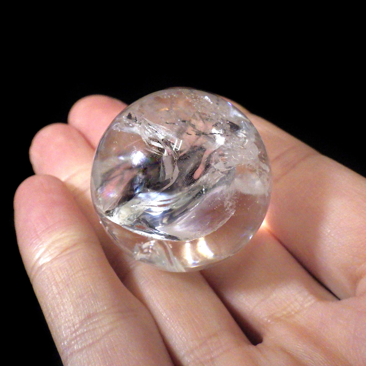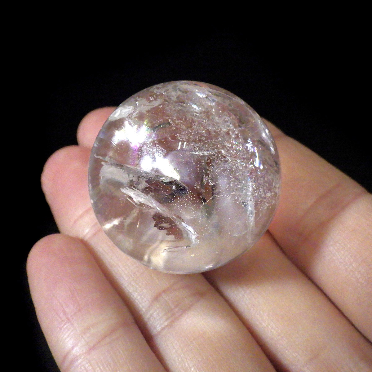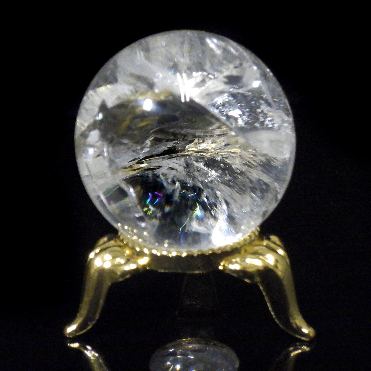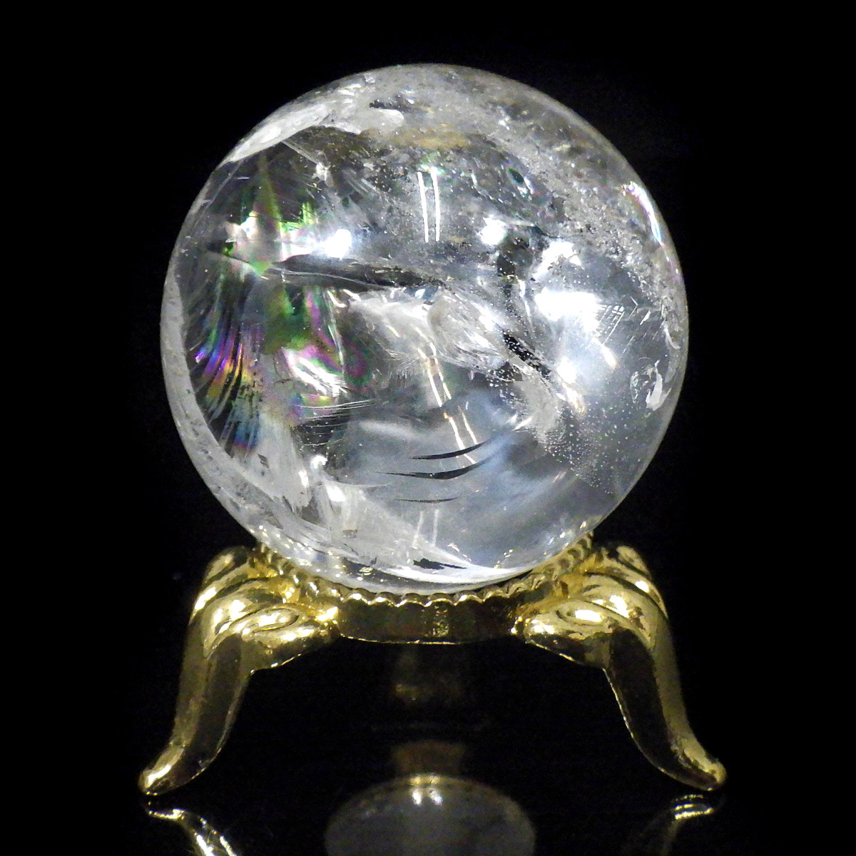 ブラジル産の天然水晶球です。 透明感が高く、はっきりとしたレインボーが確認でき、美しい水晶丸玉です。球状に磨き上げるためにはそれだけの直径がある原石が必要で、大きくなればなるほど貴重になっていきます。