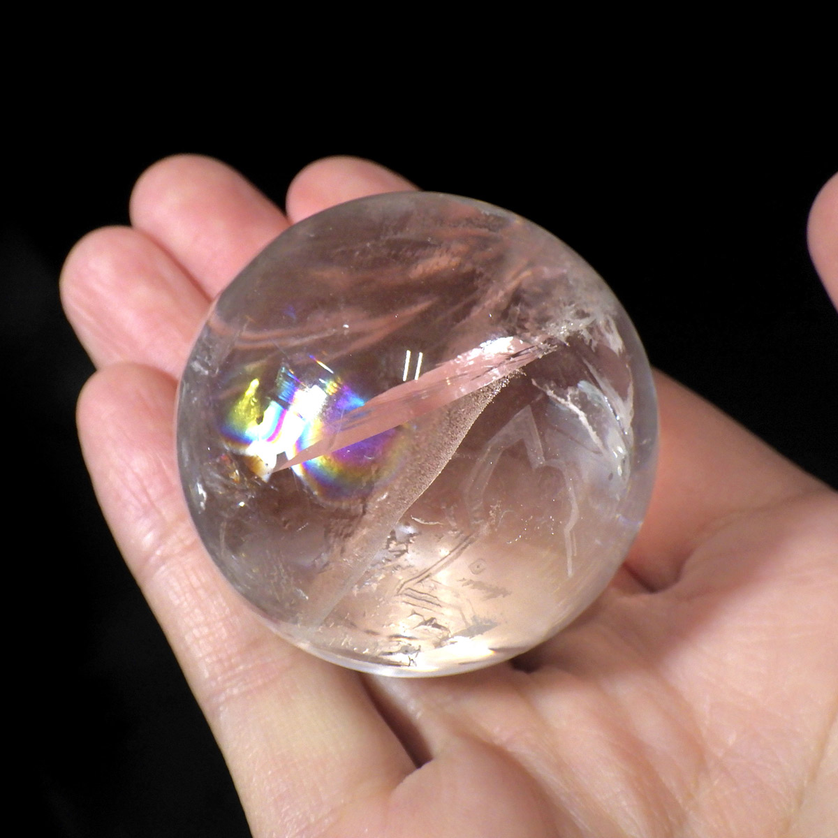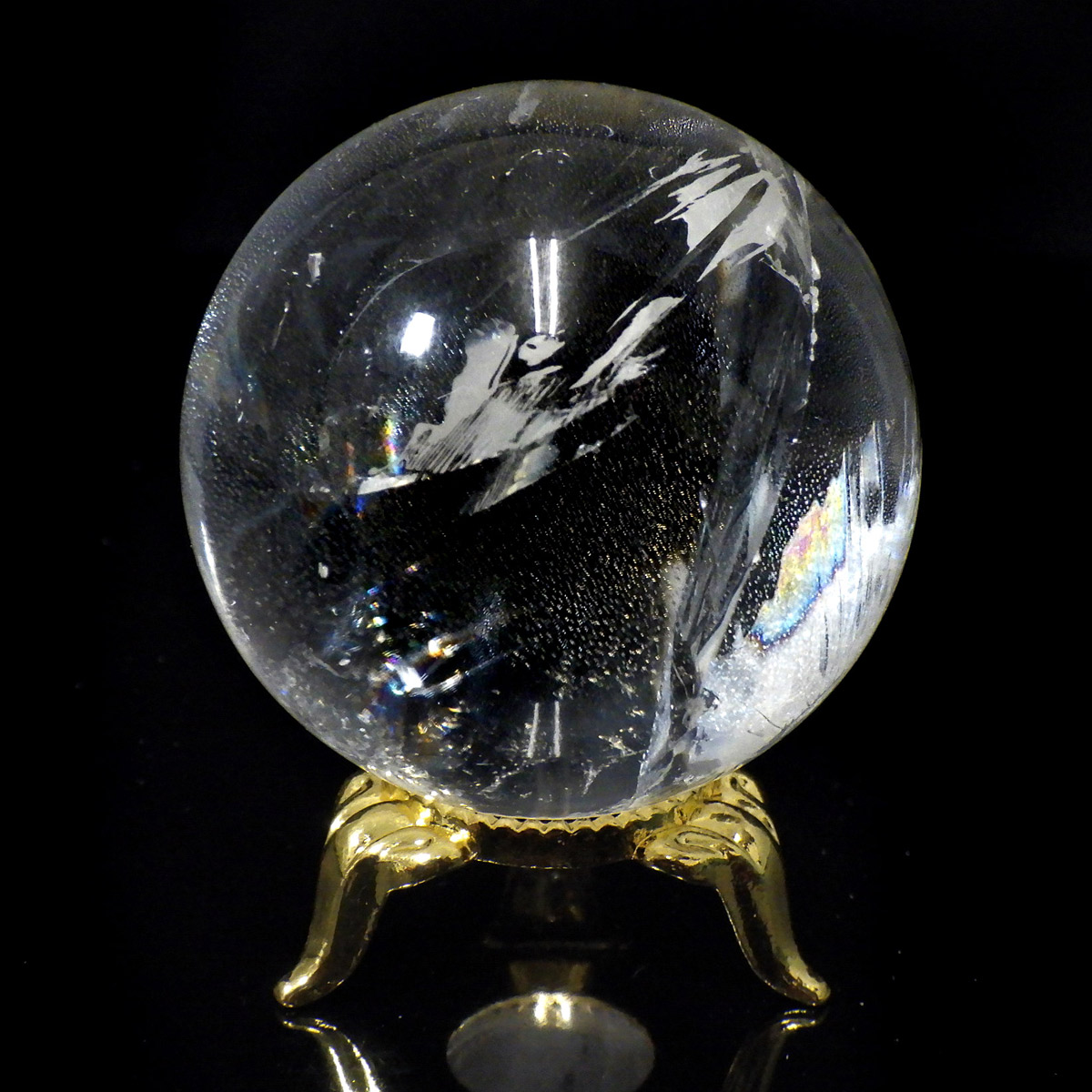 ブラジル産の天然水晶球です。 透明感が高く、はっきりとしたレインボーが確認でき、美しい水晶丸玉です。球状に磨き上げるためにはそれだけの直径がある原石が必要で、大きくなればなるほど貴重になっていきます。