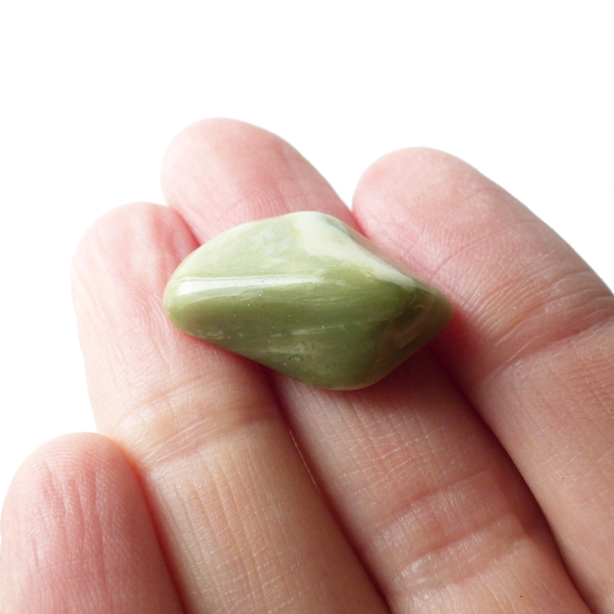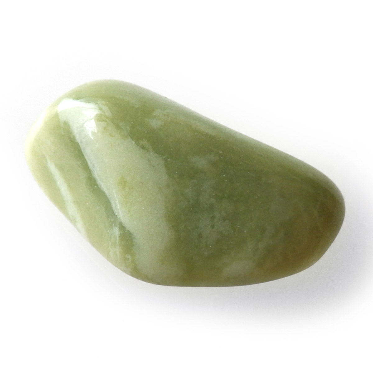 インド産のインフィナイト、タンブルです。インフィナイトはケイ酸マグネシウム鉱物で、クリソタイルとサーペンティンの組み合わせといわれています。通常、黄色、クリーム、緑、などの優しい色味をしており、縞模様が特徴的です。サーペンティンの一種で南アフリカで見つかるものを特別視し、インフィナイトと名づけられました。現在、インフィナイトは南アフリカとインドでしか見られない組み合わせとのことです。インフィナイトストーン、インフィナイトサーペンティンとも呼ばれています。