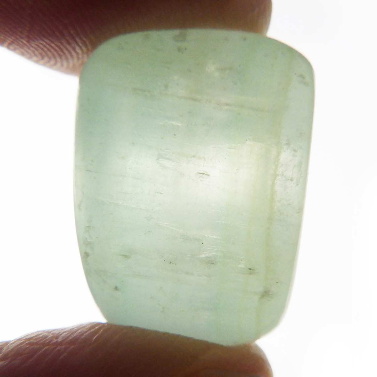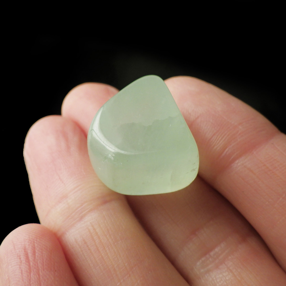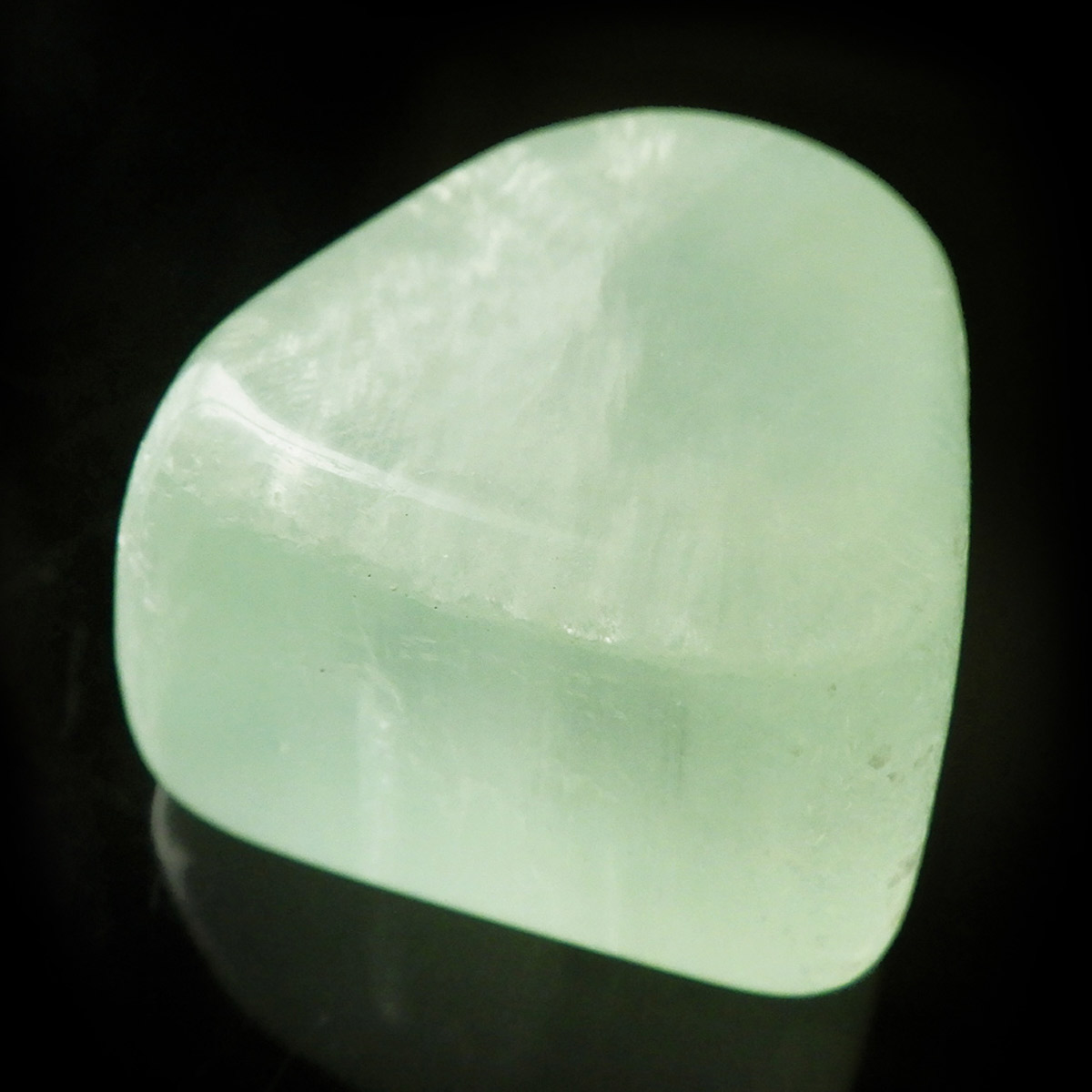 アフガニスタン産のピスタチオカルサイト(グリーンカルサイト)タンブルです。アフガニスタンでは、淡いピンクやブルー、グリーンなどの多彩なカルサイトが産出します。淡いグリーンのカルサイトは、その色調や濃淡などによって、様々なニックネームがあるようです。同じグリーンカルサイトでも、色が薄く縞目模様が確認出来るものなどは、海に浮かぶ泡に倣って シーフォームカルサイトなどと呼ばれる事もあるようです。このピスタチオカルサイトも、ニックネームで鉱物名ではありませんが、殻を剥いたあとのピスタチオのように、鮮やかでかわいらしいカルサイトです。