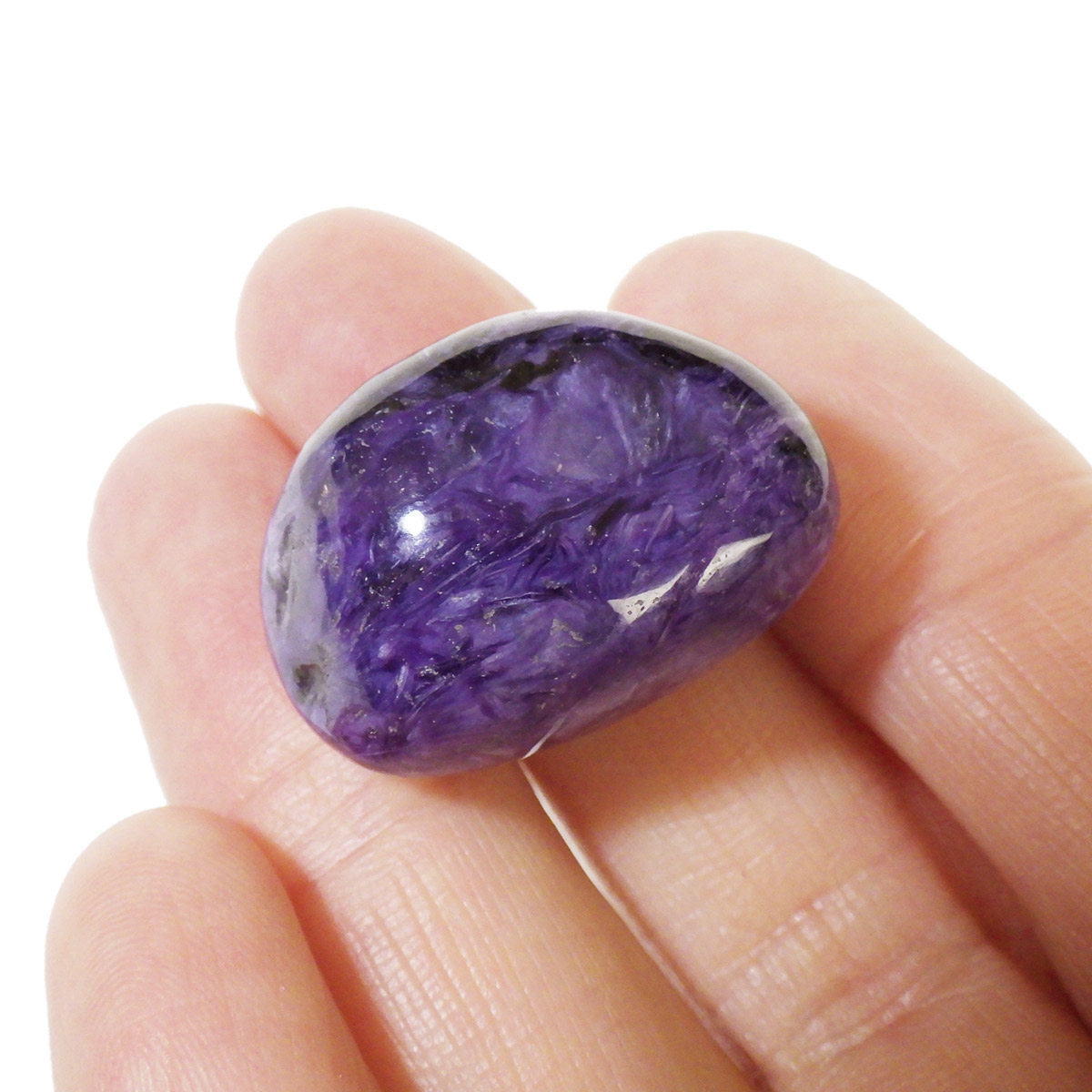 ロシア産のチャロアイト、タンブルです。はっきりとしたマーブル模様が浮き上がったチャロアイト。色・艶・模様とてもきれいで癒されます。チャロアイトはラリマー、スギライトと共に3大ヒーリングストーンの1つとされています。混ざりあった模様が面白く明るいパープルで高品質なチャロアイトです。