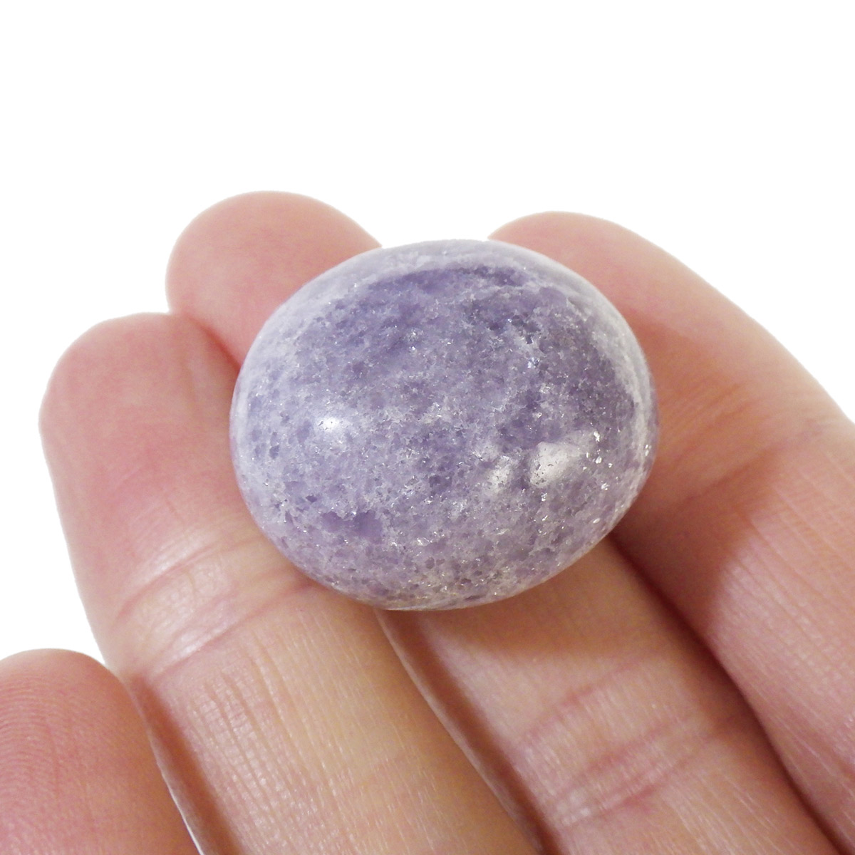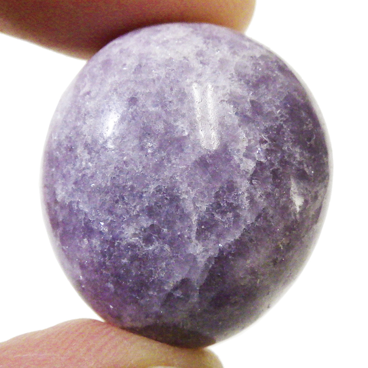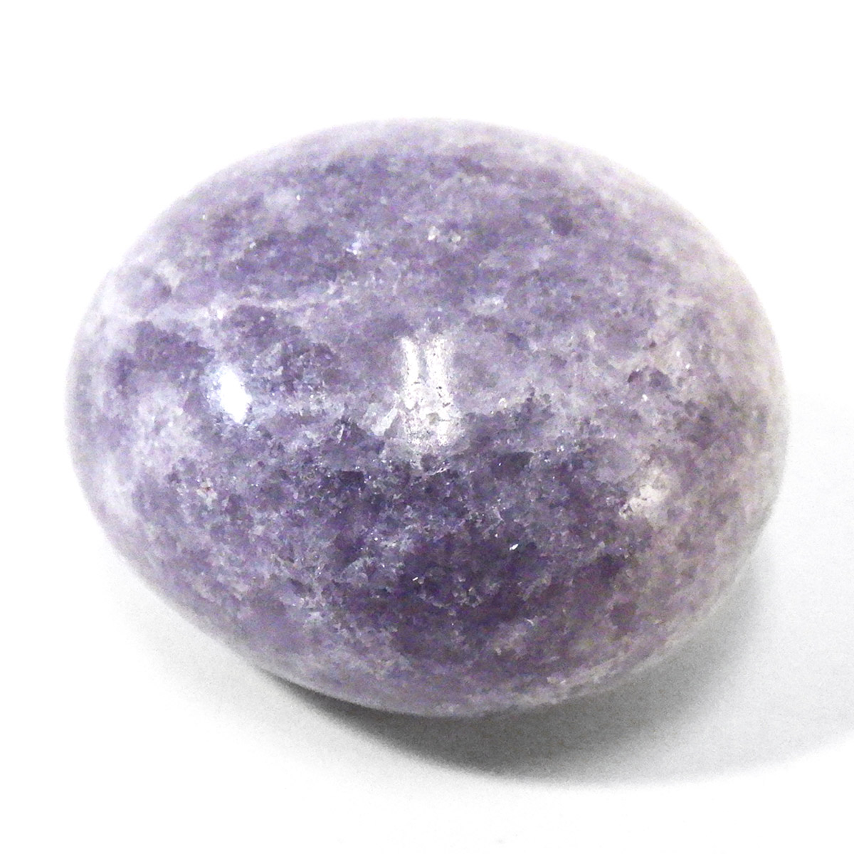 ペルー産のレピドライト、タンブルです。レピドライトの最大の特徴は、落ち着いたダークパープルの色合いと、光の当たる角度によって見られる、キラキラとした美しい輝きです。雲母の一種で、リチウムを多く含んでいるため、和名を「リチア雲母」と言います。このキラキラとした輝きは、雲母によるものです。
