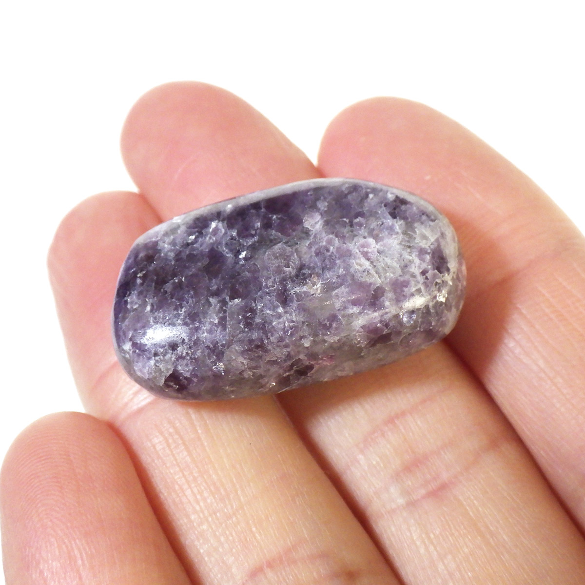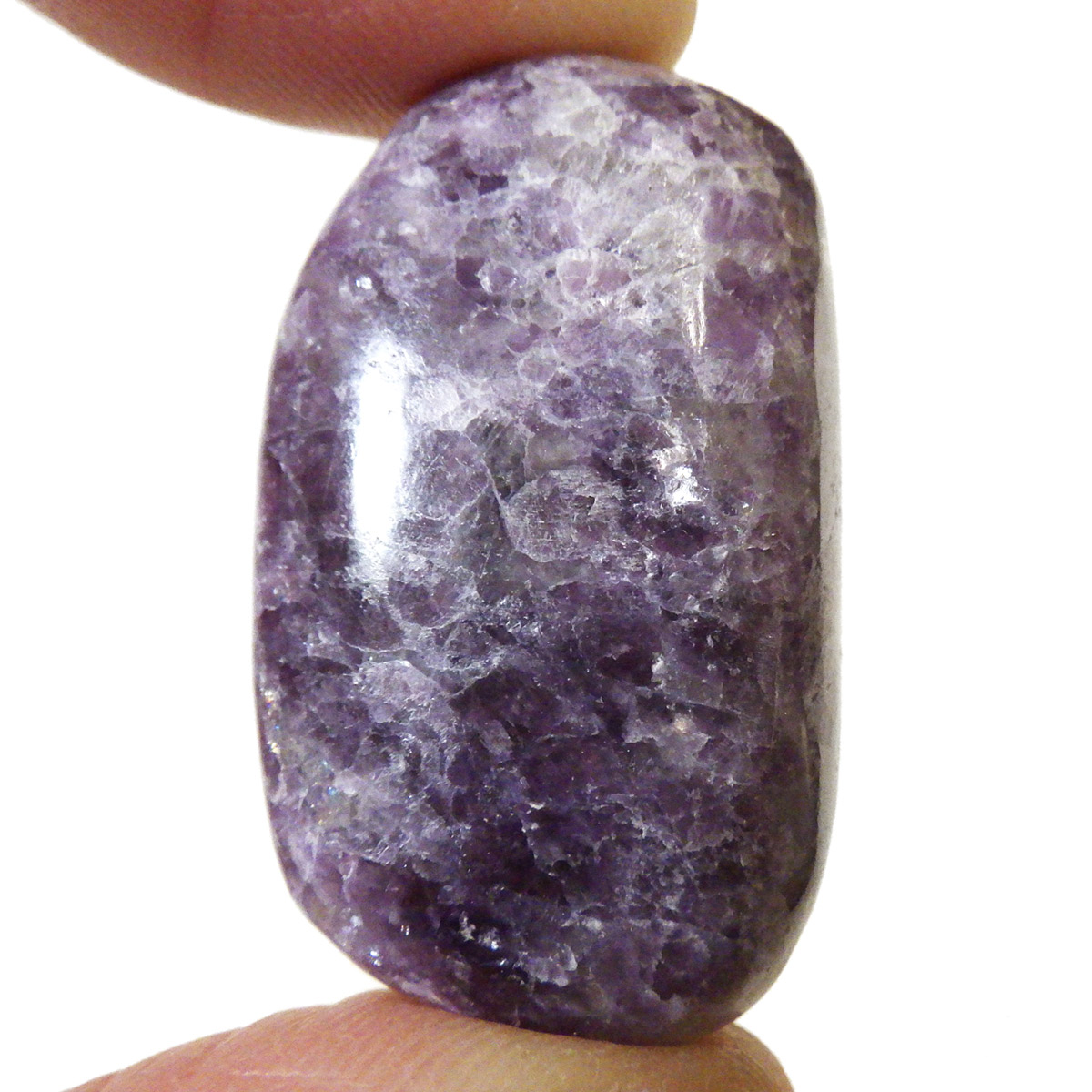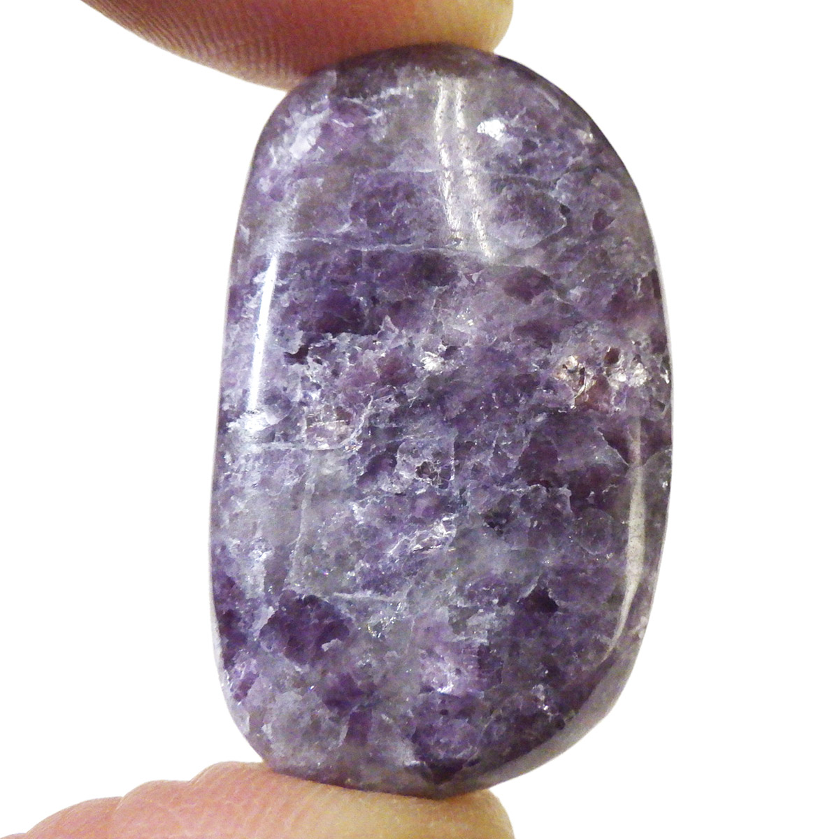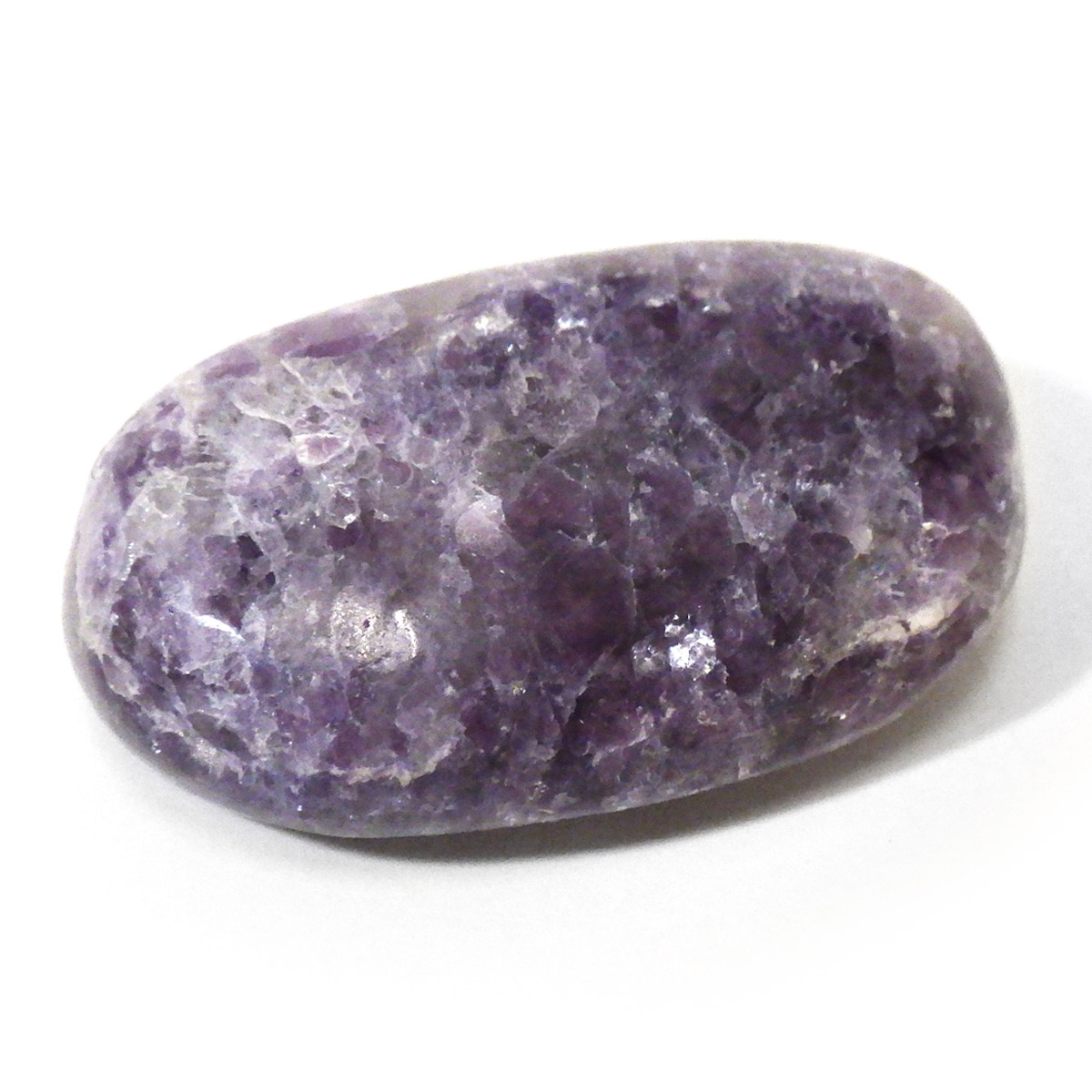 ペルー産のレピドライト、タンブルです。レピドライトの最大の特徴は、落ち着いたダークパープルの色合いと、光の当たる角度によって見られる、キラキラとした美しい輝きです。雲母の一種で、リチウムを多く含んでいるため、和名を「リチア雲母」と言います。このキラキラとした輝きは、雲母によるものです。