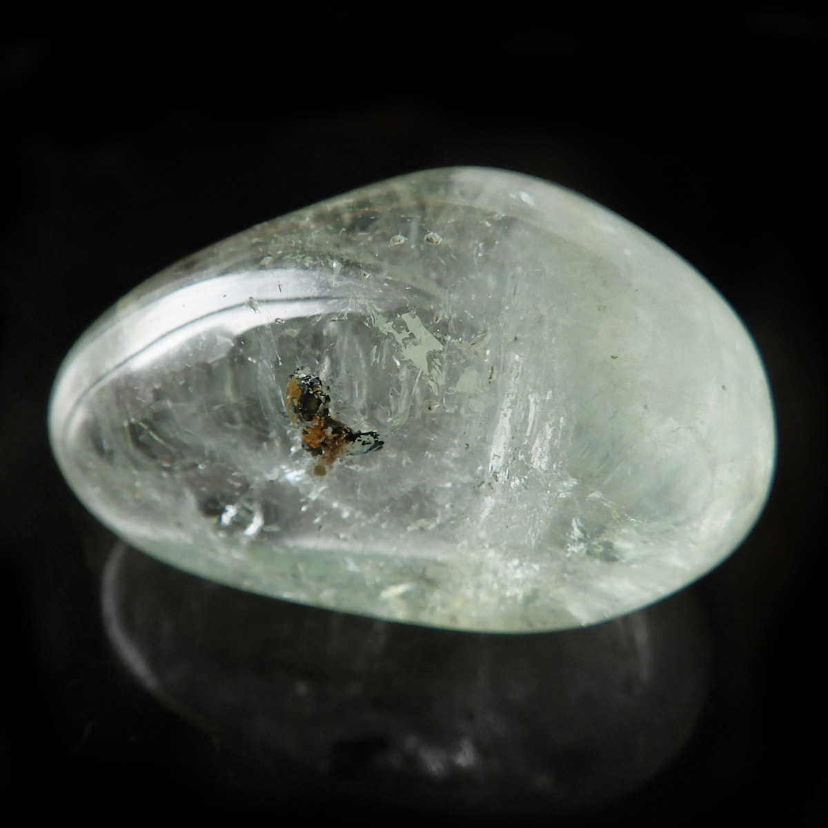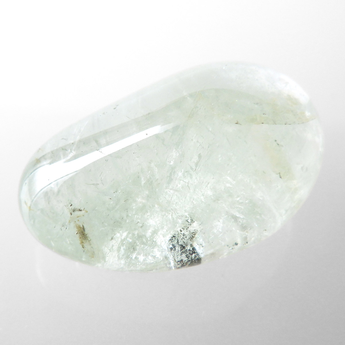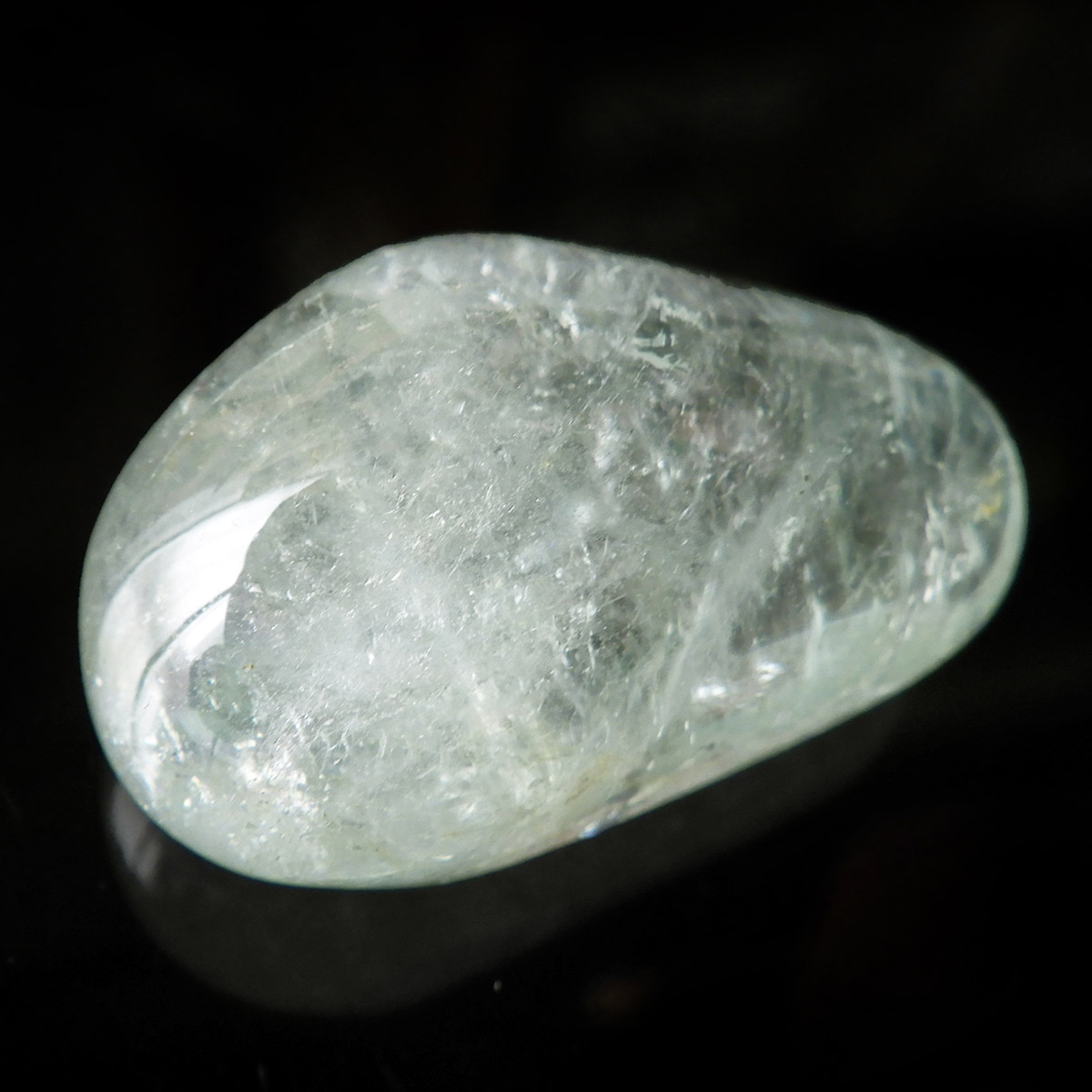 ブラジル産のブルートパーズ、タンブルです。トパーズは様々な色を持つ鉱物であり、和名を「黄玉(おうぎょく)」というように、本来は「黄色からオレンジ色」のトパーズがスタンダードなカラーとなっています。