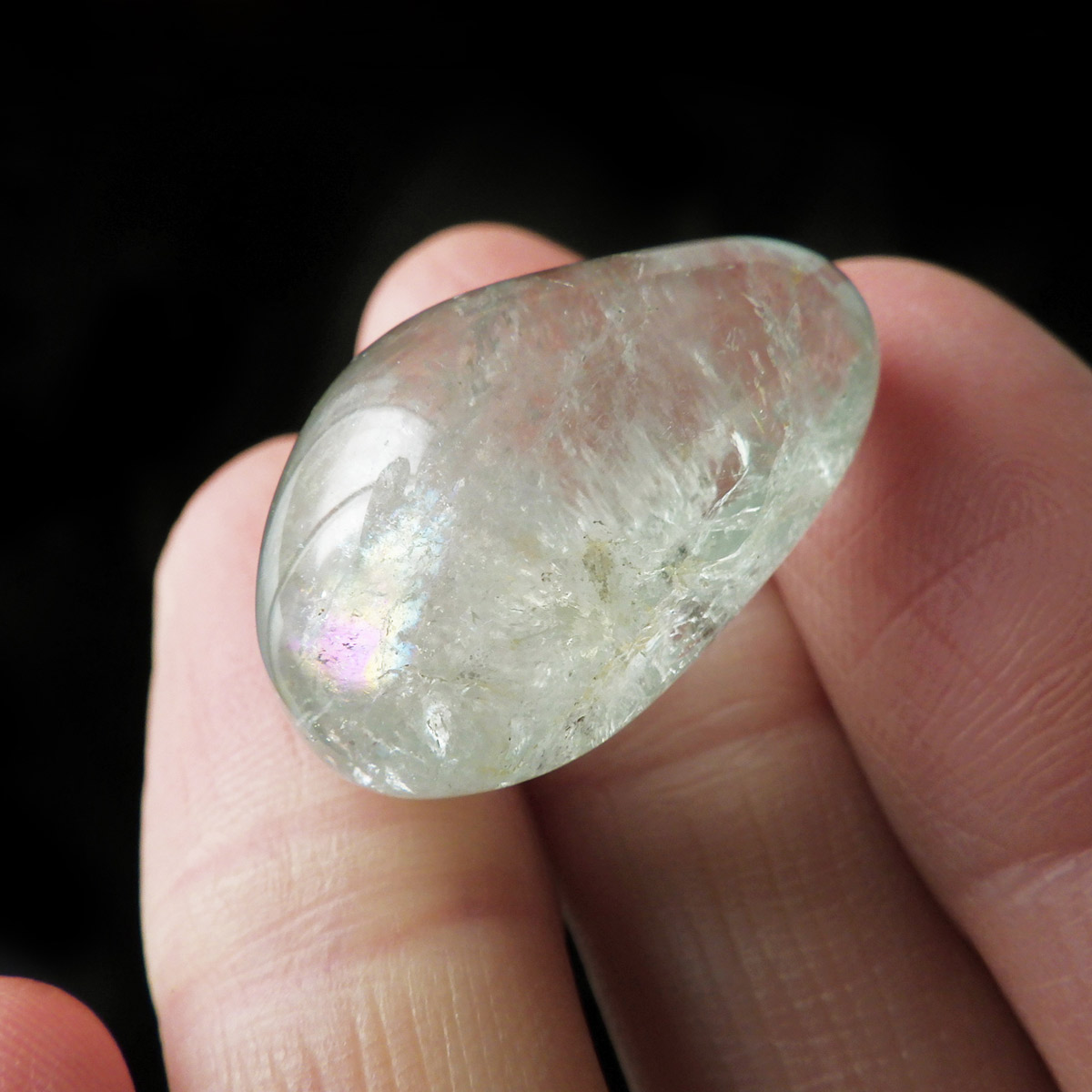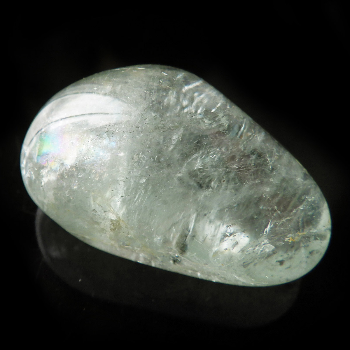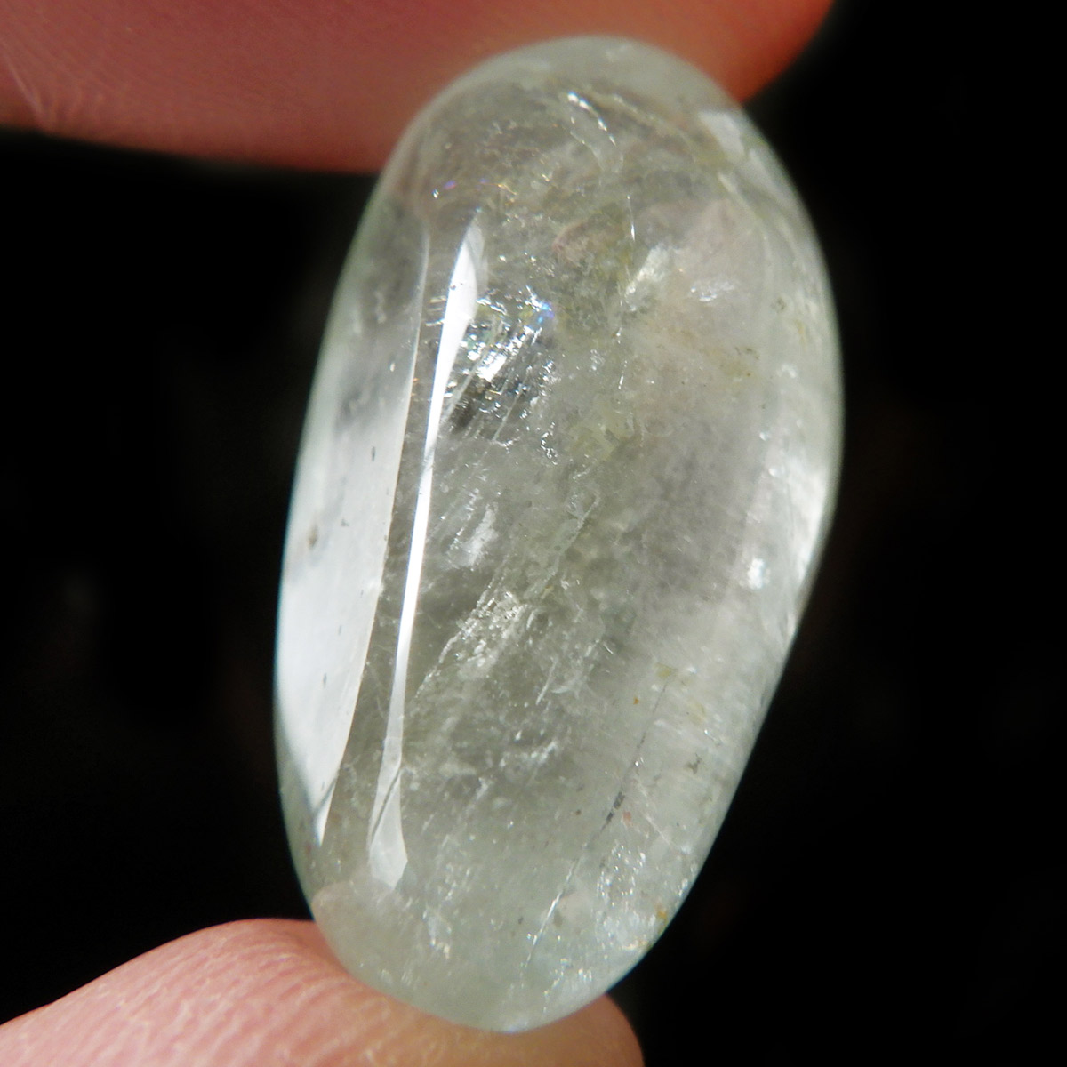 ブラジル産のブルートパーズ、タンブルです。トパーズは様々な色を持つ鉱物であり、和名を「黄玉(おうぎょく)」というように、本来は「黄色からオレンジ色」のトパーズがスタンダードなカラーとなっています。