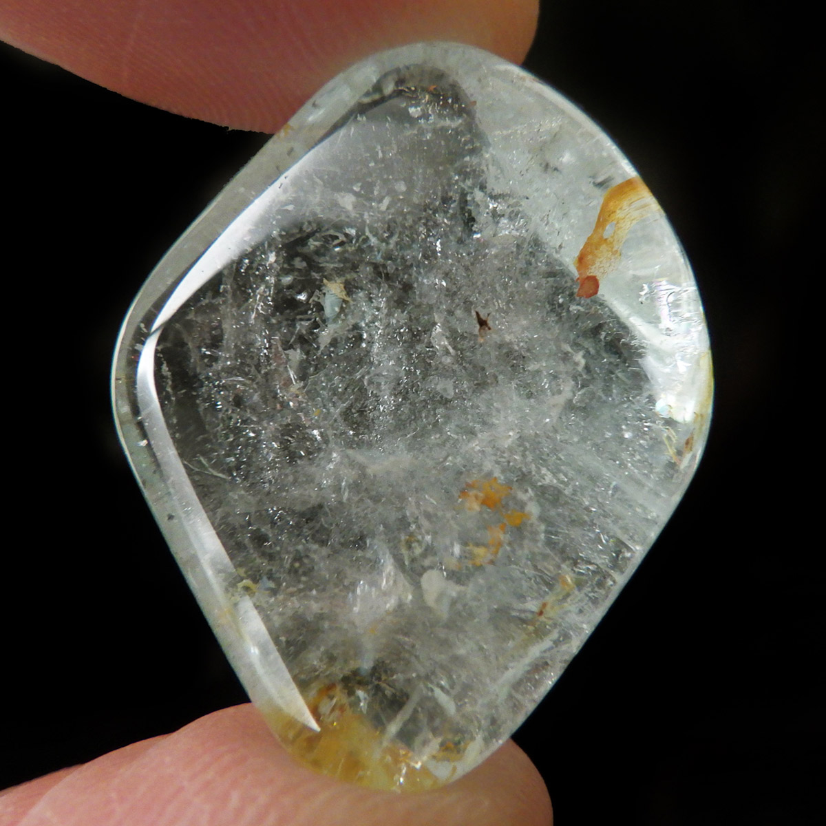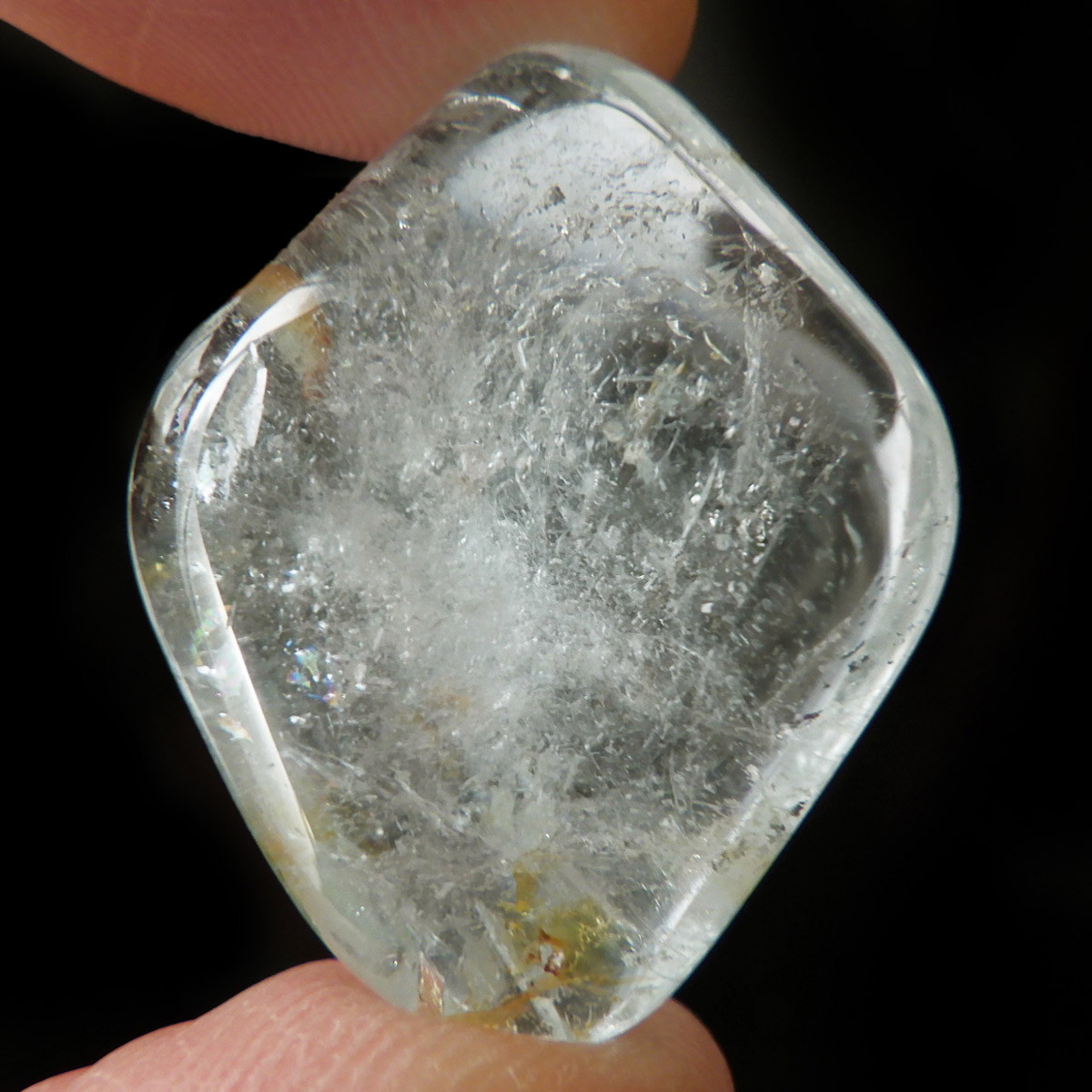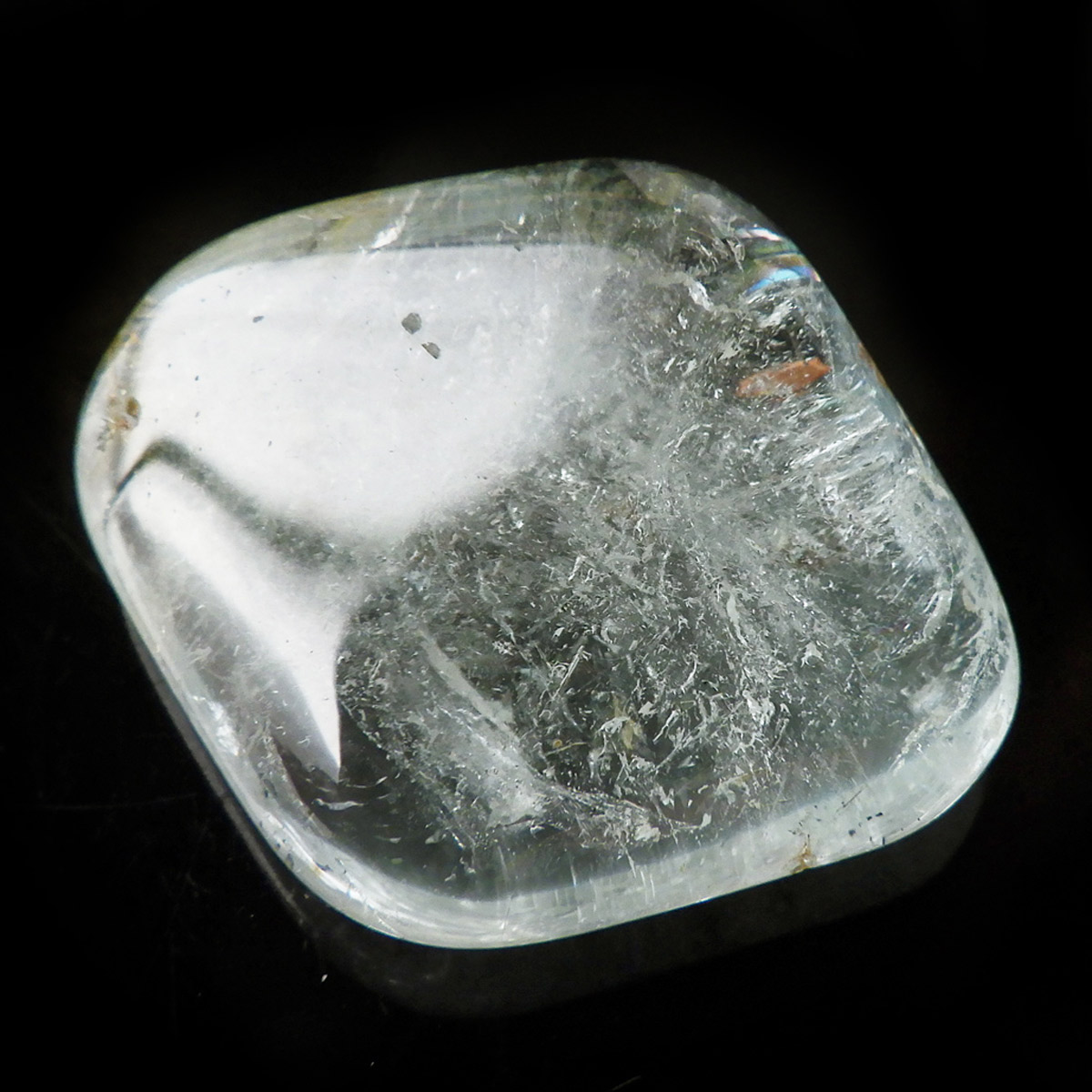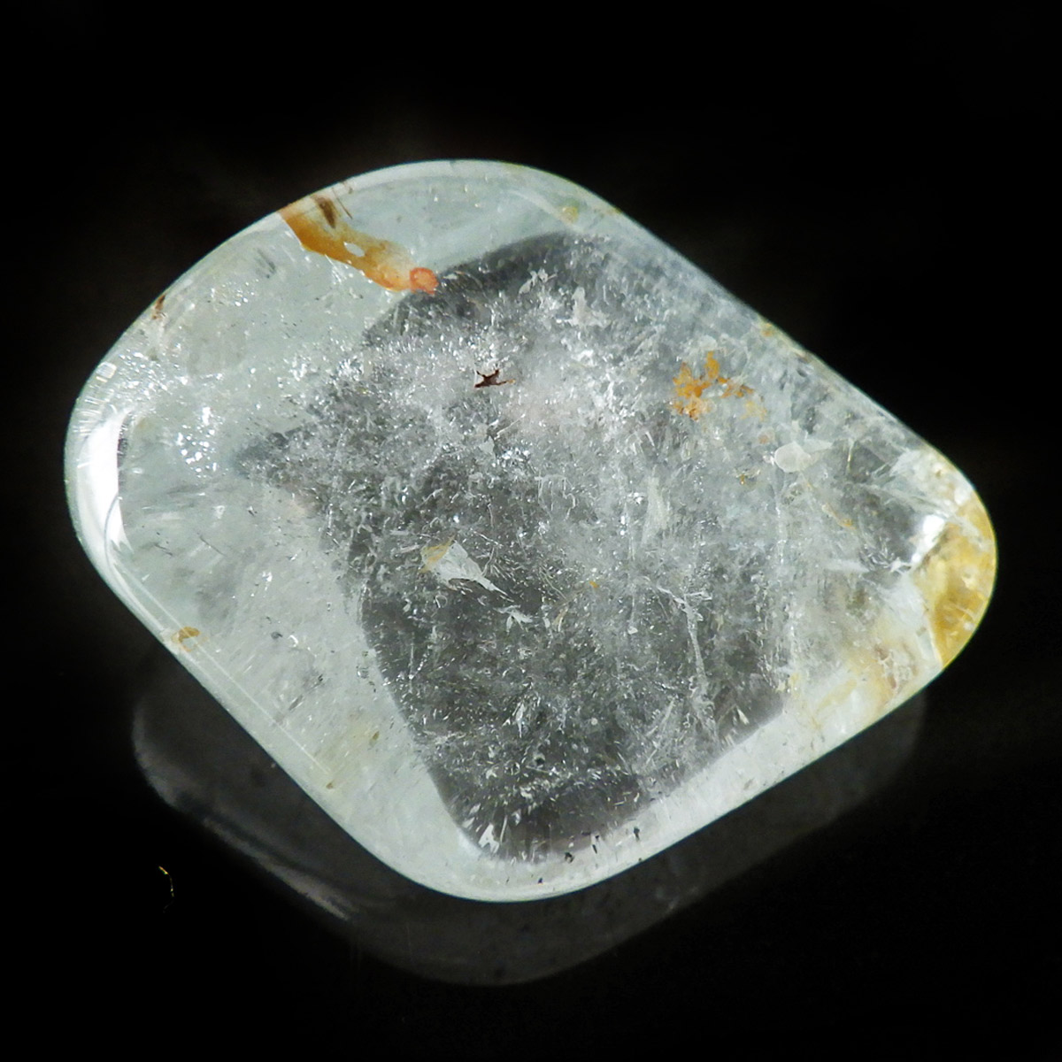ブラジル産のブルートパーズ、タンブルです。トパーズは様々な色を持つ鉱物であり、和名を「黄玉(おうぎょく)」というように、本来は「黄色からオレンジ色」のトパーズがスタンダードなカラーとなっています。