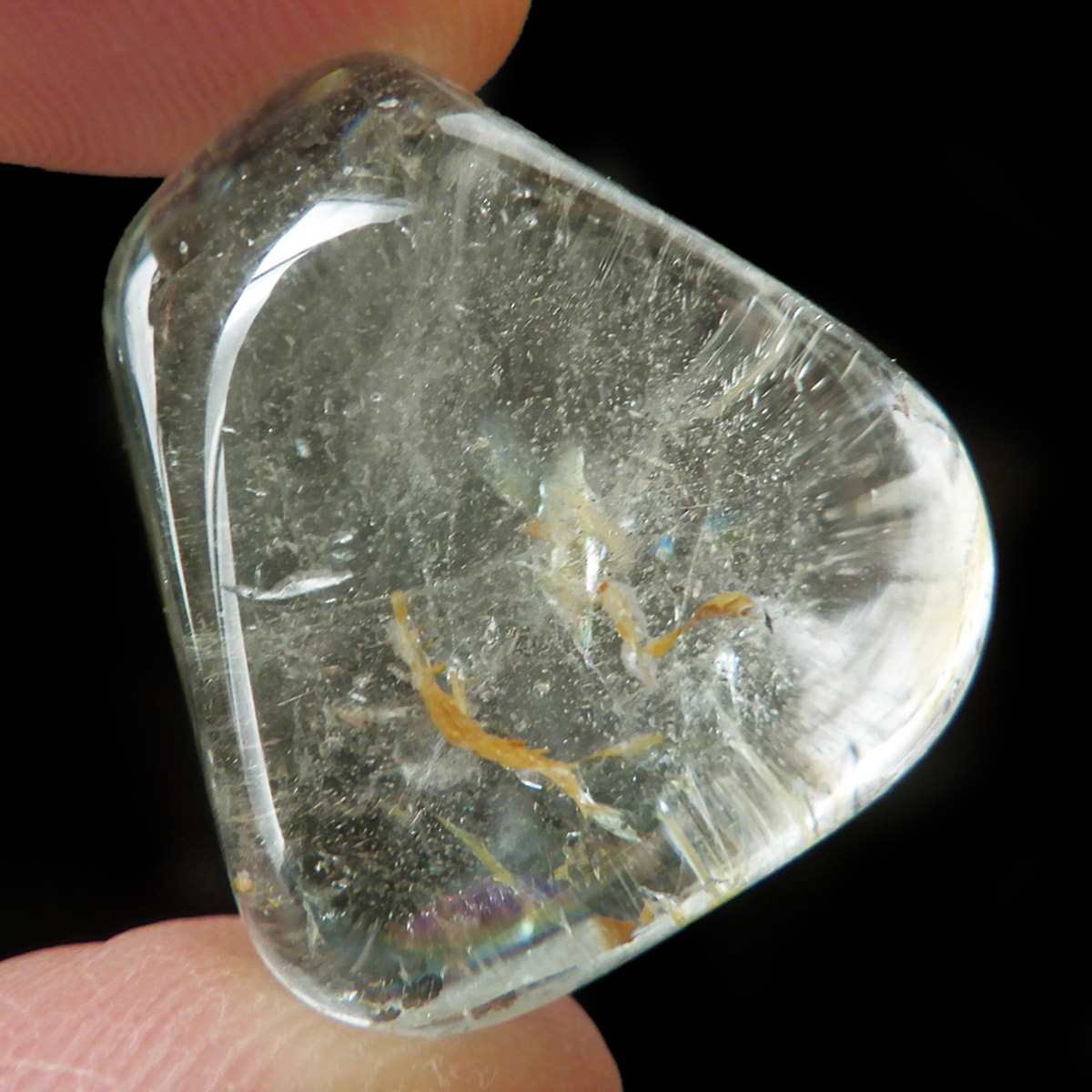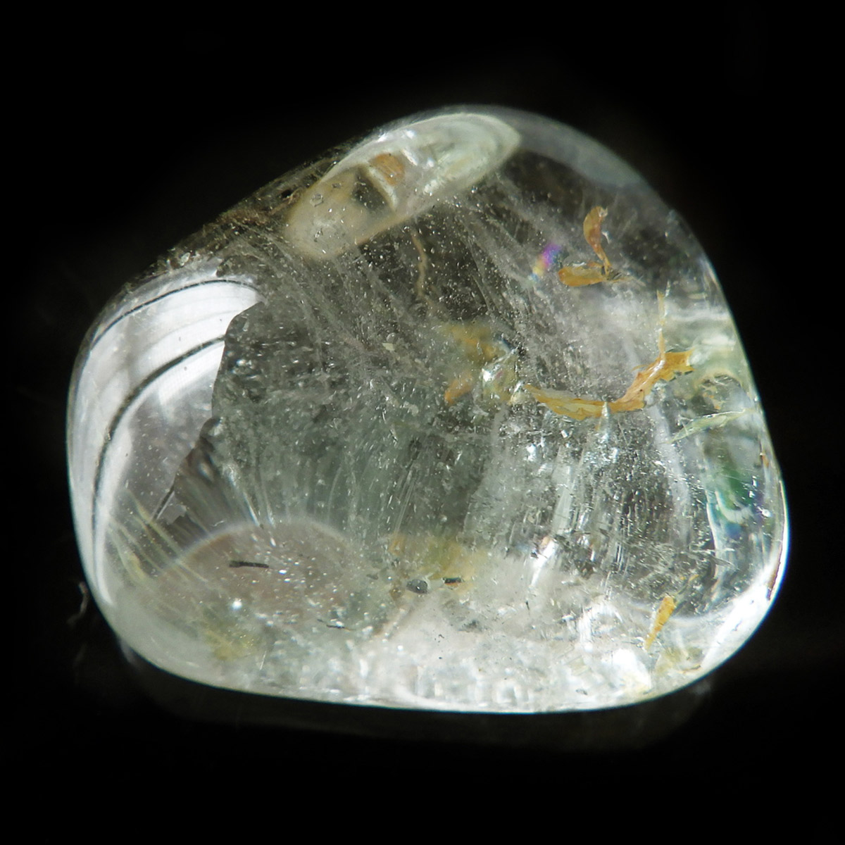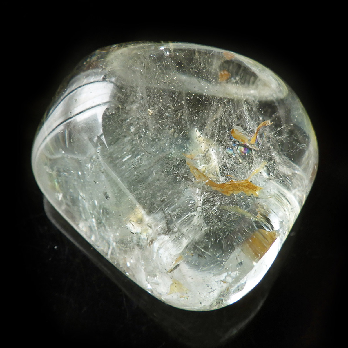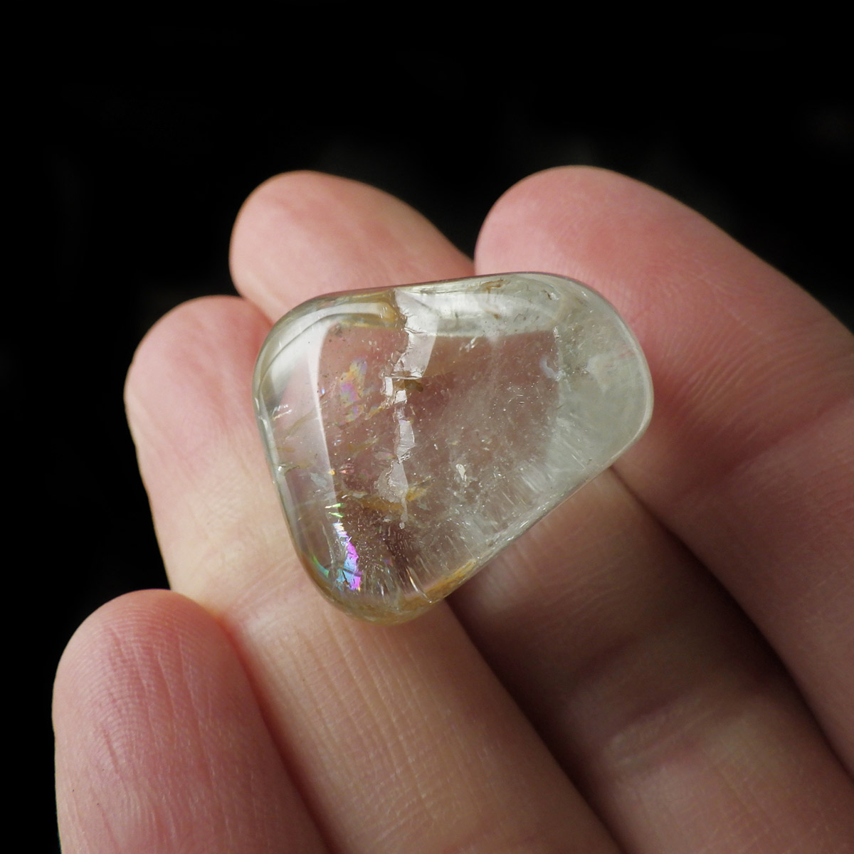 ブラジル産のブルートパーズ、タンブルです。トパーズは様々な色を持つ鉱物であり、和名を「黄玉(おうぎょく)」というように、本来は「黄色からオレンジ色」のトパーズがスタンダードなカラーとなっています。 その中でも、青色を発するものがブルートパーズと呼ばれています。しかし、青色のトパーズが天然で生まれることは大変希少であり、現在はほとんど見つかることがありません。 そのため、市場で流通しているブルートパーズのほとんどは、ホワイトトパーズに放射処理が施されています。今回ご用意したブルートパーズは、まさに天然のもので、大変希少価値の高いものです。