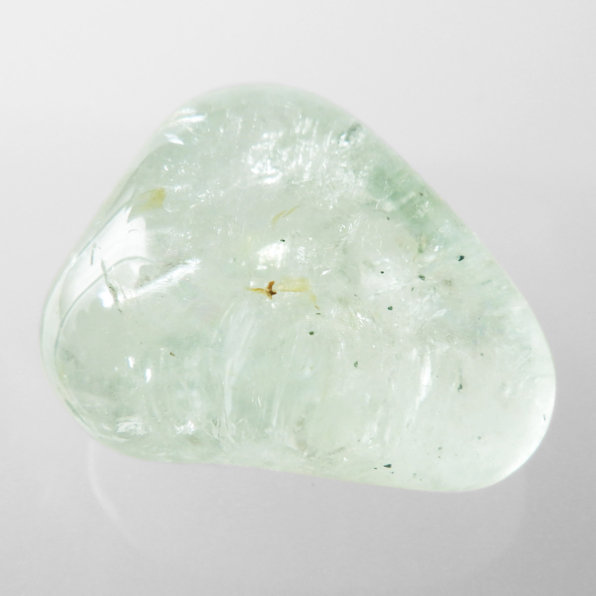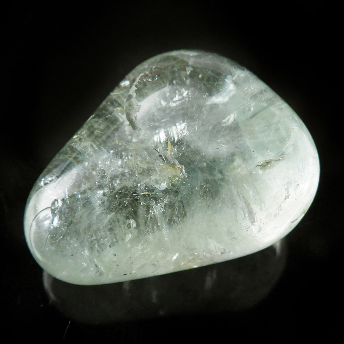 ブラジル産のブルートパーズ、タンブルです。トパーズは様々な色を持つ鉱物であり、和名を「黄玉(おうぎょく)」というように、本来は「黄色からオレンジ色」のトパーズがスタンダードなカラーとなっています。 その中でも、青色を発するものがブルートパーズと呼ばれています。しかし、青色のトパーズが天然で生まれることは大変希少であり、現在はほとんど見つかることがありません。 そのため、市場で流通しているブルートパーズのほとんどは、ホワイトトパーズに放射処理が施されています。今回ご用意したブルートパーズは、まさに天然のもので、大変希少価値の高いものです。