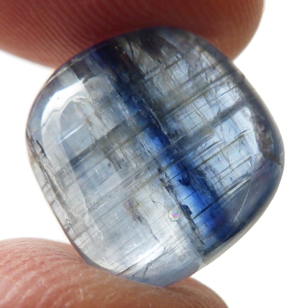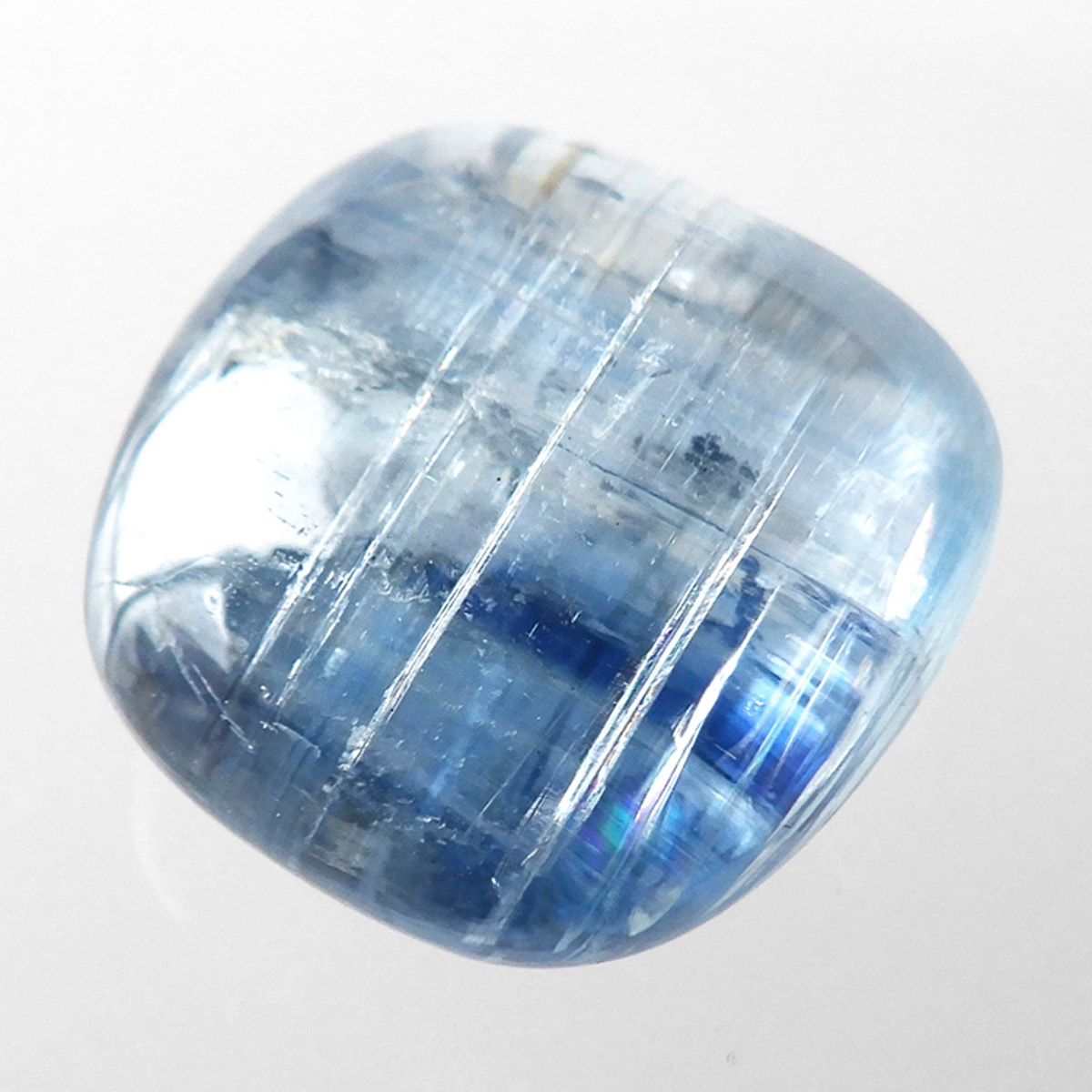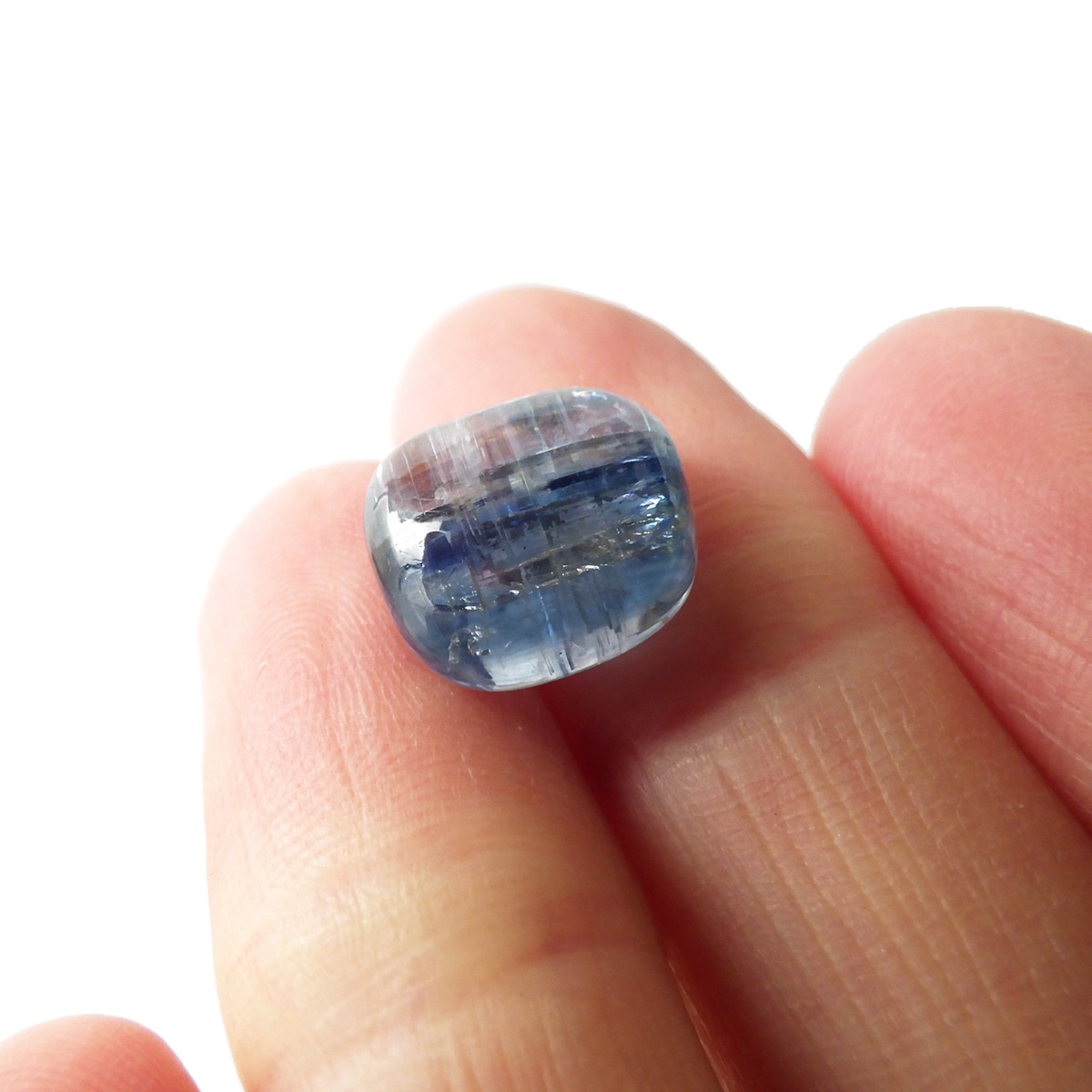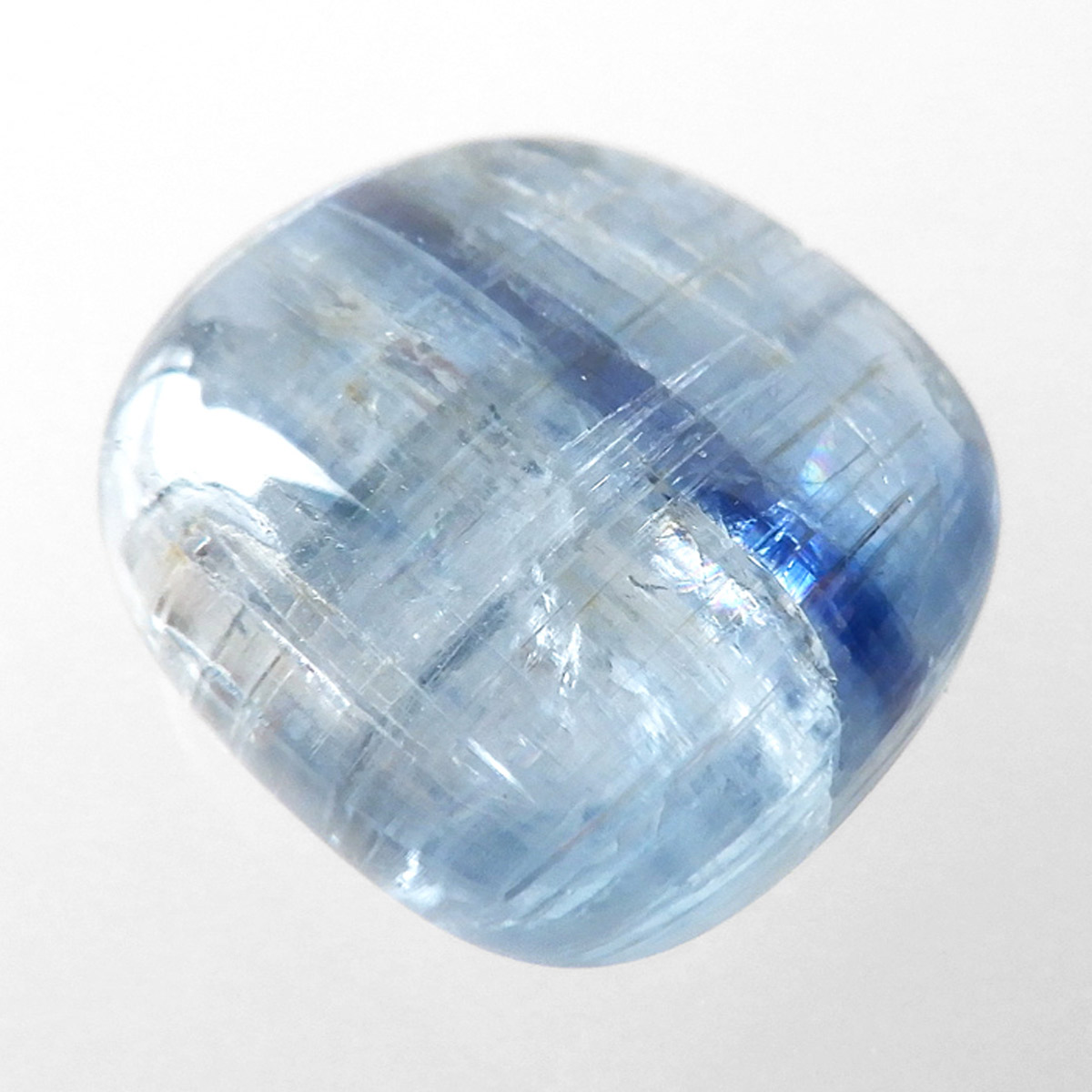 ネパール・ヒマラヤ産のカイヤナイト、タンブルです。カイヤナイトの独特のブルーは、サファイアと同じく、含まれる鉄とチタンが要因となっています。外見だけではブルーサファイアと見間違うこともあります。見た目にも一つの方向に繊維がはっきりと伸びている感じなのですが、カイヤナイトを磨いた玉等はまるで宇宙から見た地球を思わせるような、深く美しいブルーのグラデーションが美しい石です。