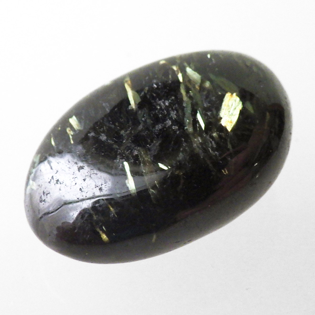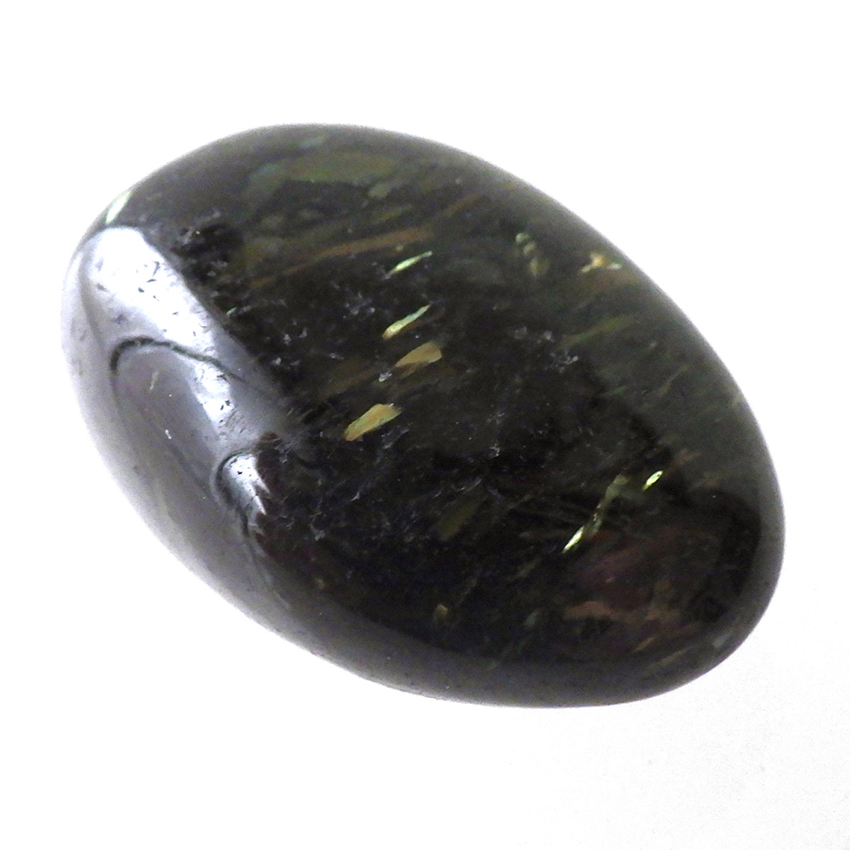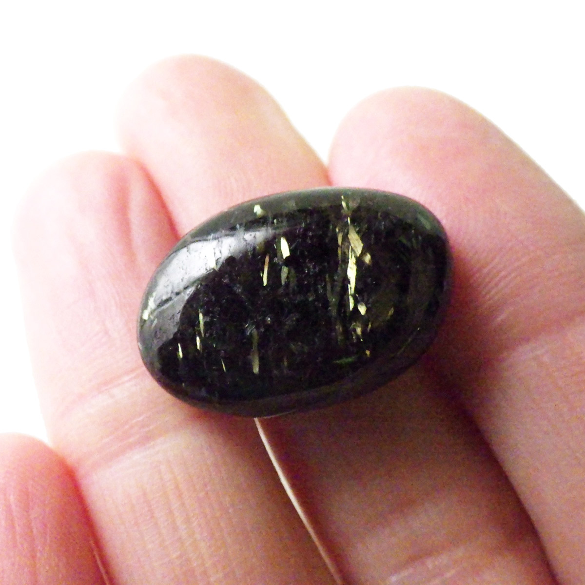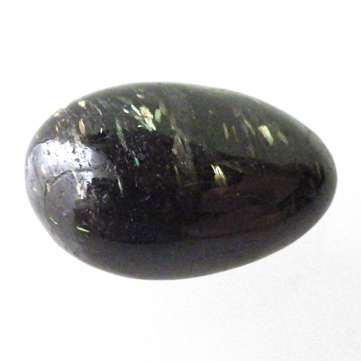グリーンランド産の高品質ヌーマイト、タンブルです。 ヌーマイトは、1982年にグリーンランドのヌーク地方で発見され、地名に因んで名づけられました。ヌーマイト自体は30億年前から地球に存在したといわれる石で、気の遠くなるような年月を経て現代に現れた石だといわれています。和名は角閃石片麻岩。アンソフィライトやゲドライト、石英、など多様なミネラルを含んでいるといわれています。一見、真っ黒い石に見えますが、光の角度によって鮮やかなゴールド、グリーン、ブルーなどのさまざまな色の閃光を示します。グリーンランド産のヌーマイトの虹色は、極微視的なアンソフィライトとゲドライトの交互の溶出ラメラ構造から反射された光の干渉によるものということです。世界で最も美しいと知られるのがグリーンランドのヌーマイトといわれています。