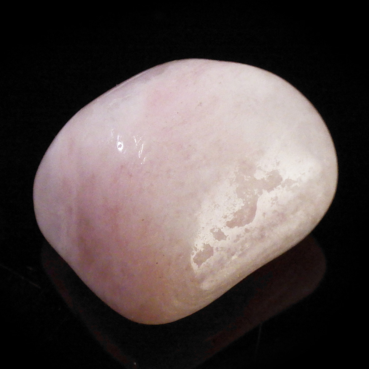 ペタライト(ペタル石)は、無色透明のものが有名で1800年に発見された鉱物です。ペタライトはリチウムを豊富に含んだ準長石で、和名は破片が葉に似ていることから葉長石と呼ばれています。このペタライトに希少ではありますがピンクのものがあり、ナミビアとブラジルの限られたところで産出されます。ピンクの発色は マンガンによるもので、ピンクが濃いものほど評価は高くなります。ハッキリとピンク色の発色が確認できるものは超レアです。