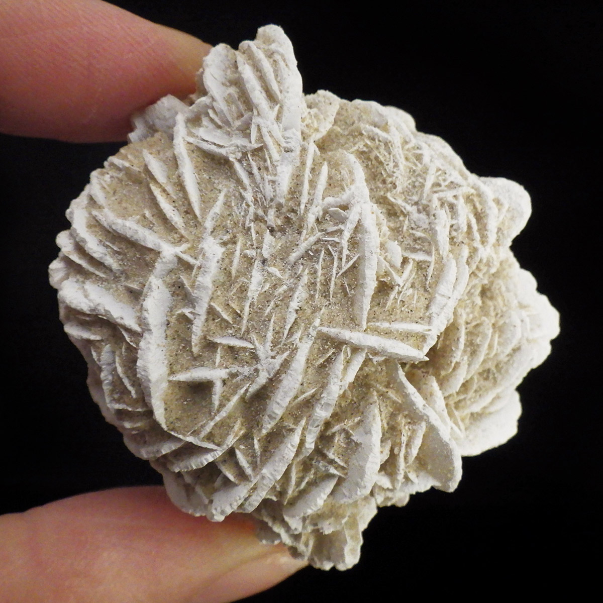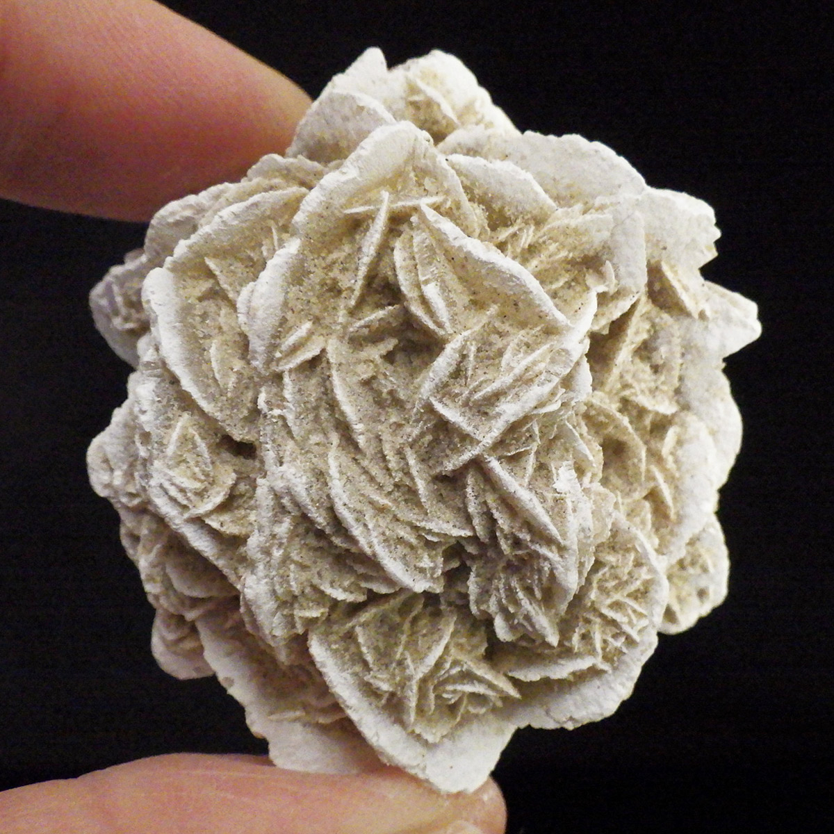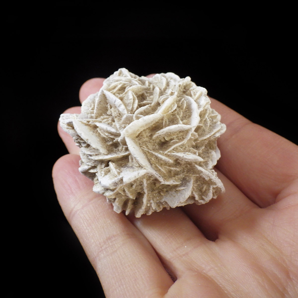 メキシコ産、デザートローズの原石です。手のひらに収まる大きさで形がかわいい結晶を厳選して集めました。デザートローズはジプサムを主成分とした砂漠で見つかる薔薇の花の形の結晶のことです。全体のフォルムとして見た目が丸っこく、細かいところまで織り成す結晶の美しさと神秘さが素敵です。