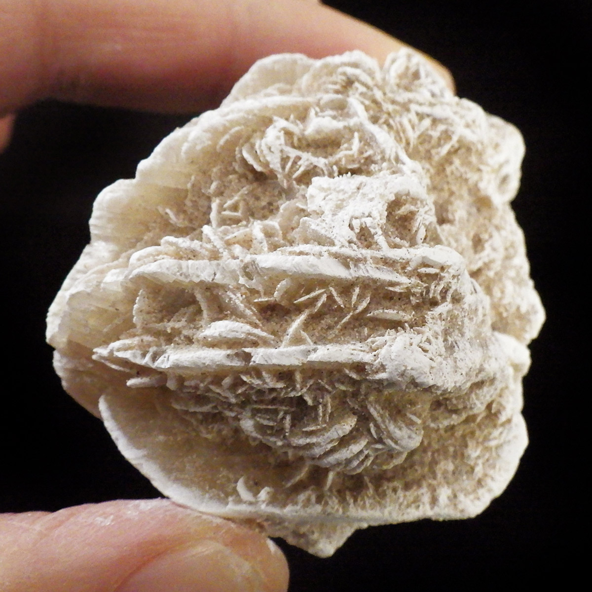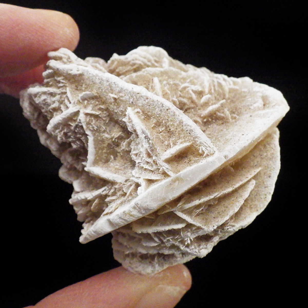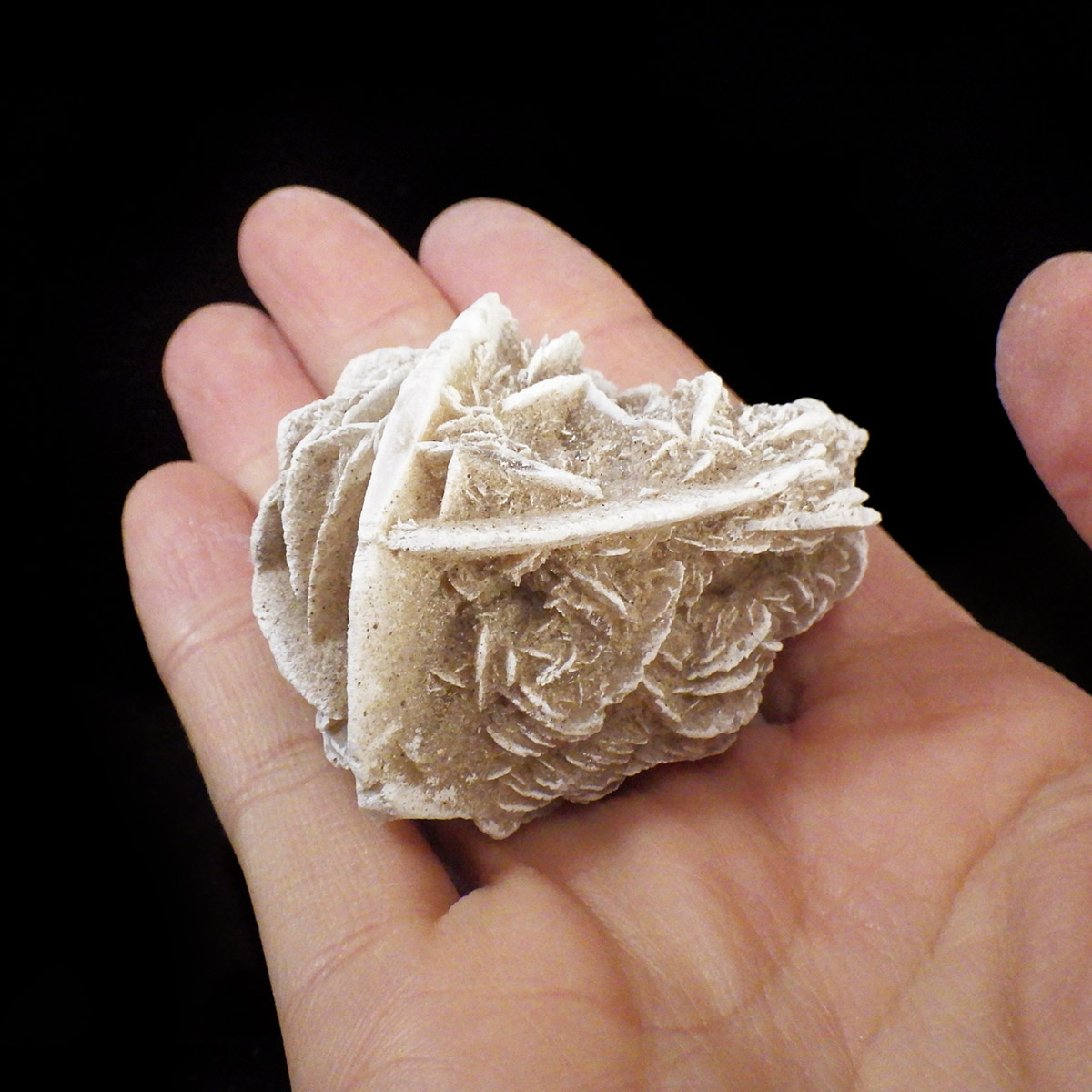 メキシコ産、デザートローズの原石です。手のひらに収まる大きさで形がかわいい結晶を厳選して集めました。デザートローズはジプサムを主成分とした砂漠で見つかる薔薇の花の形の結晶のことです。全体のフォルムとして見た目が丸っこく、細かいところまで織り成す結晶の美しさと神秘さが素敵です。