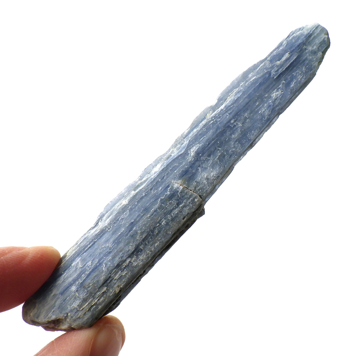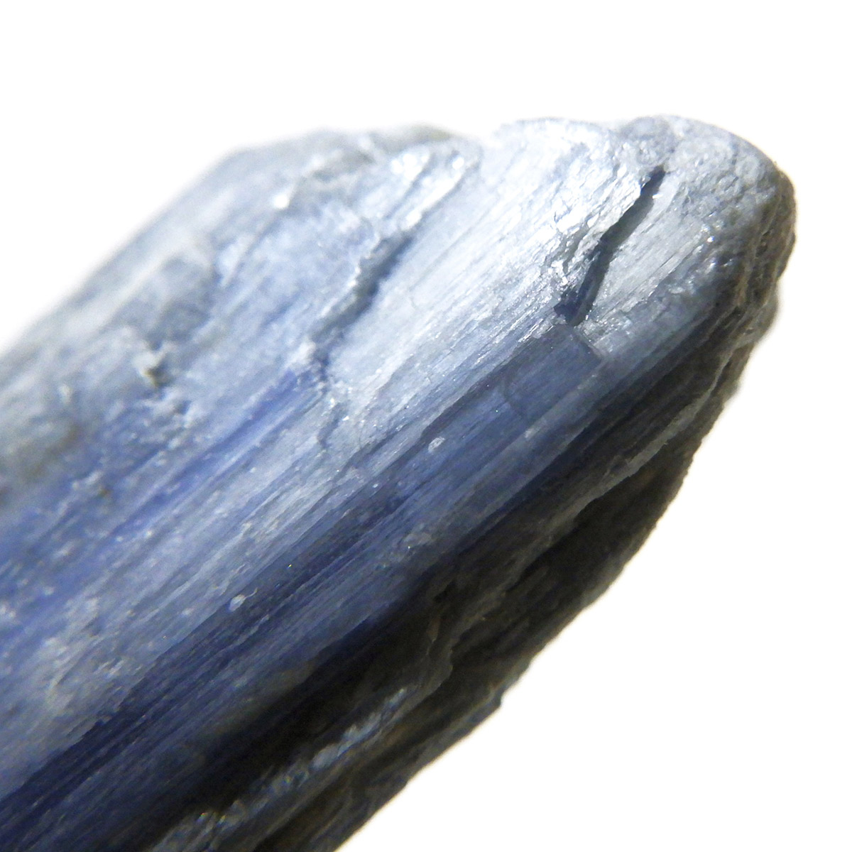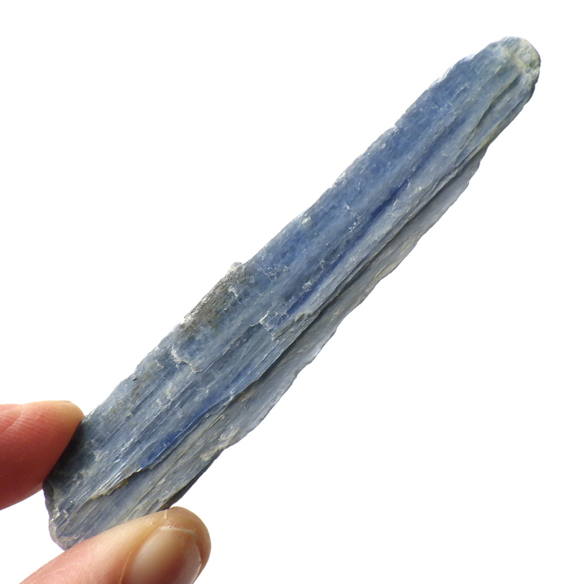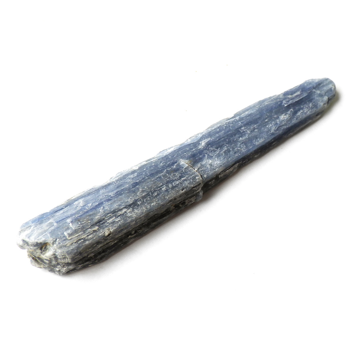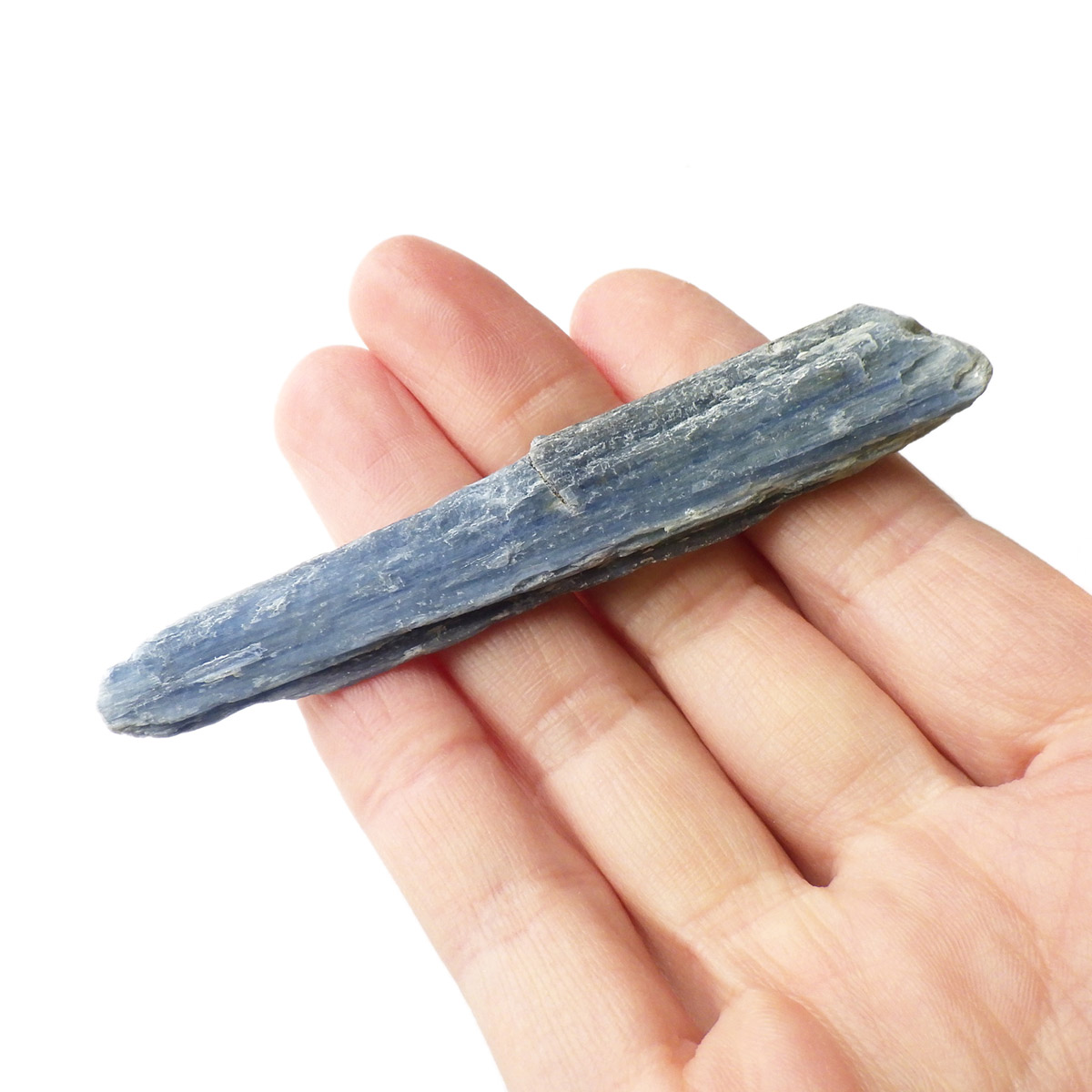 ブラジル産のカイヤナイト原石です。カイヤナイトはブルーと光沢がきれいな人気の鉱物です。柱状に伸びる結晶がうっとりする美しさを持っています。角度を変えると光を反射し、キラキラとした輝きが、これまた美しいです。