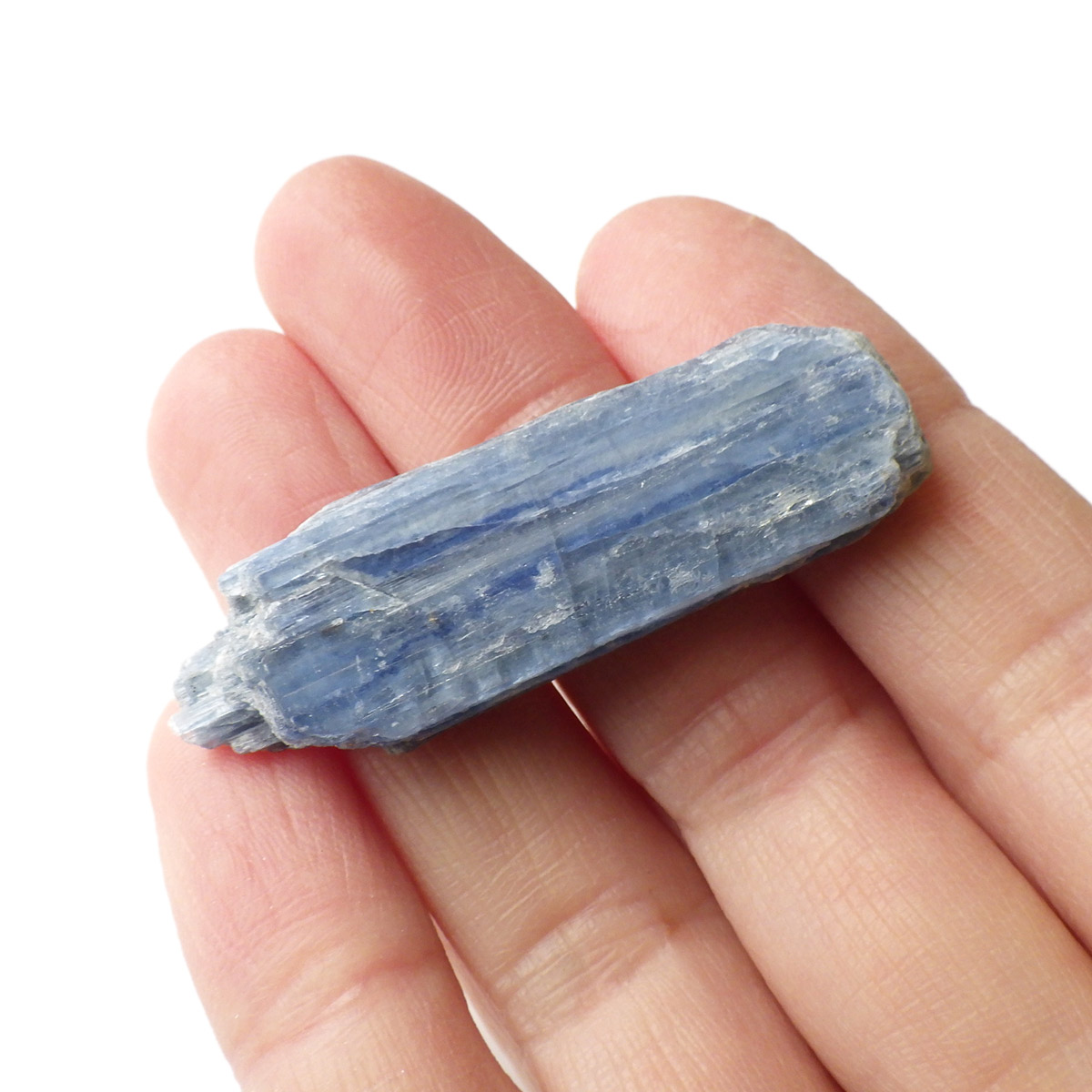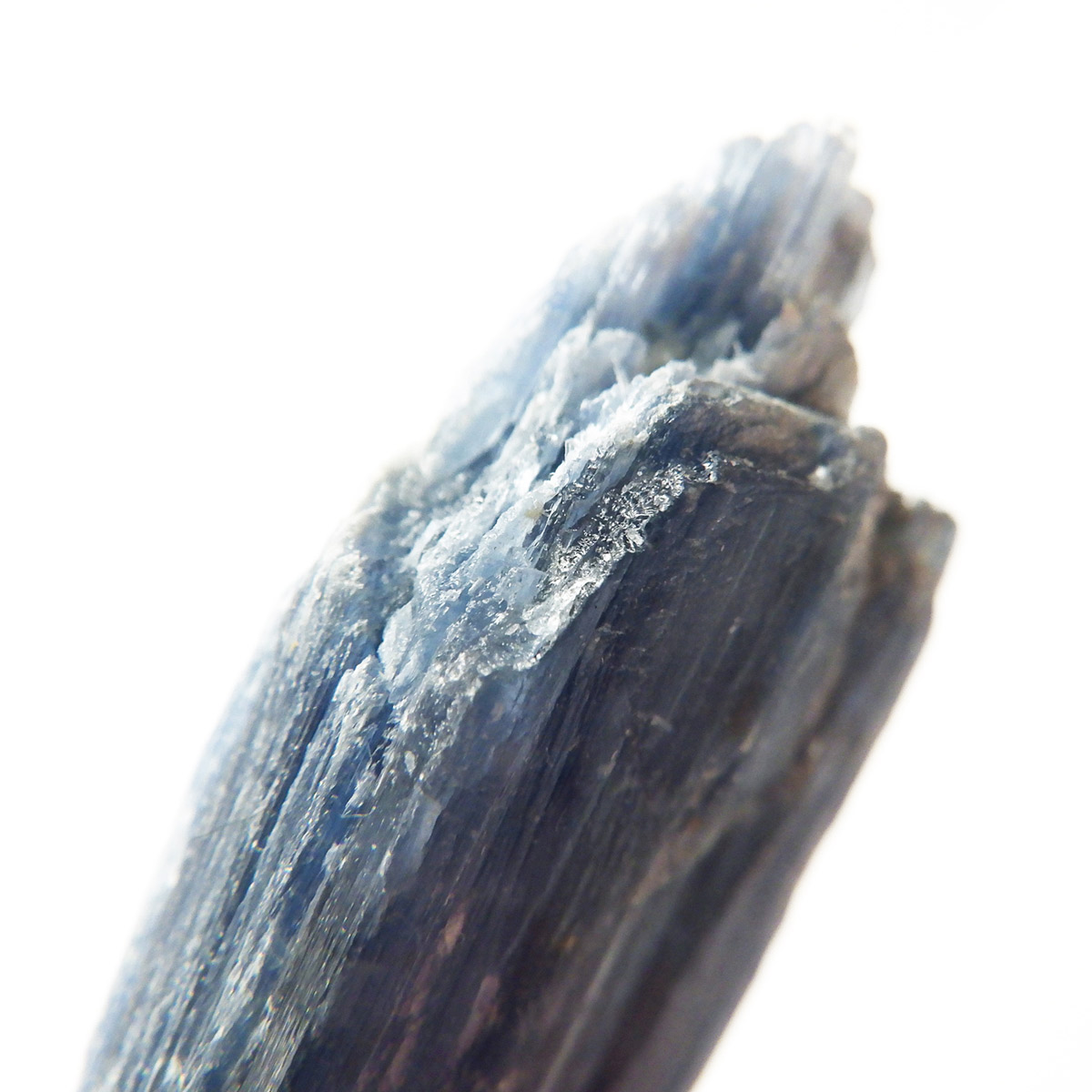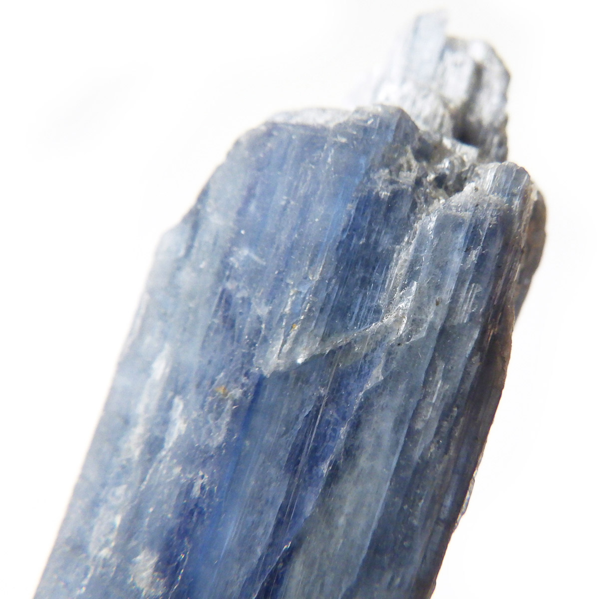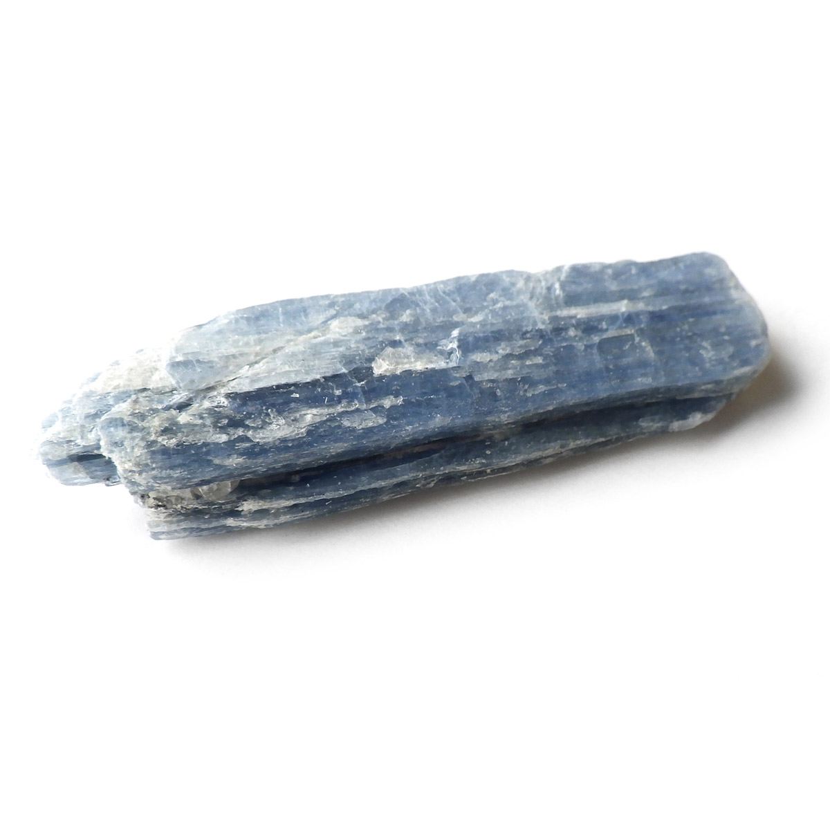 ブラジル産のカイヤナイト原石です。カイヤナイトはブルーと光沢がきれいな人気の鉱物です。柱状に伸びる結晶がうっとりする美しさを持っています。角度を変えると光を反射し、キラキラとした輝きが、これまた美しいです。