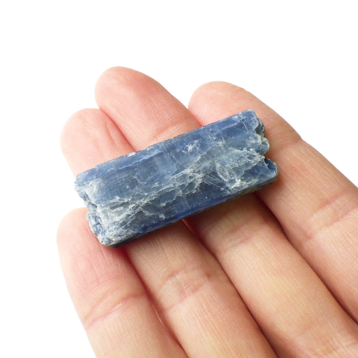 ブラジル産のカイヤナイト原石です。カイヤナイトはブルーと光沢がきれいな人気の鉱物です。柱状に伸びる結晶がうっとりする美しさを持っています。角度を変えると光を反射し、キラキラとした輝きが、これまた美しいです。
