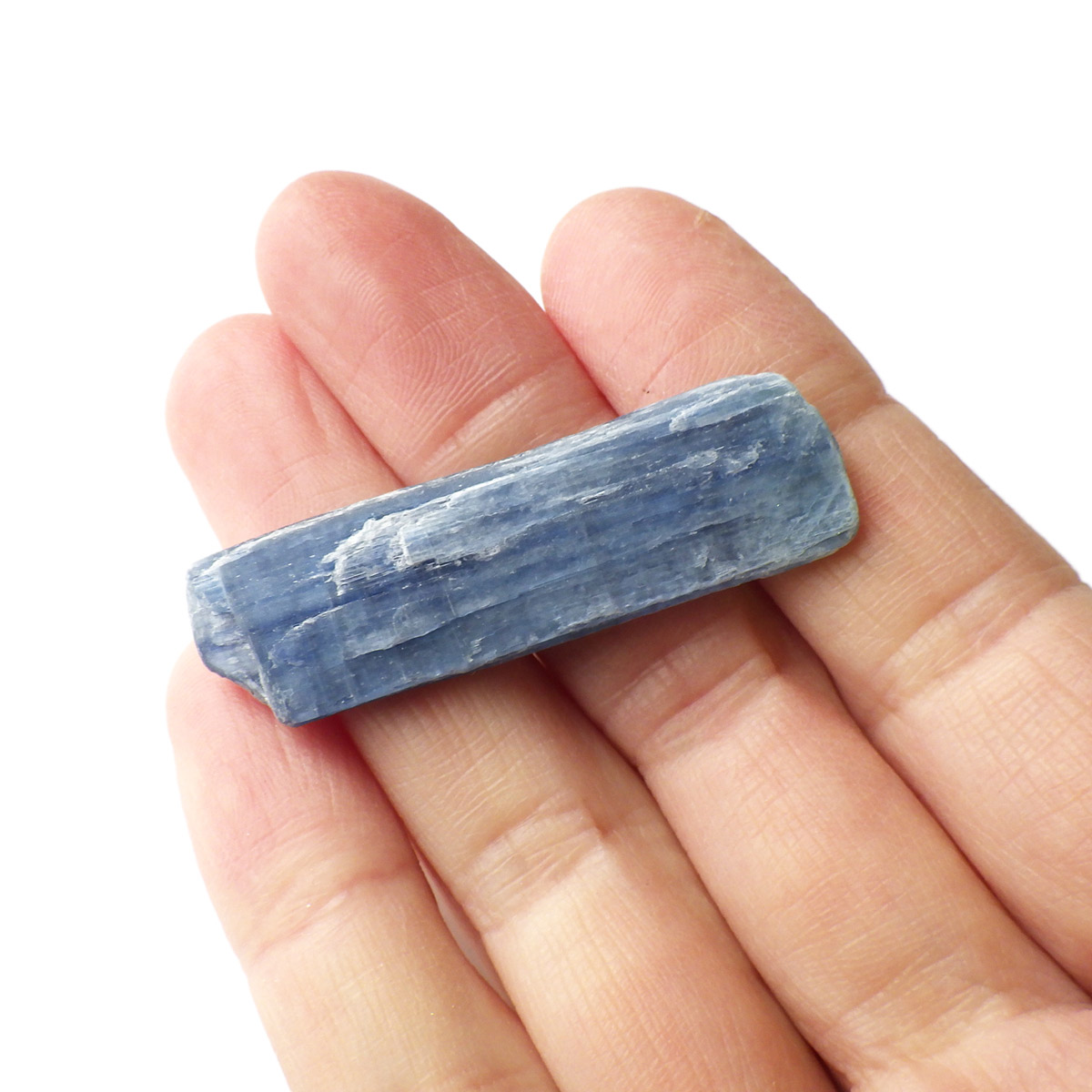 ブラジル産のカイヤナイト原石です。カイヤナイトはブルーと光沢がきれいな人気の鉱物です。柱状に伸びる結晶がうっとりする美しさを持っています。角度を変えると光を反射し、キラキラとした輝きが、これまた美しいです。