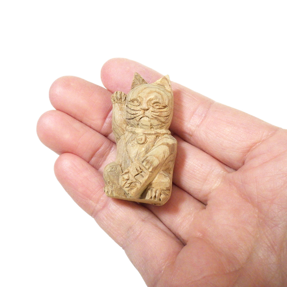 縁起が良く、かわいい屋久杉の手彫り招き猫です。