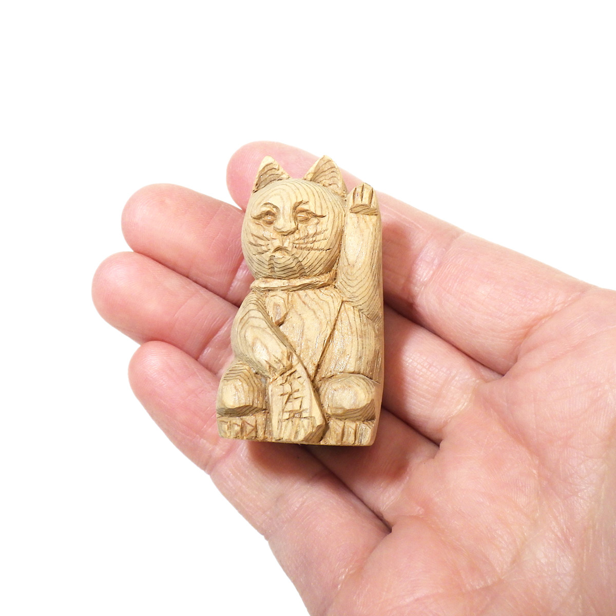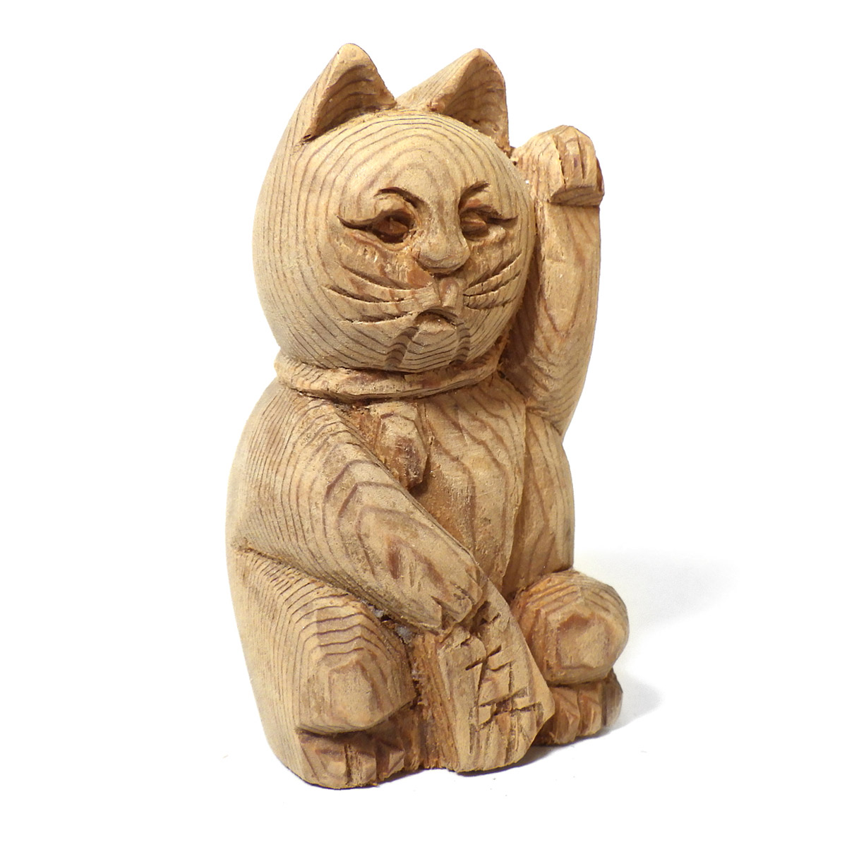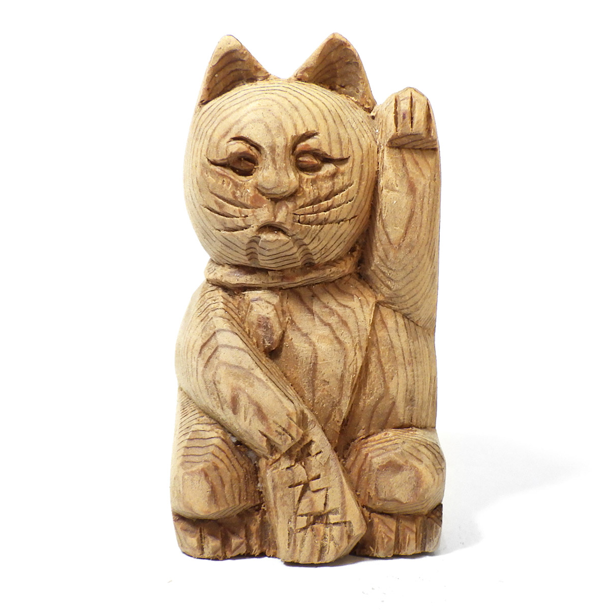 縁起が良く、かわいい屋久杉の手彫り招き猫です。