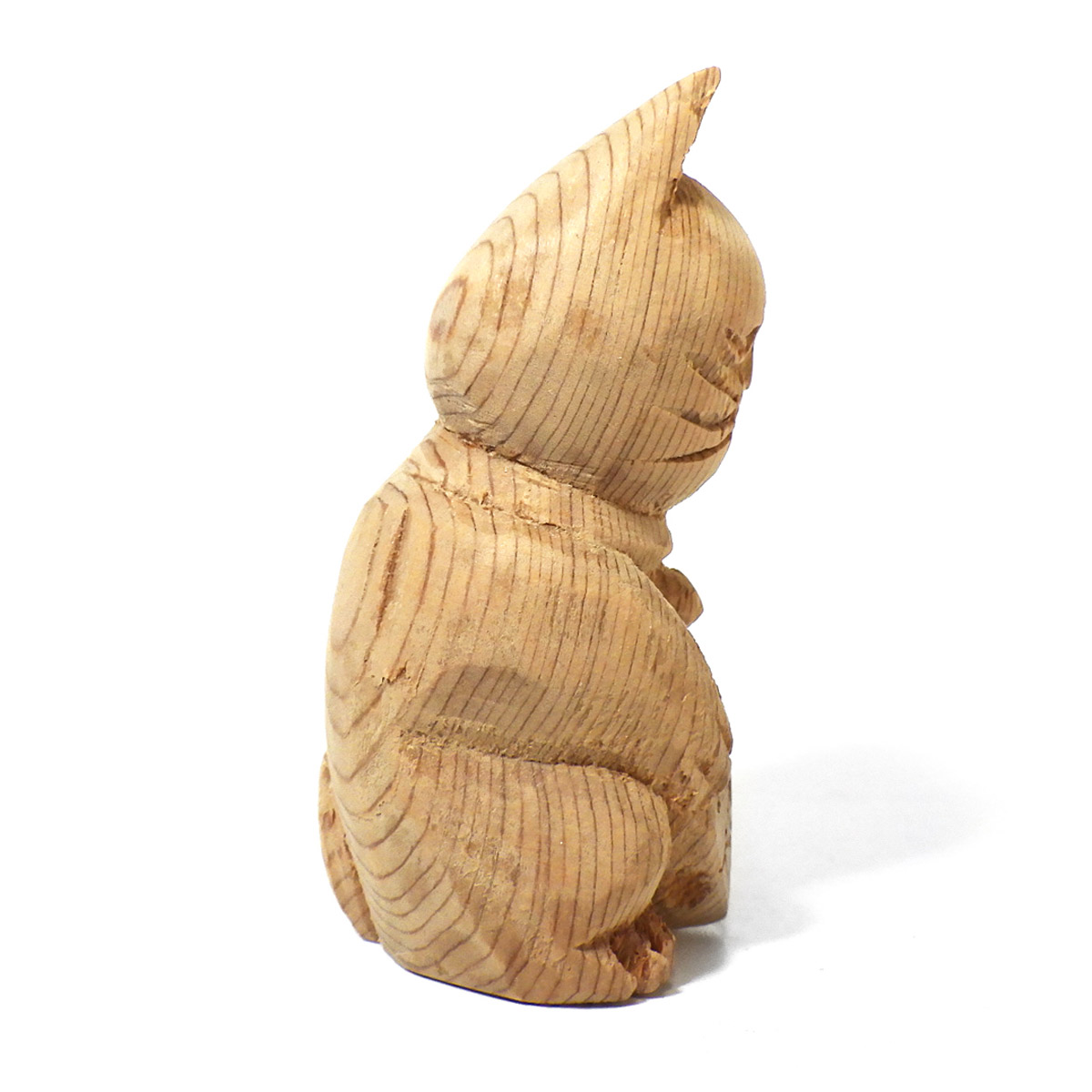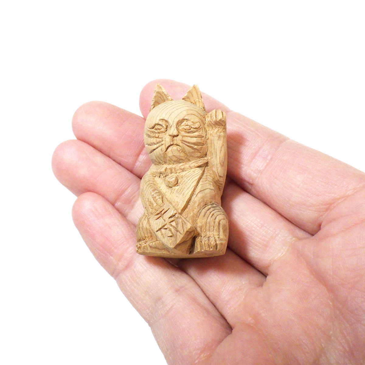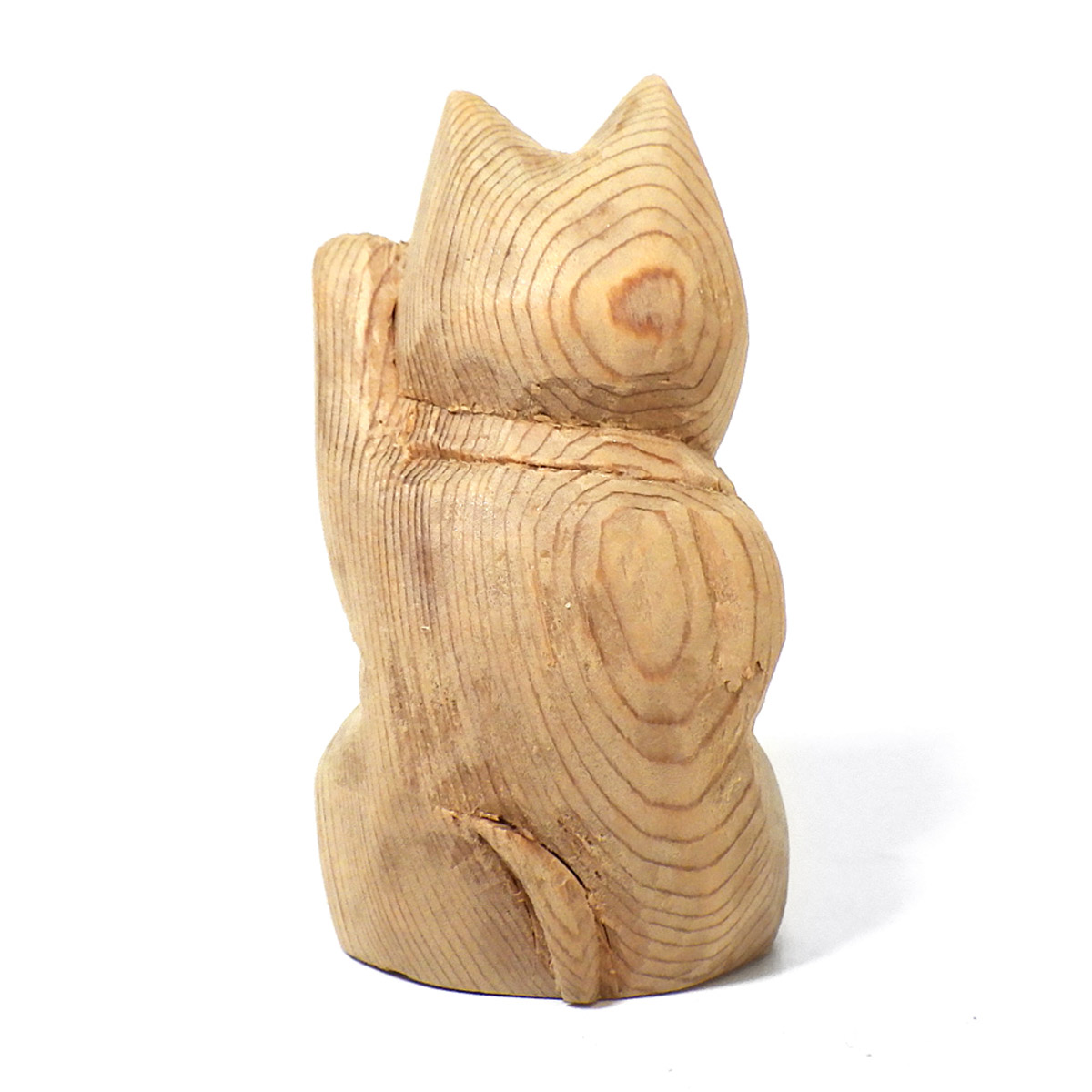 縁起が良く、かわいい屋久杉の手彫り招き猫です。