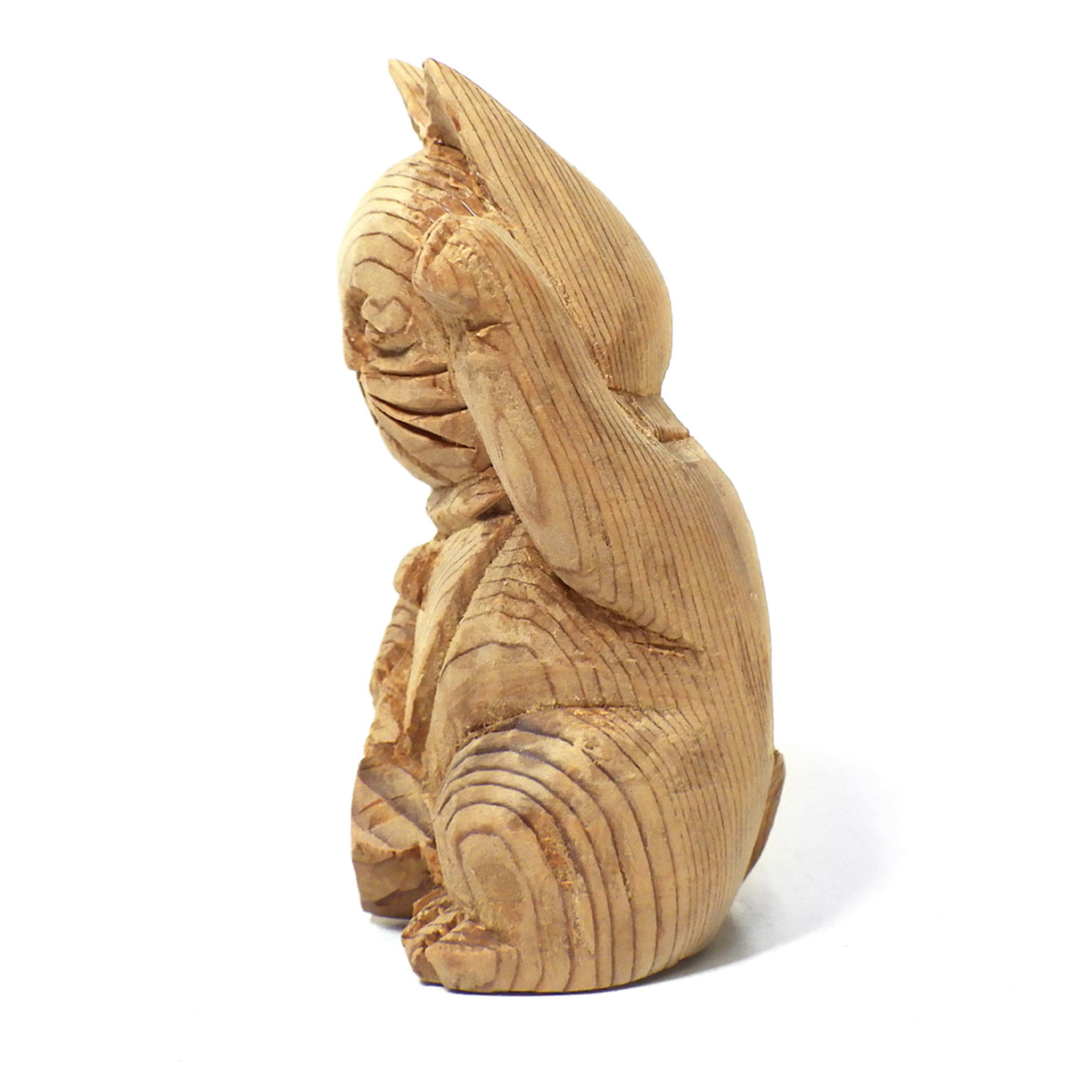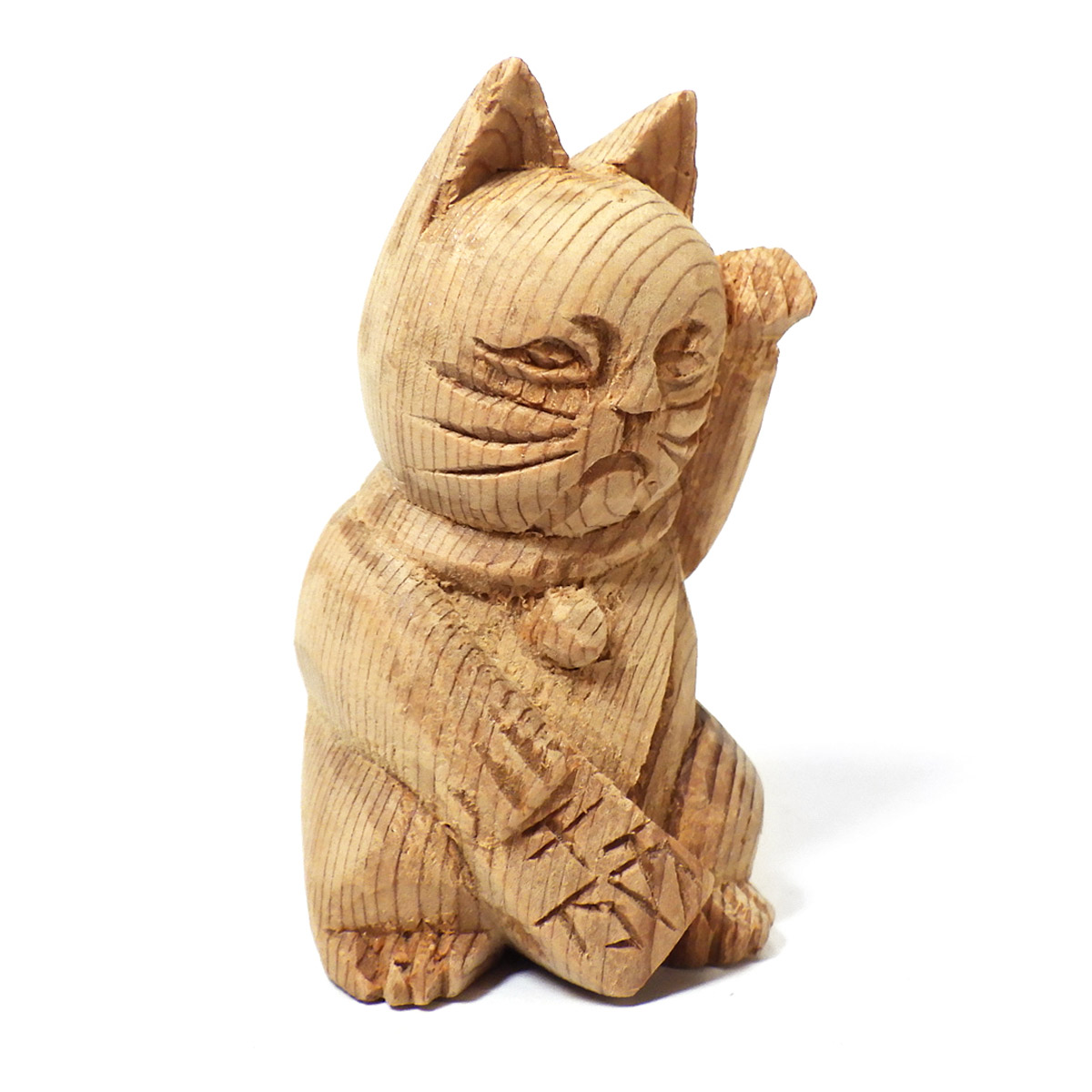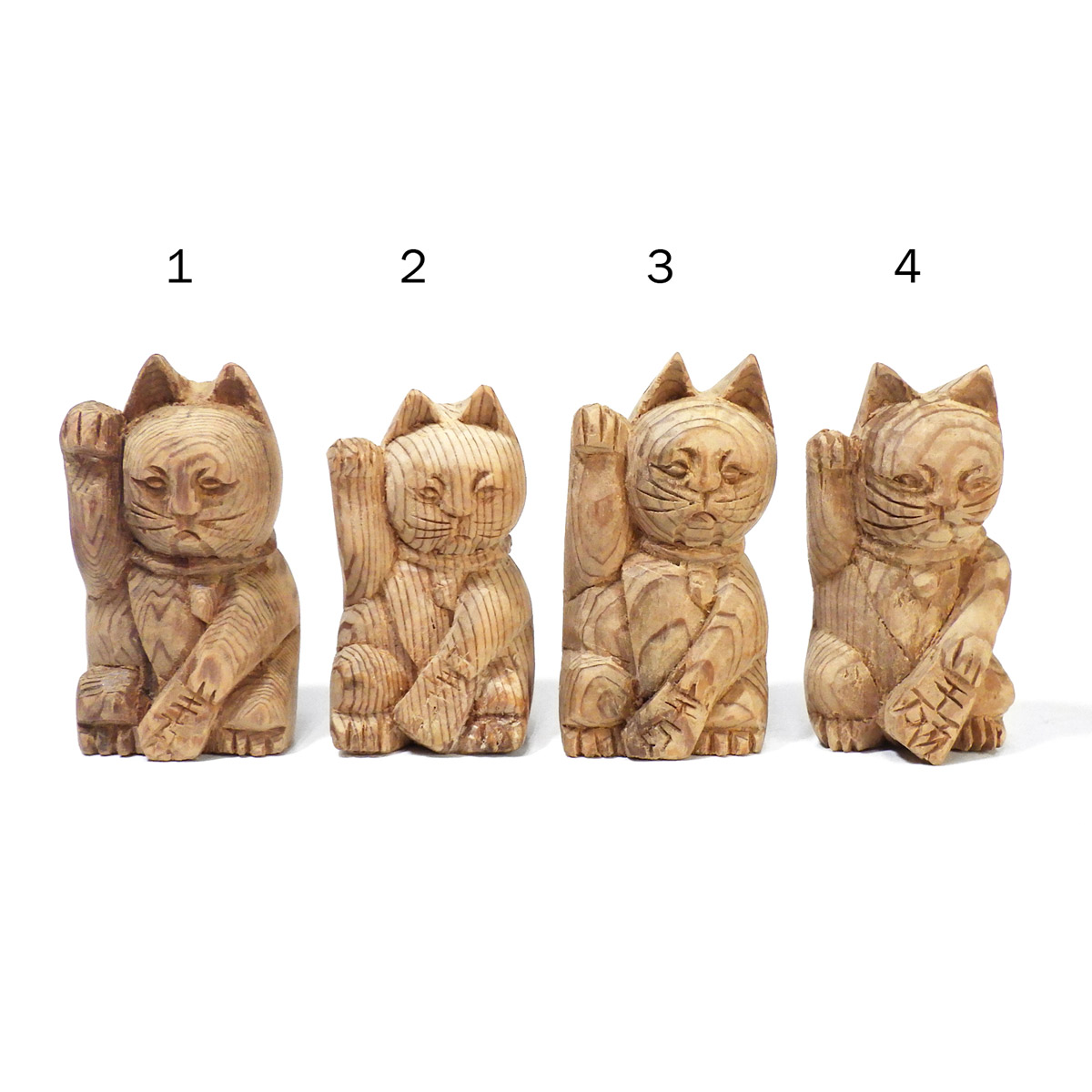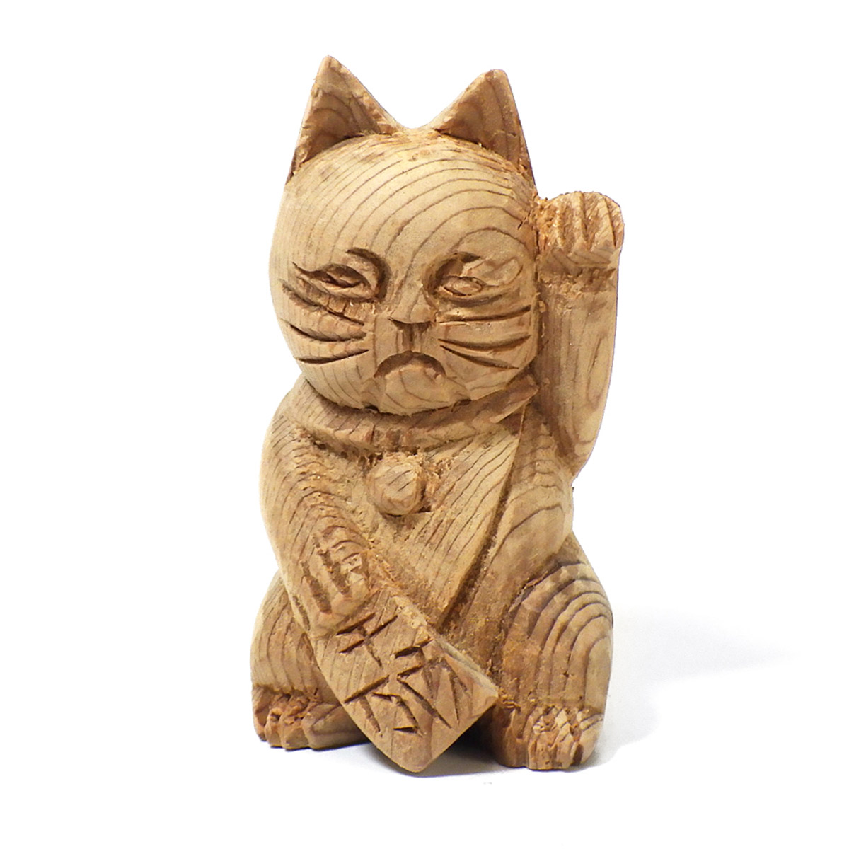 縁起が良く、かわいい屋久杉の手彫り招き猫です。