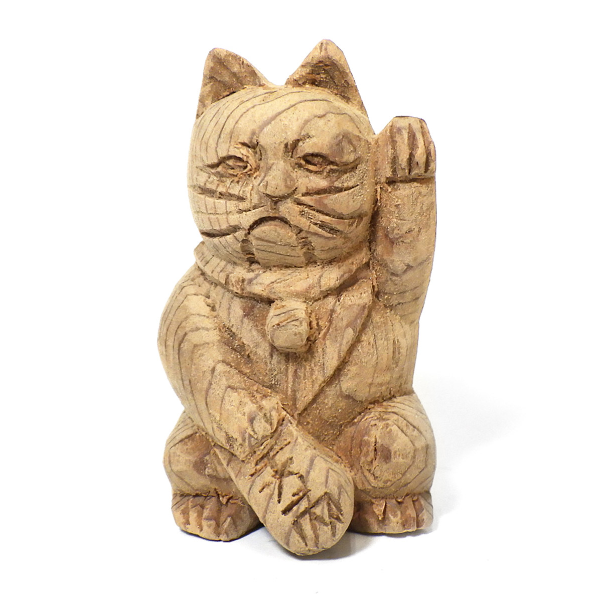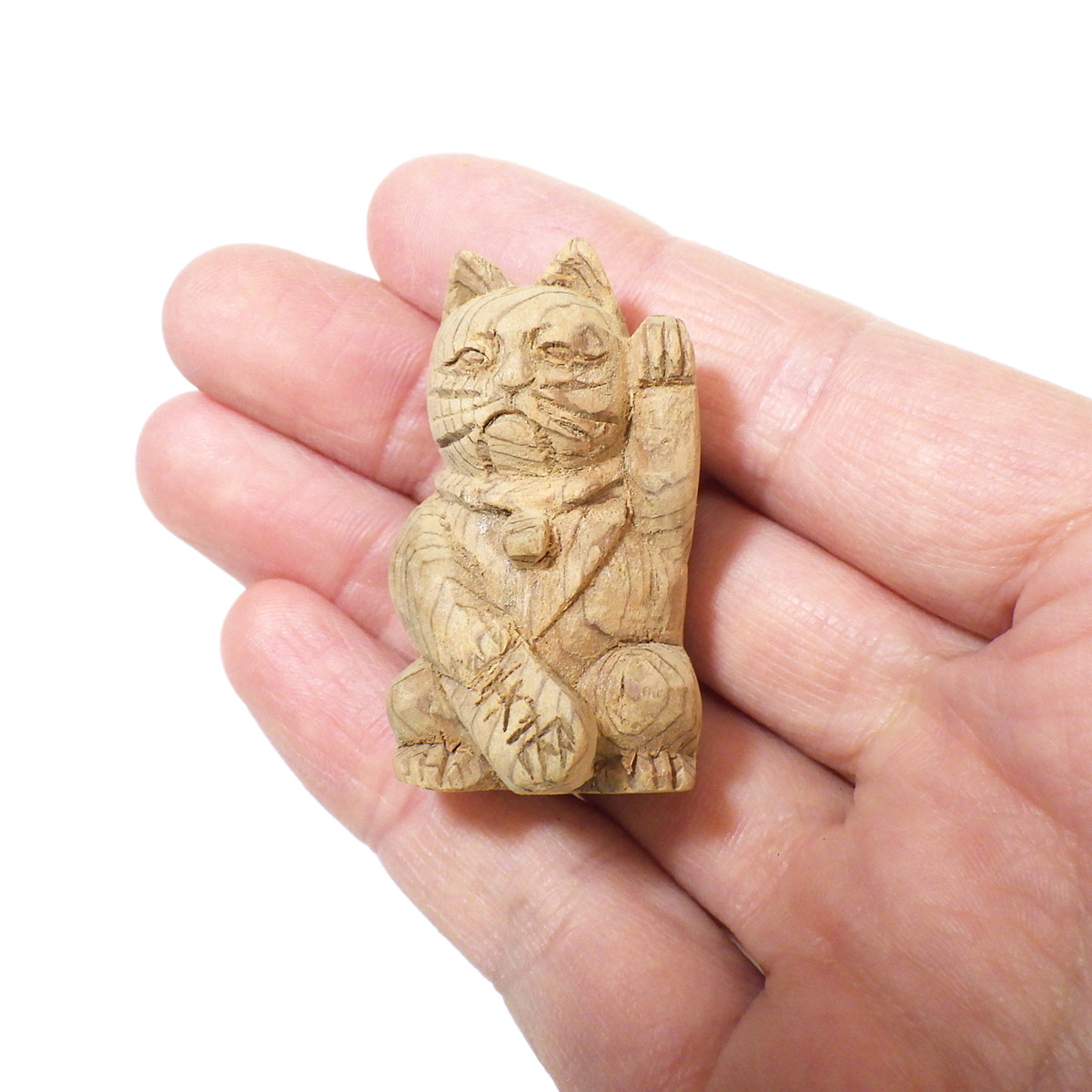 縁起が良く、かわいい屋久杉の手彫り招き猫です。