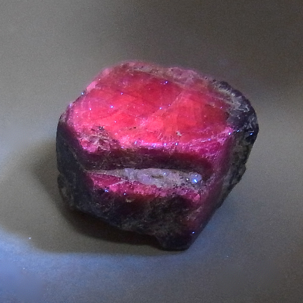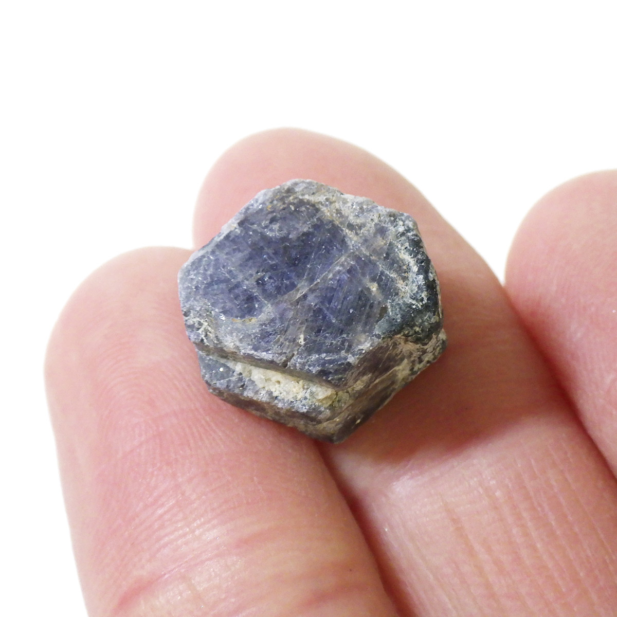 マダガスカル産サファイア、原石です。 サファイアといえば、深く美しいブルーが宝飾品として世界中で古くから愛されている石です。サファイアの中でも赤いものだけルビーと呼ばれます。こちらはサファイアですがルビーのような蛍光性がある珍しいものです(写真の波長は365nm)。質の良いサファイアは通常宝石に加工されますが、透明感のないものはタンブルやビーズ、あるいは光学ガラスや金属の研磨剤などに加工されます。ダイヤモンドに次ぐ硬さの鉱物であるサファイアの原石、コレクションにいかがでしょうか。