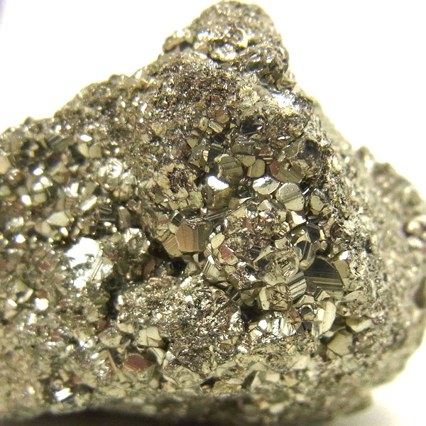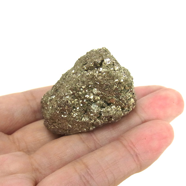 ペルー産のパイライト原石です。コロッとかわいらしいサイズでキラキラが信じられないほどまぶしい原石。パイライトは、火山活動の活発な場所で生成されます。結晶は大変整った六面体や八面体です。金と間違えるほどのゴールドで、硫黄と鉄で構成された鉱物の一種です。