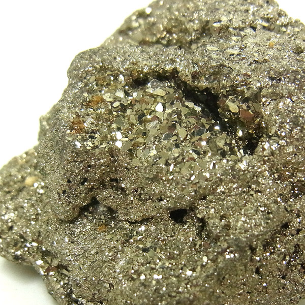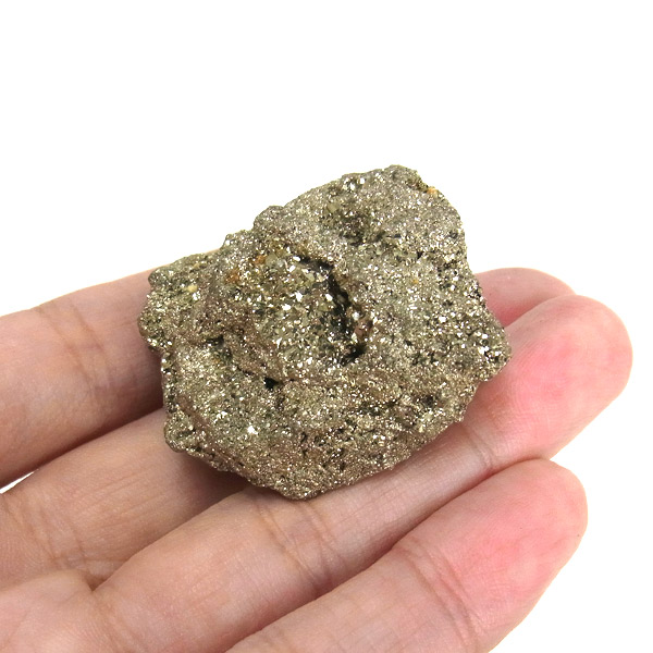 ペルー産のパイライト原石です。コロッとかわいらしいサイズでキラキラが信じられないほどまぶしい原石。パイライトは、火山活動の活発な場所で生成されます。結晶は大変整った六面体や八面体です。金と間違えるほどのゴールドで、硫黄と鉄で構成された鉱物の一種です。