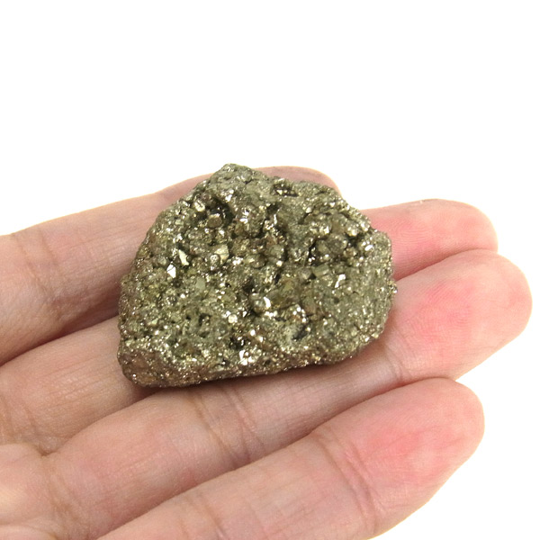 ペルー産のパイライト原石です。コロッとかわいらしいサイズでキラキラが信じられないほどまぶしい原石。パイライトは、火山活動の活発な場所で生成されます。結晶は大変整った六面体や八面体です。金と間違えるほどのゴールドで、硫黄と鉄で構成された鉱物の一種です。
