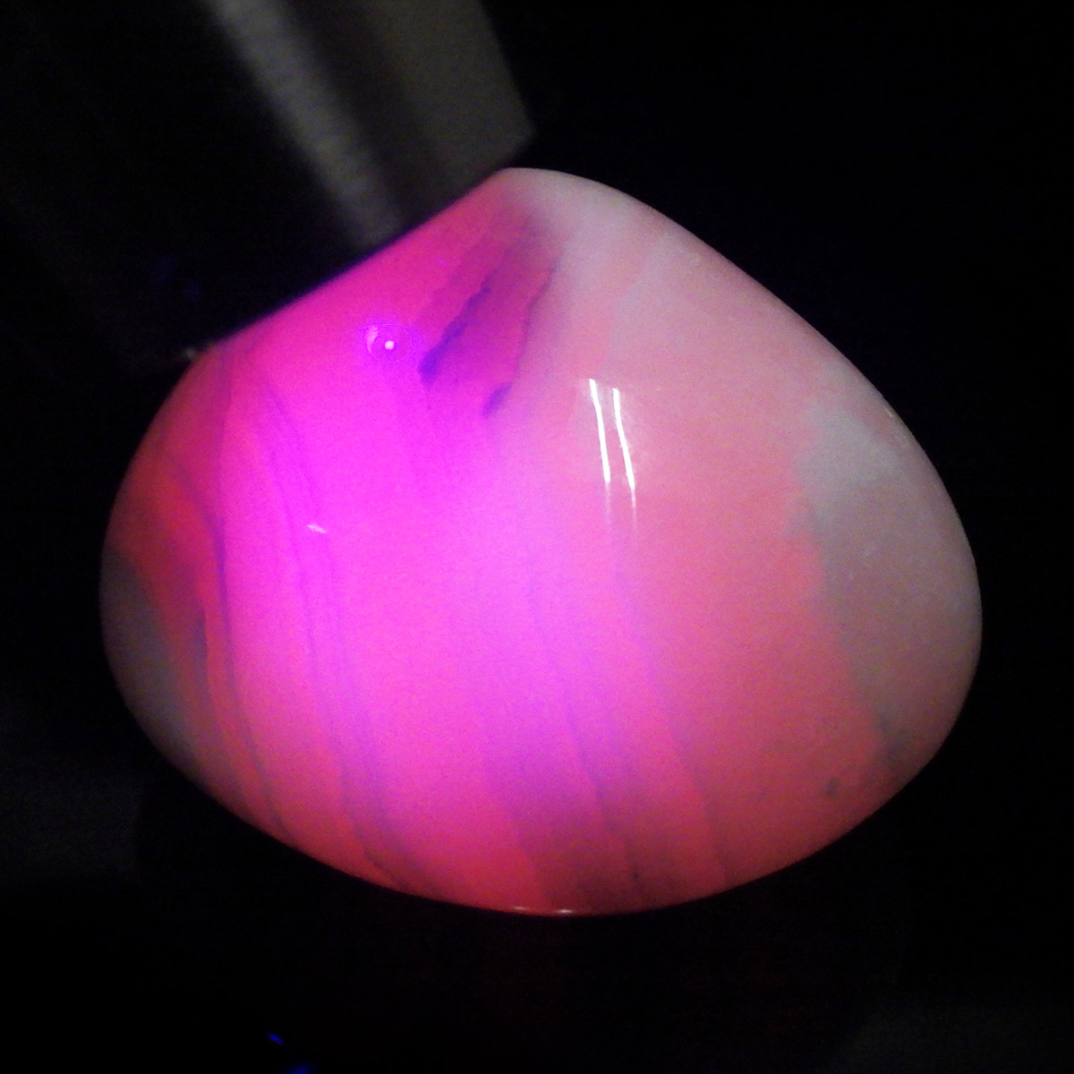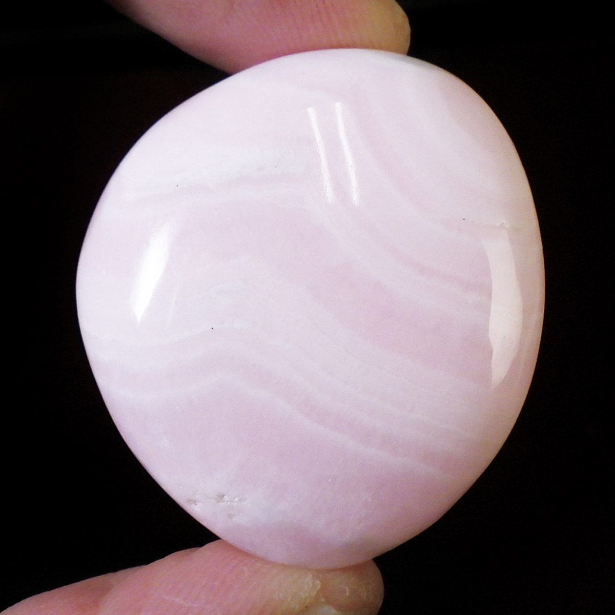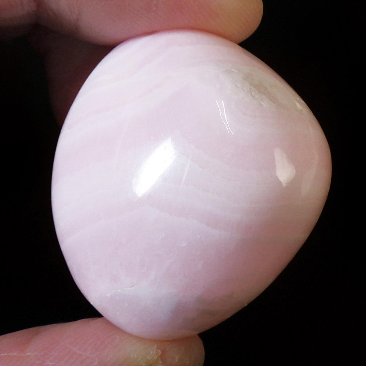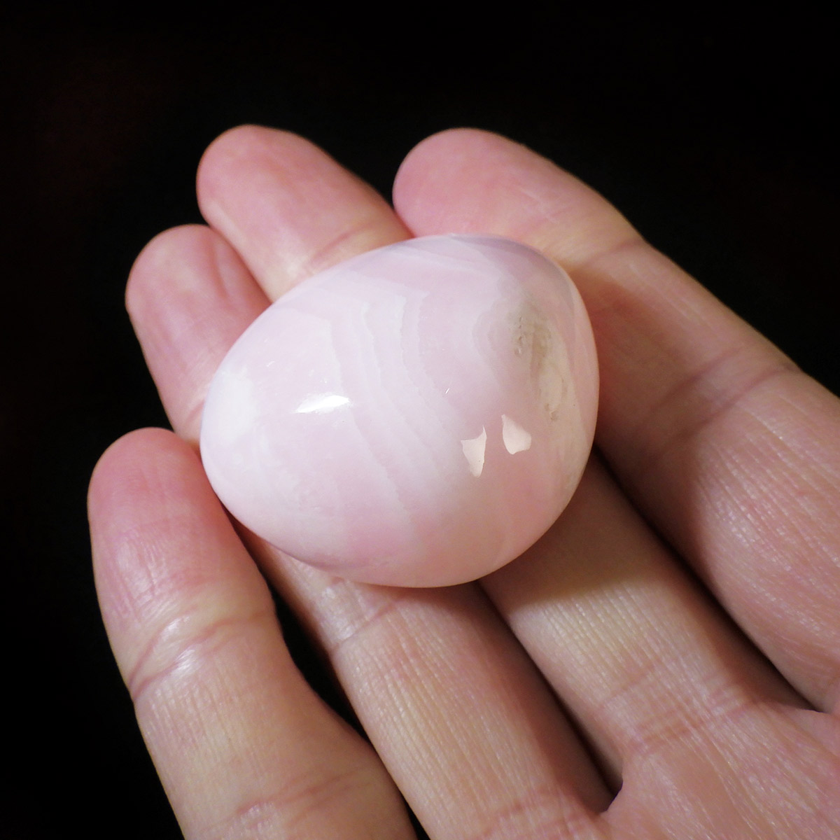 ペルー産のピンクカルサイト、タンブルです。とてもきれいでかわいらしいピンクで質も良いです。ピンクカルサイトはカルサイトの仲間です。マンガンが入っているので、淡く美しく、優しいピンク色になります。マンガンが含まれることにより、ブラックライトを当てると幻想的なピンク色に蛍光します。
