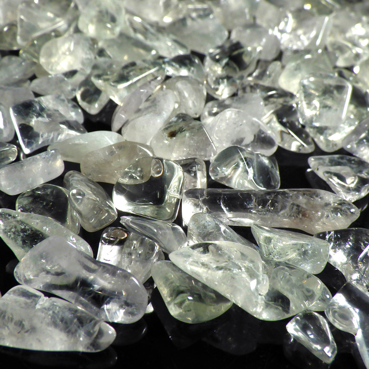 プラシオライトはアメジストを加熱処理することでグリーンに変化するので、グリーンアメジストとも呼ばれております。通常アメジストは加熱処理を加えると黄色に変化するのですが、ごく稀にグリーンに変化するものをプラシオライト(グリーンアメジスト)と呼んでいます。ほのかなグリーンが優しく涼しげな印象のさざれです。