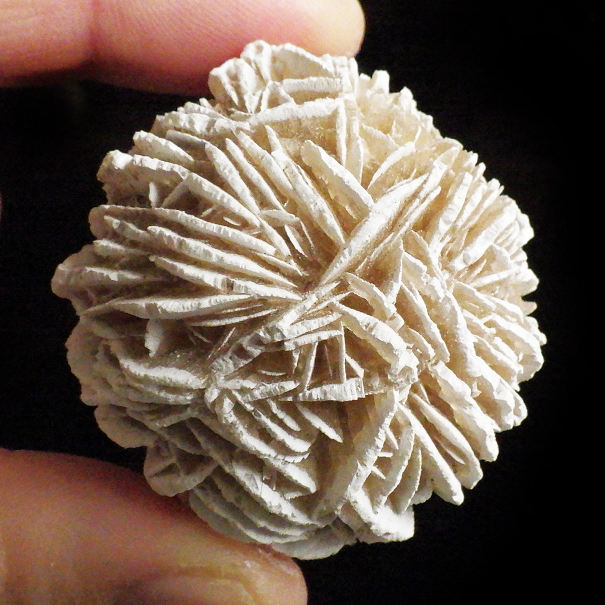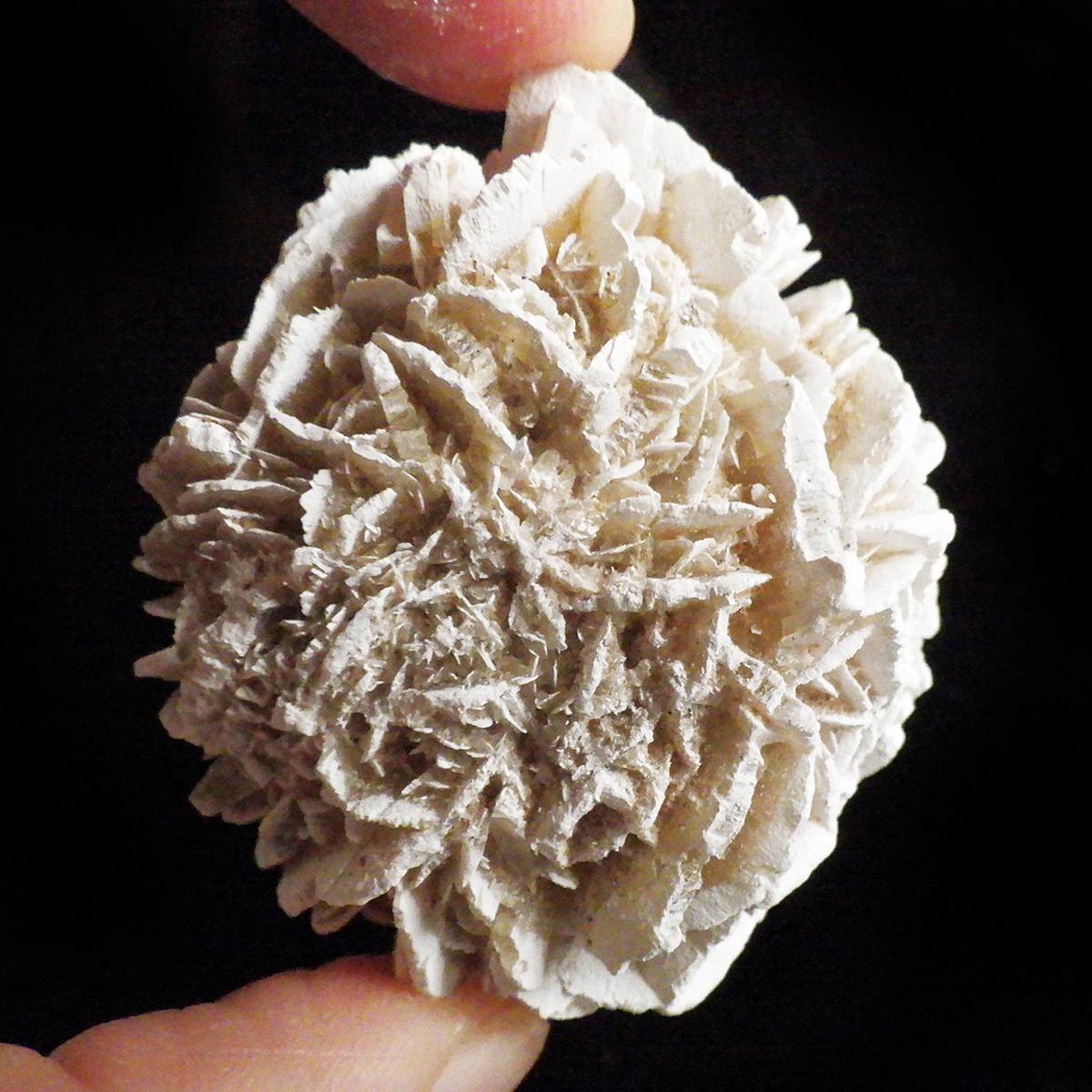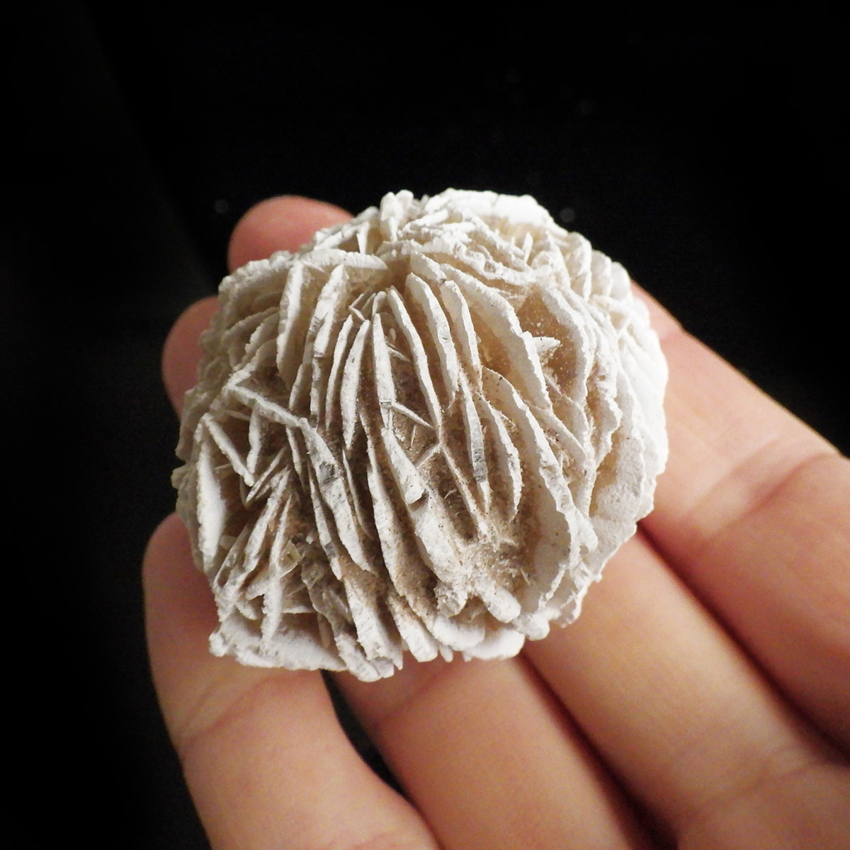 メキシコ産、デザートローズの原石です。手のひらに収まる大きさで形がかわいい結晶を厳選して集めました。デザートローズはジプサムを主成分とした砂漠で見つかる薔薇の花の形の結晶のことです。全体のフォルムとして見た目が丸っこく、細かいところまで織り成す結晶の美しさと神秘さが素敵です。