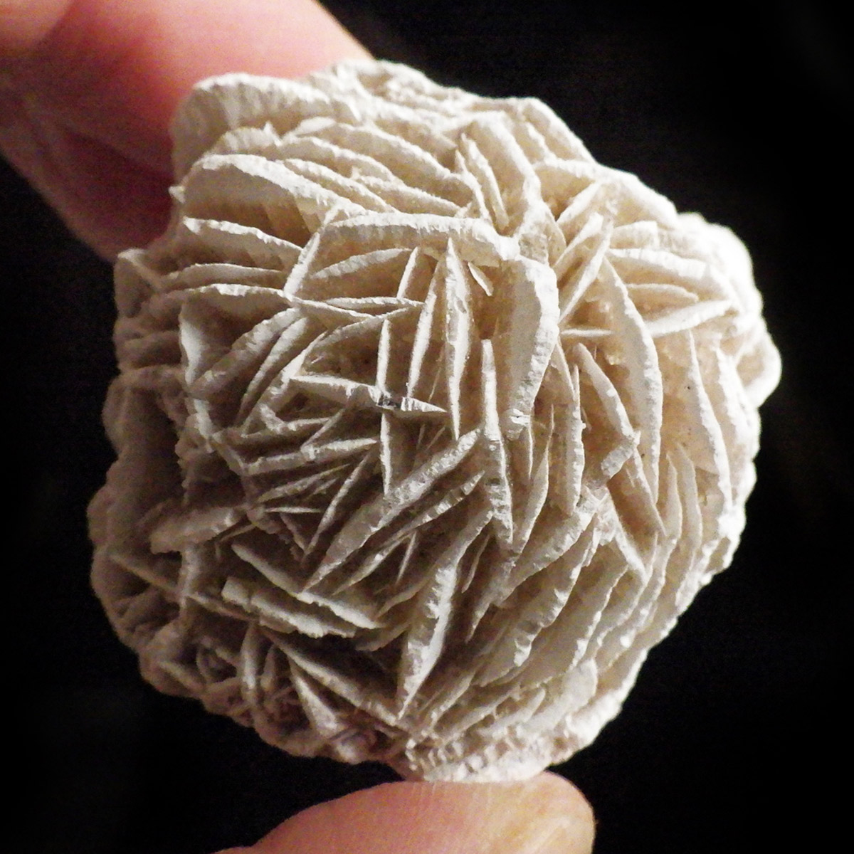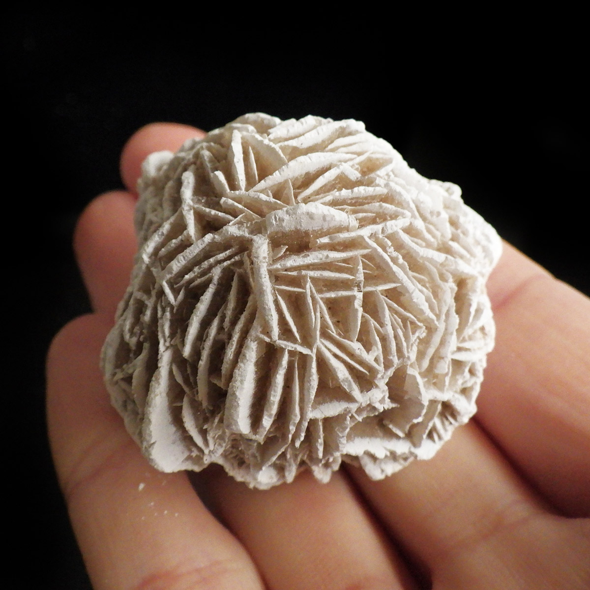 メキシコ産、デザートローズの原石です。手のひらに収まる大きさで形がかわいい結晶を厳選して集めました。デザートローズはジプサムを主成分とした砂漠で見つかる薔薇の花の形の結晶のことです。全体のフォルムとして見た目が丸っこく、細かいところまで織り成す結晶の美しさと神秘さが素敵です。