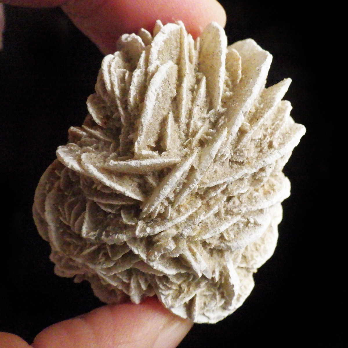 メキシコ産、デザートローズの原石です。手のひらに収まる大きさで形がかわいい結晶を厳選して集めました。デザートローズはジプサムを主成分とした砂漠で見つかる薔薇の花の形の結晶のことです。全体のフォルムとして見た目が丸っこく、細かいところまで織り成す結晶の美しさと神秘さが素敵です。