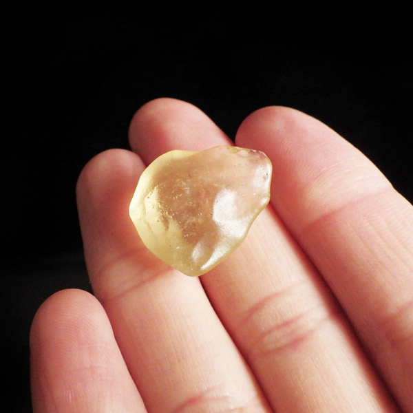 エジプト産、リビアングラスのタンブルです。リビアングラスはエジプト西部のリビア砂漠で採れる天然ガラスです。どのように生成されたかはっきりした事は解明されていませんが、モルダバイトのように宇宙を起源とし、隕石の衝突などで起こった巨大な熱反応によって地表の岩盤の一部を溶かして、偶然出来上がったものだという見方が一般的です。奇跡的に生まれた鉱物であるリビアングラスは、エジプトの限られた場所でしか採れないため大変希少です。