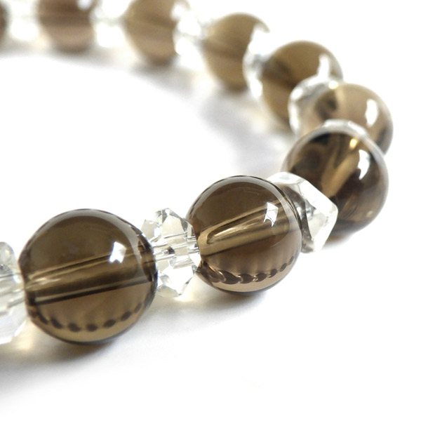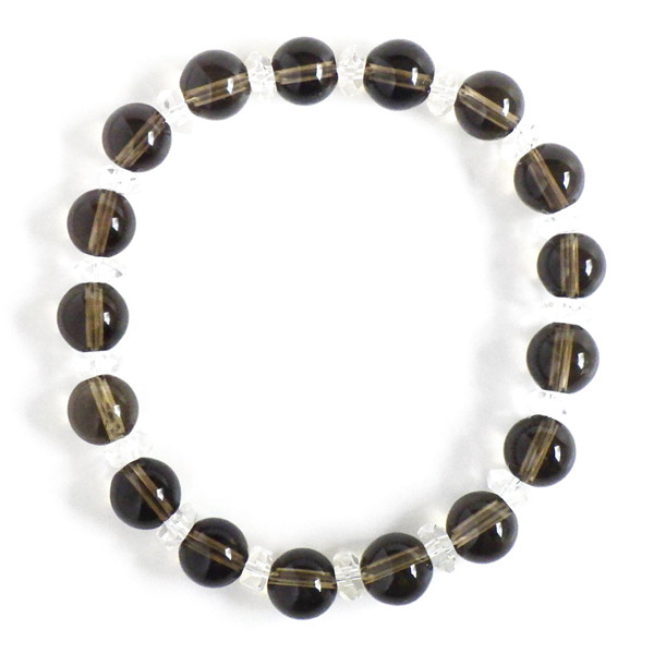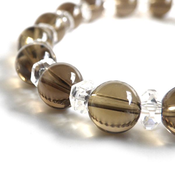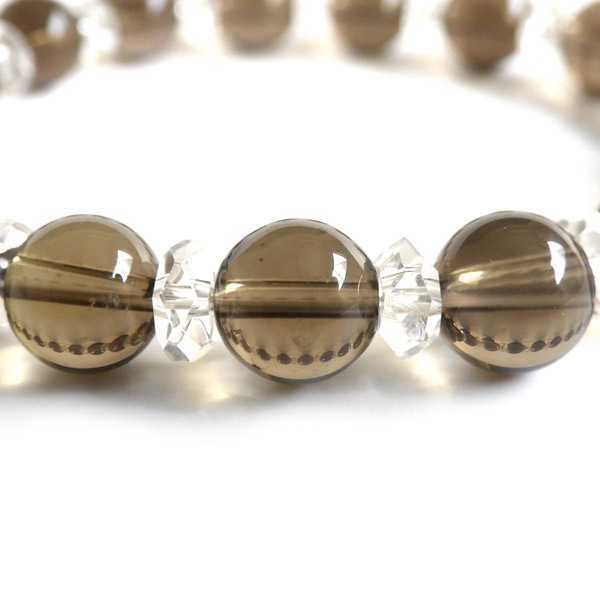 スモーキークォーツと水晶のブレスレット 8mm玉 内周16.5cm