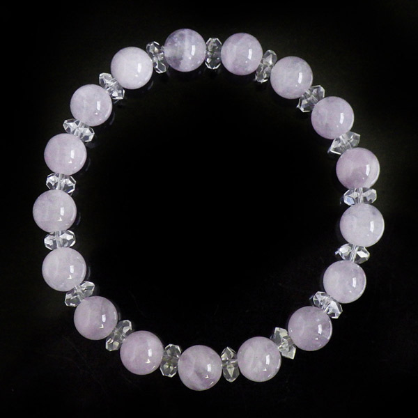 ラベンダーアメジストと水晶のブレスレット 8mm玉 内周16cm