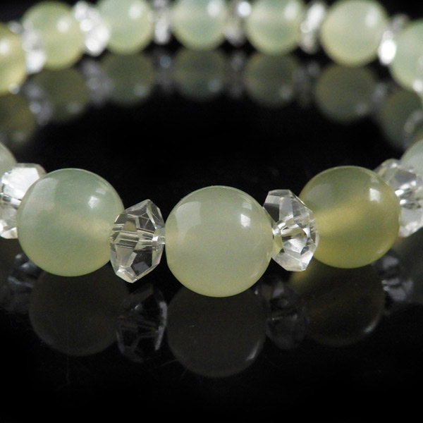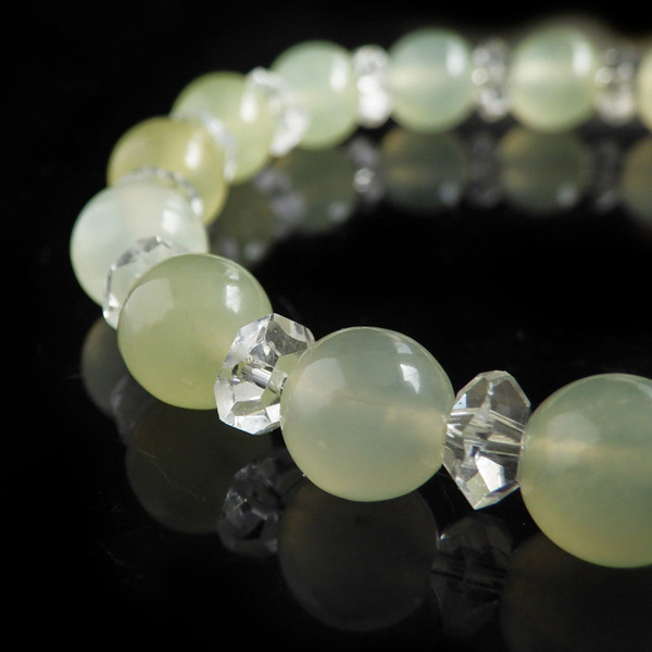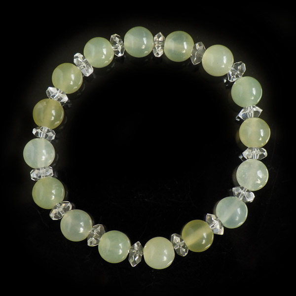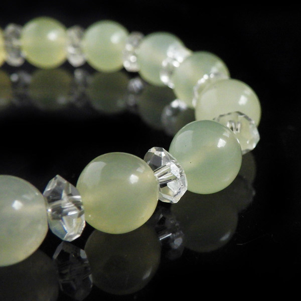 ニュージェイドと水晶のブレスレット 8mm玉 内周15cm