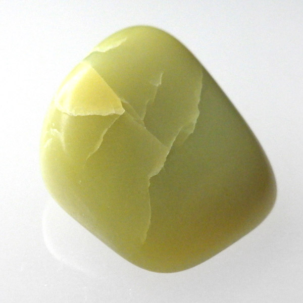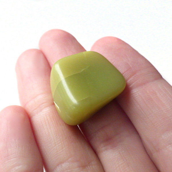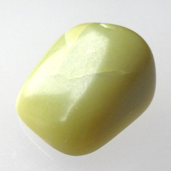 アメリカ・ワシントン州産のワシントンサーペンティン(ヒーラーライト)、タンブルです。 ワシントンサーペンティン(ヒーラーライト)は、明るいライムグリーン色をしており、やわらかな感触があります。 パッと見た感じは黄色の印象が強いと思いますが、良く見てみると黄色ではなくもっと複雑で独特の色合いをしていることが分かります。 アメリカの北西部で新しく発見されたケイ酸マグネシウムで、マグネサイト鉱脈から、マグネサイトと一緒に発掘されます。