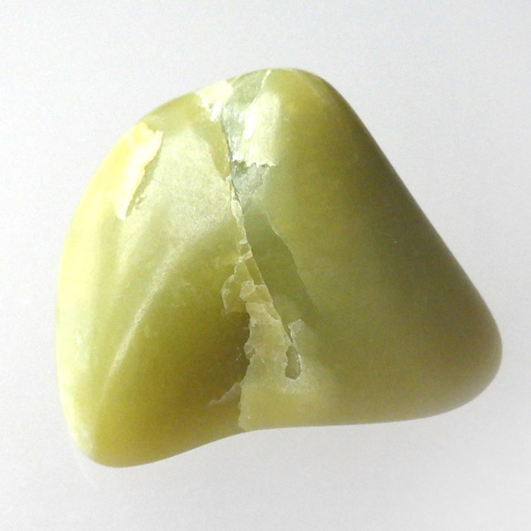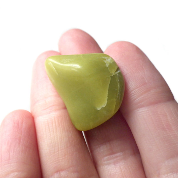 アメリカ・ワシントン州産のワシントンサーペンティン(ヒーラーライト)、タンブルです。 ワシントンサーペンティン(ヒーラーライト)は、明るいライムグリーン色をしており、やわらかな感触があります。 パッと見た感じは黄色の印象が強いと思いますが、良く見てみると黄色ではなくもっと複雑で独特の色合いをしていることが分かります。 アメリカの北西部で新しく発見されたケイ酸マグネシウムで、マグネサイト鉱脈から、マグネサイトと一緒に発掘されます。