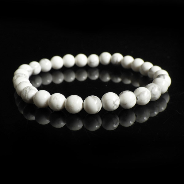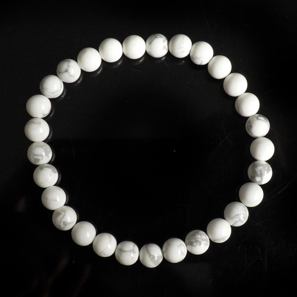 マグネサイト(ホワイトハウライト) ブレスレット 6mm玉 内周16cm