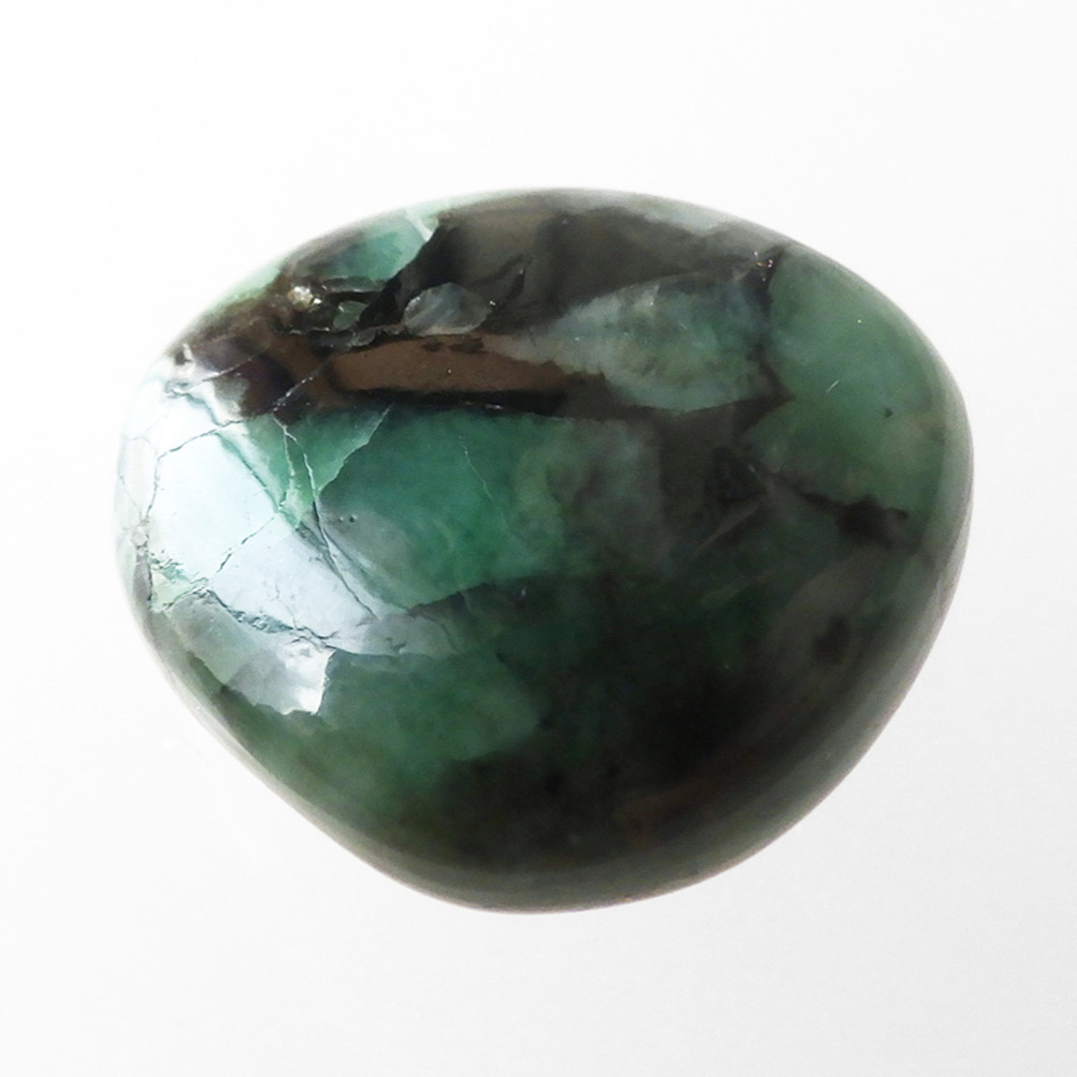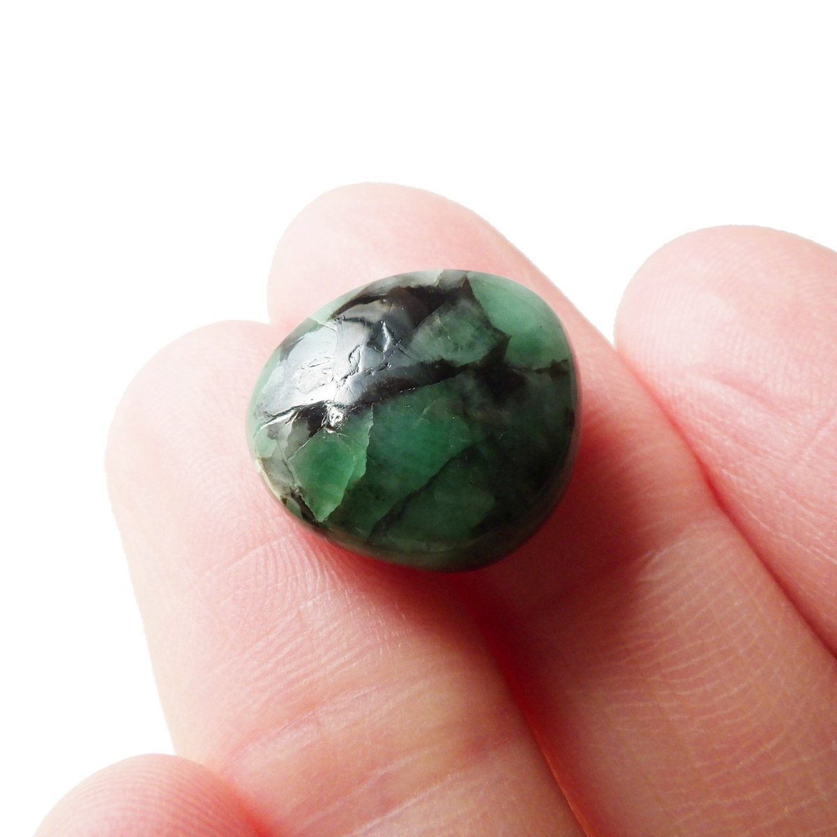 ブラジル産、AAA天然エメラルドのタンブルです。世界三大宝石のひとつとして名高いエメラルドですが、宝石としてはコロンビア産が有名です。 今回ご用意したエメラルドは、ブラジル産のものです。コロンビア産の明るく爽やかなライトグリーンと比較して、ブラジル産のエメラルドは主張の強いグリーンが特徴といえます。グリーンのエメラルドはベリル系鉱物の中でも産出量が極端に少ない鉱物といわれています。
