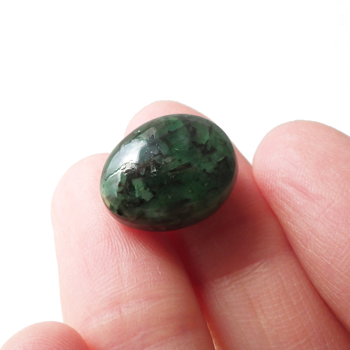 ブラジル産、AAA天然エメラルドのタンブルです。世界三大宝石のひとつとして名高いエメラルドですが、宝石としてはコロンビア産が有名です。 今回ご用意したエメラルドは、ブラジル産のものです。コロンビア産の明るく爽やかなライトグリーンと比較して、ブラジル産のエメラルドは主張の強いグリーンが特徴といえます。グリーンのエメラルドはベリル系鉱物の中でも産出量が極端に少ない鉱物といわれています。